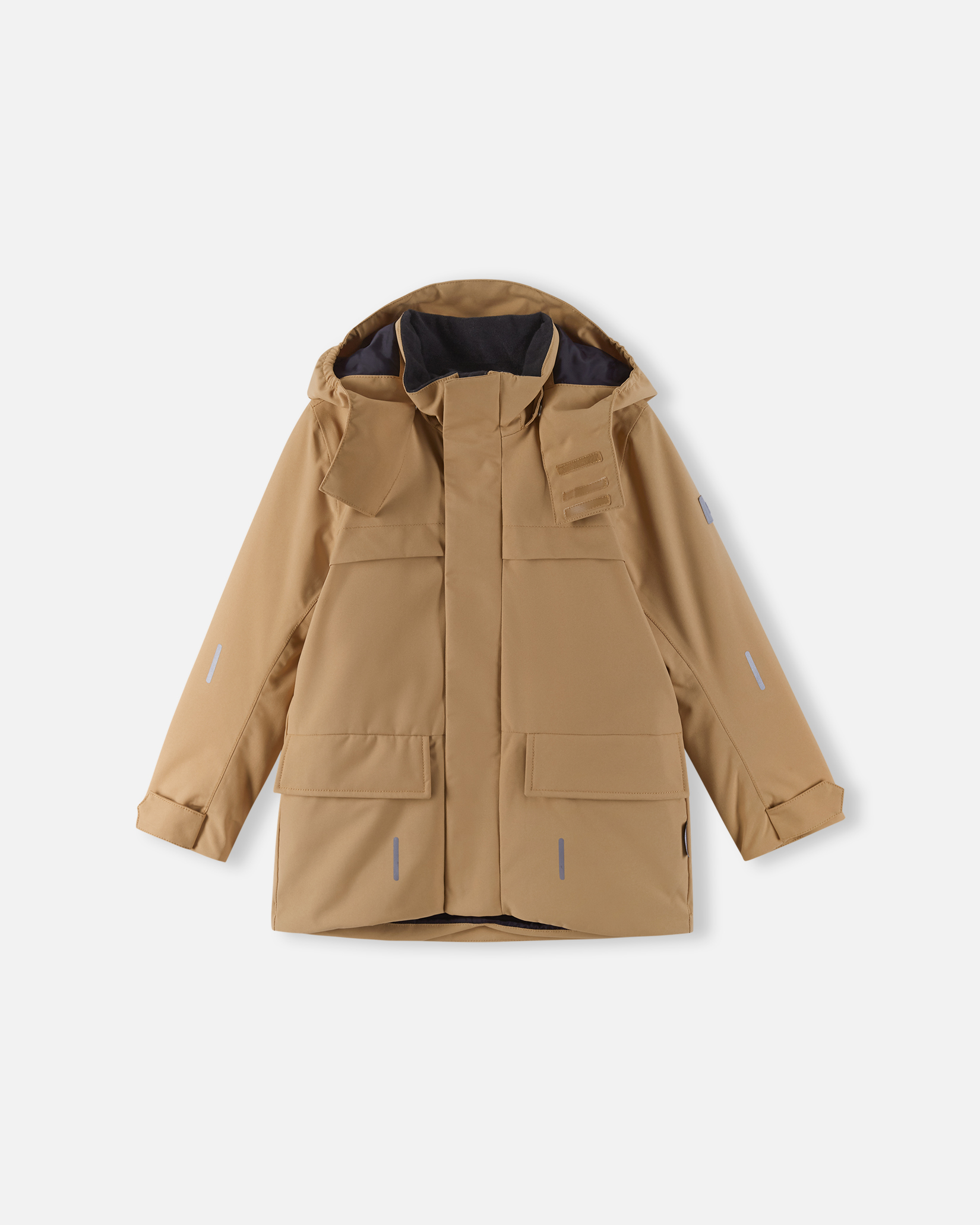 Ее водонепроницаемая, ветрозащитная конструкция с проклеенными швами сохраняет вашего малыша сухим, а прочный материал выдерживает самые активные игры — год за годом, от одного пользователя к другому. Теплый, 100% переработанный утеплитель обеспечивает уют, а воздухопроницаемость куртки добавляет комфорта. Внутренняя регулировка талии и регулируемые манжеты обеспечивают индивидуальную посадку, а два кармана с клапанами и съемный регулируемый капюшон добавляют удобства. Кроме того, чтобы вы могли обеспечить безопасность вашего ребенка, мы добавили петлю для подвешивания светоотражателя под правый боковой клапан кармана. Созданная для беззаботного отдыха на свежем воздухе, куртка Kaverus отталкивает воду и грязь, что упрощает уход за ней.<br />