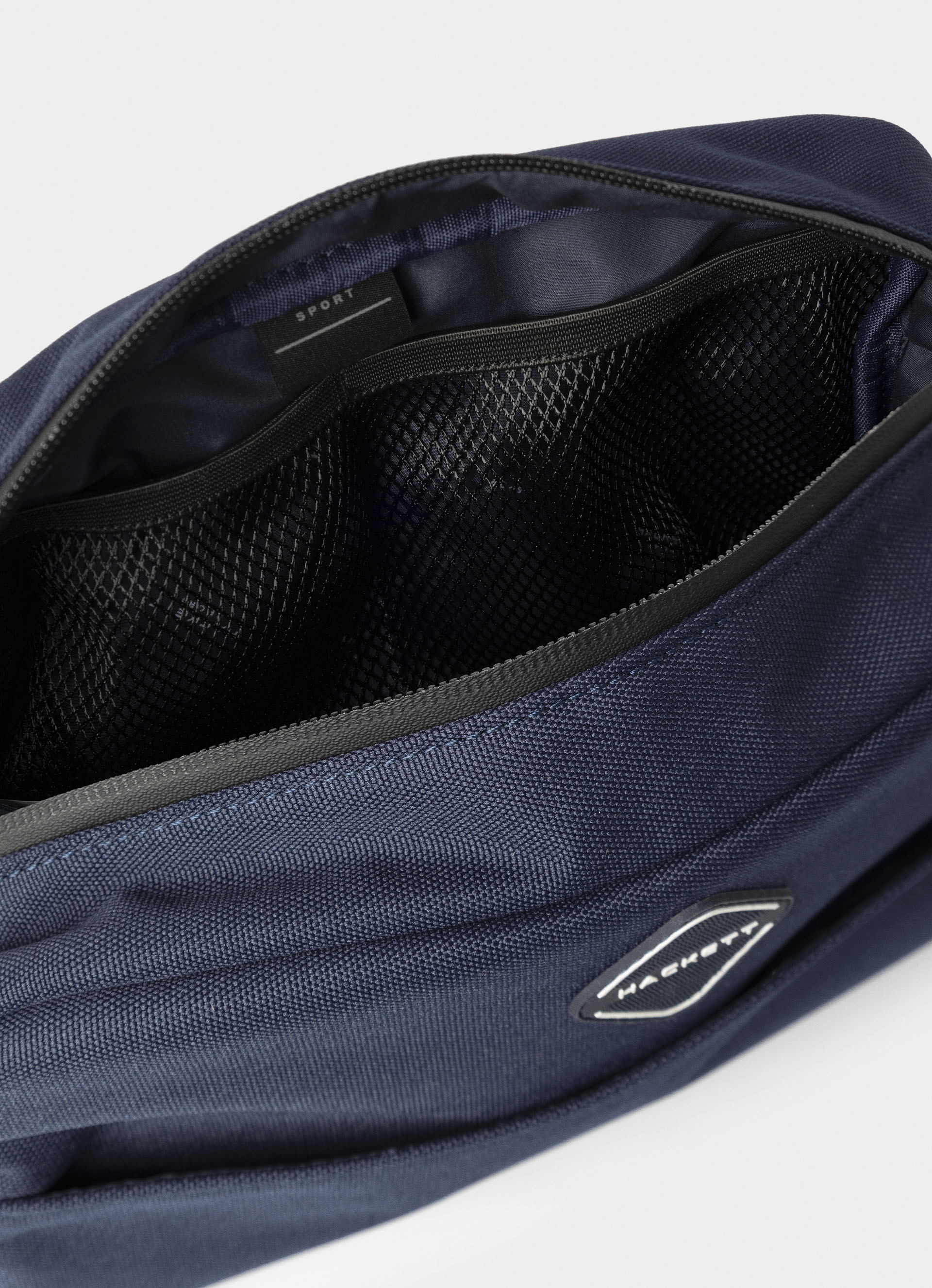 Мужская косметичка на молнии с удобной боковой петлей. Верх выполнен из прочного синтетического материала, а внутреннее отделение из лёгкой в уходе ткани. Практичный аксессуар для спортивной или дорожной сумки, который всегда держит необходимые вещи под рукой.