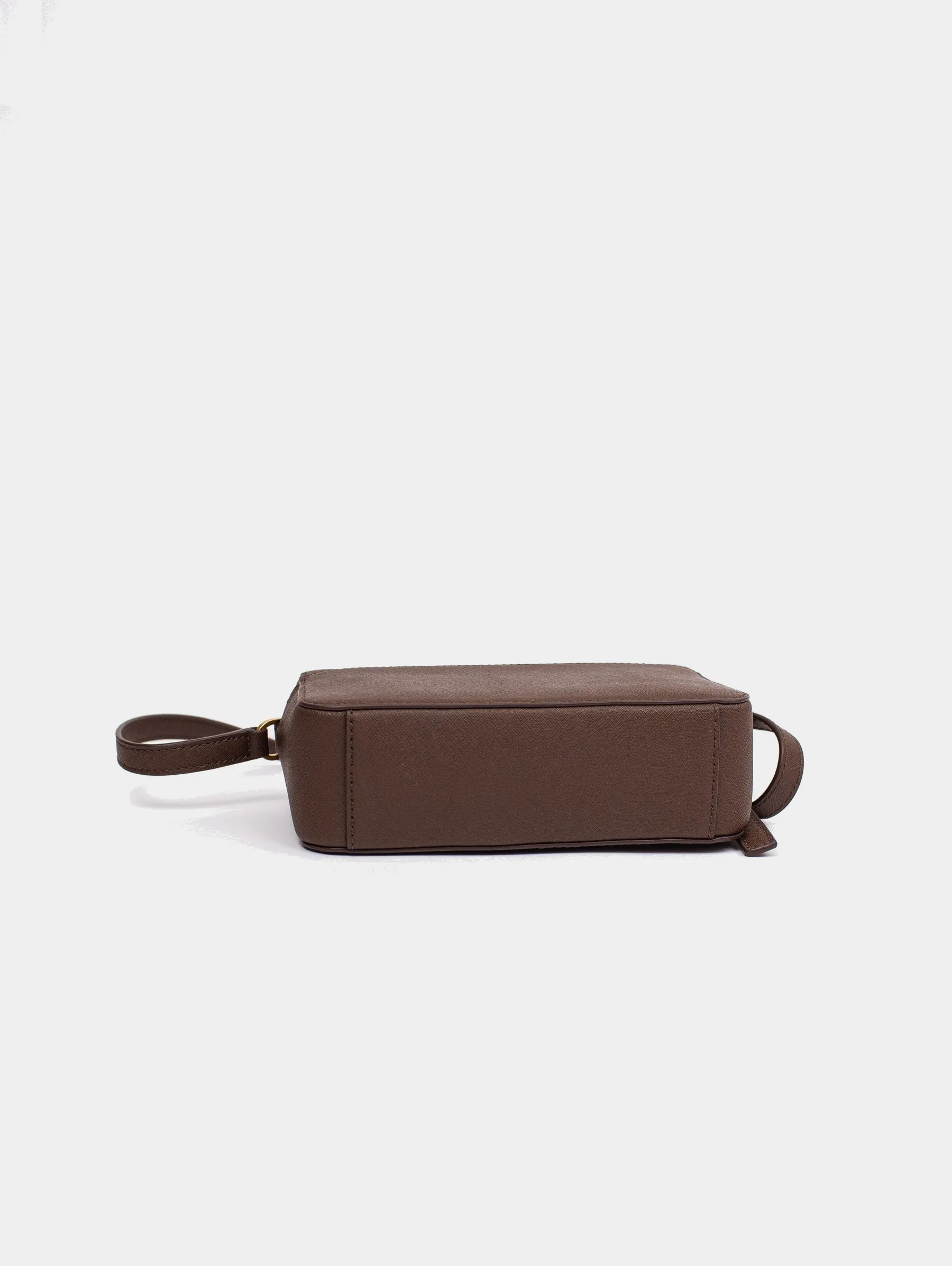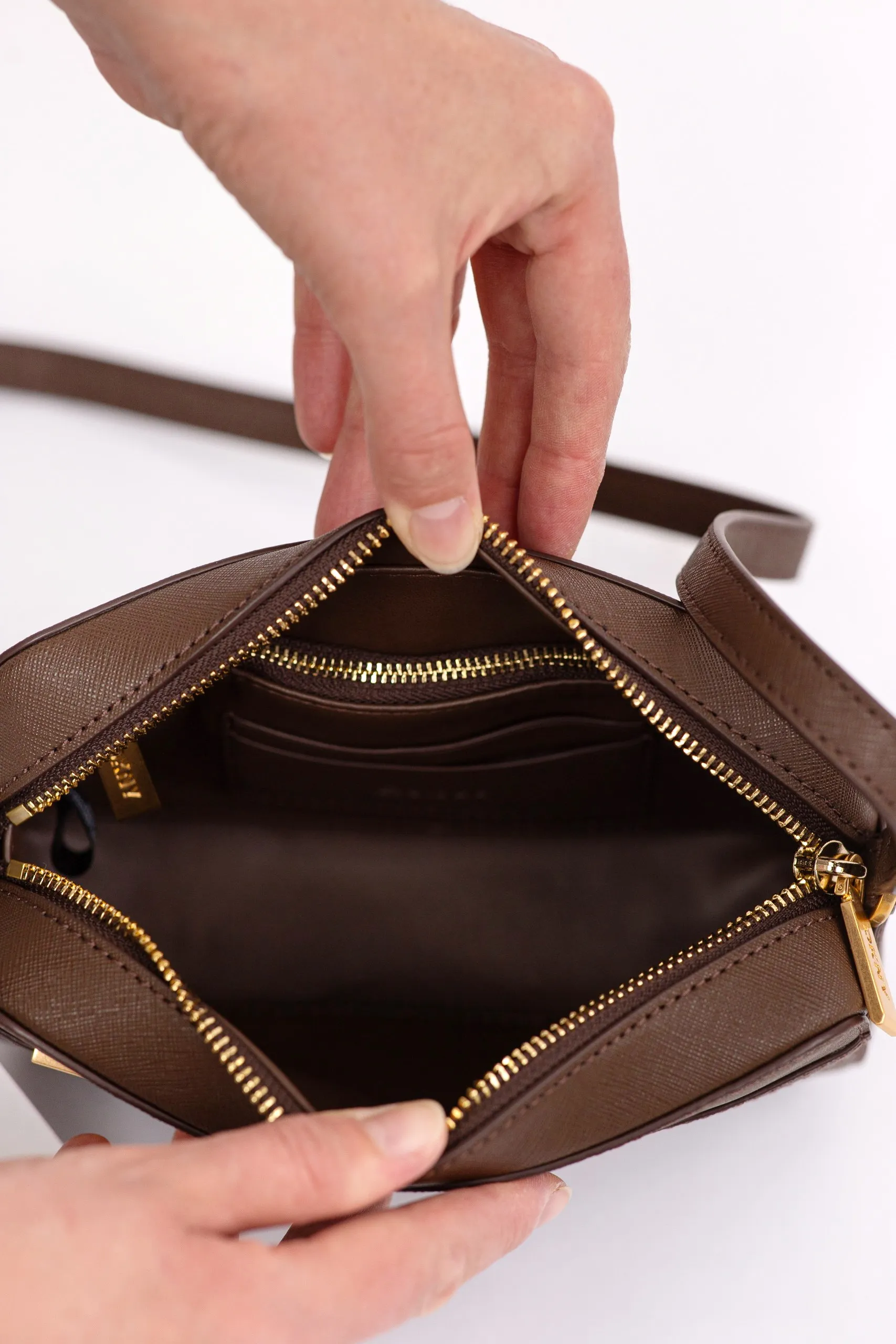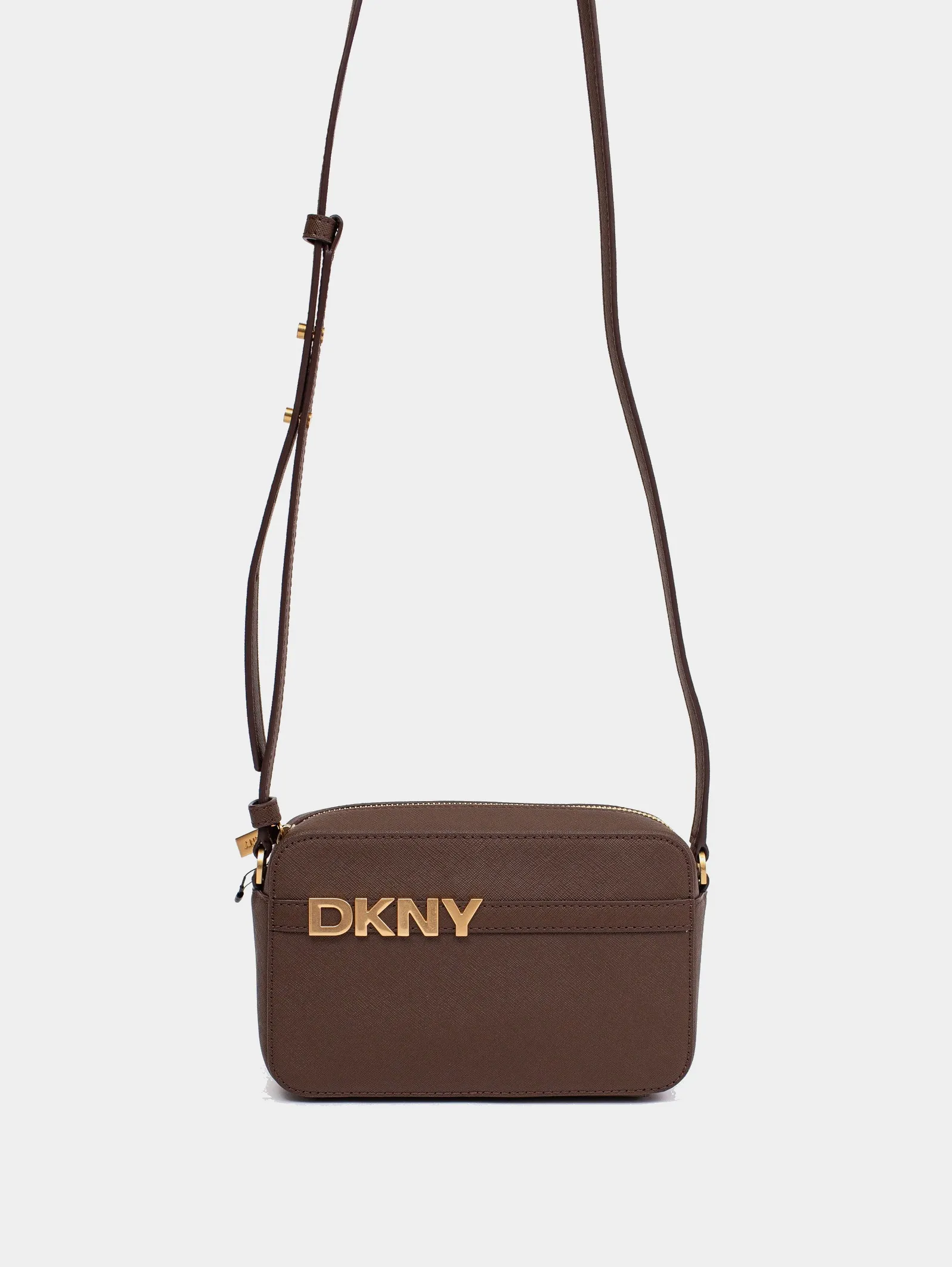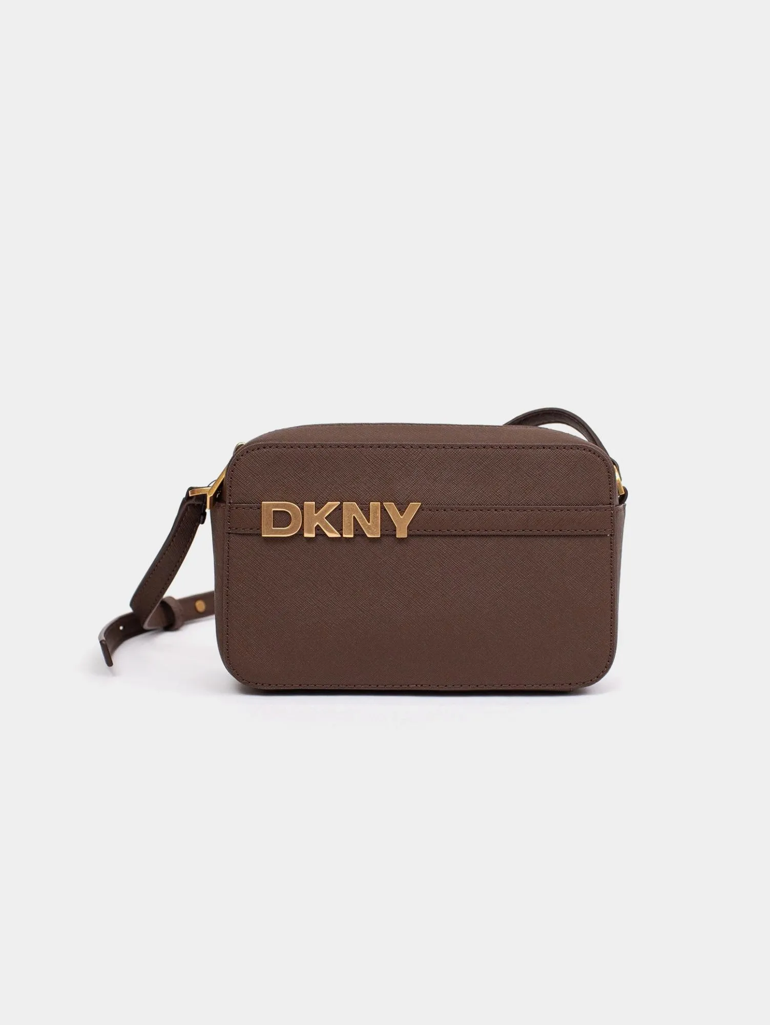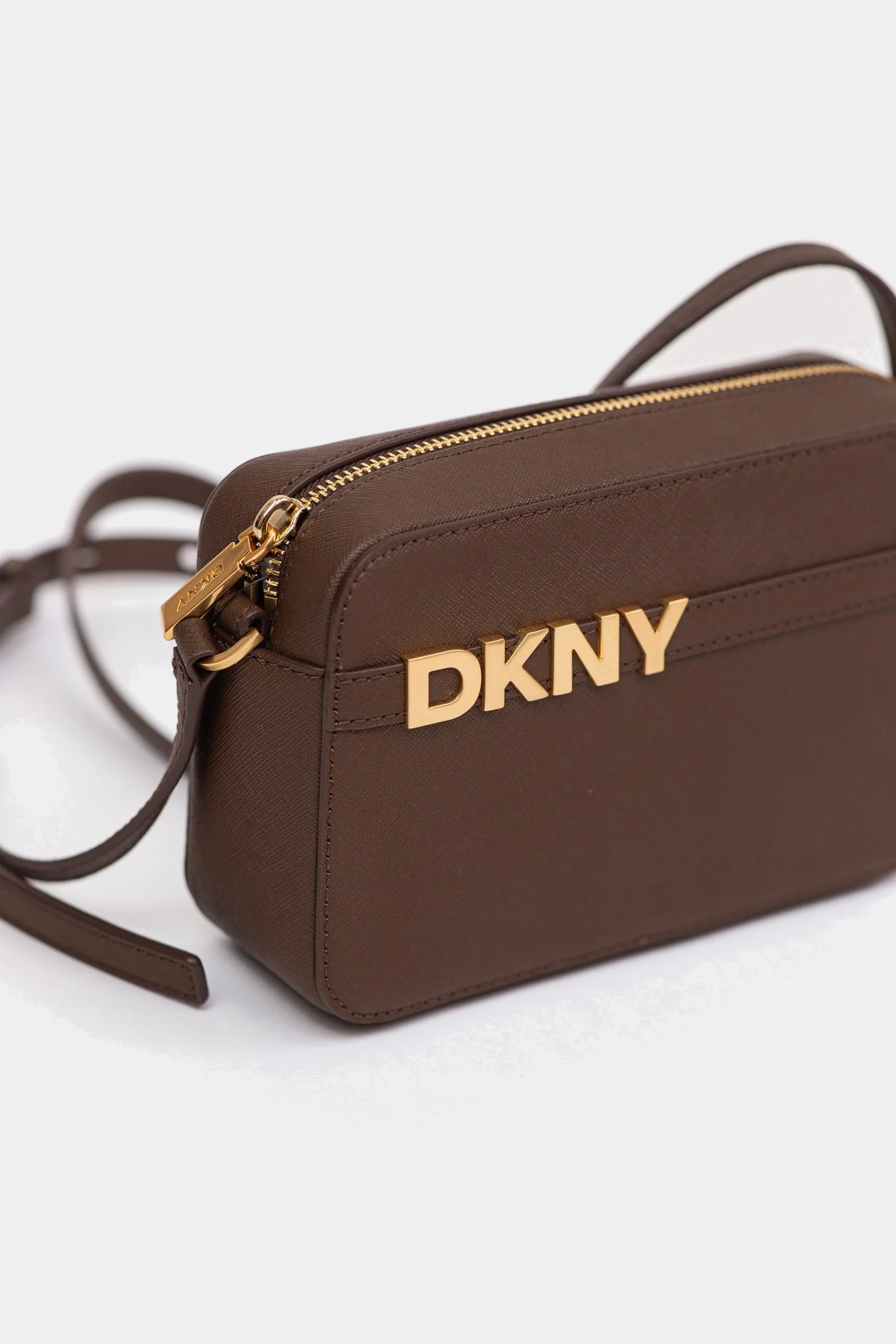 Компактная сумка через плечо AVRIL CAMERA коричневого цвета из искусственной кожи от DKNY — универсальный аксессуар на каждый день. Элегантный дизайн и удобный формат делают её отличным выбором для повседневных и городских образов.