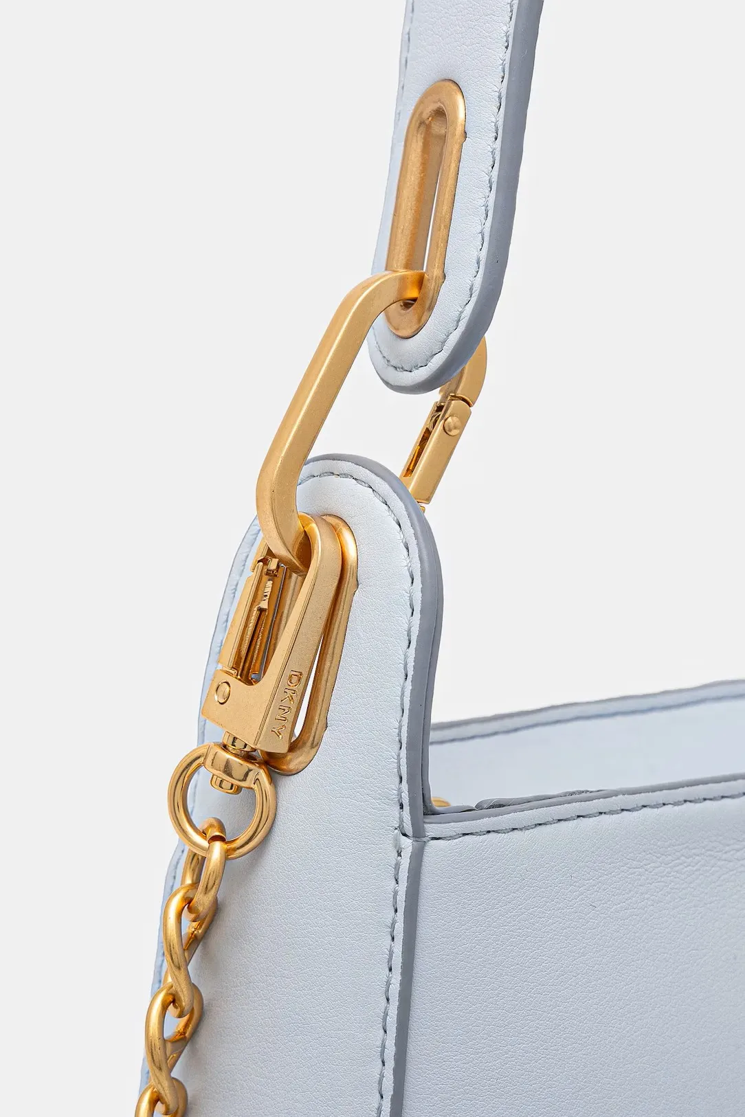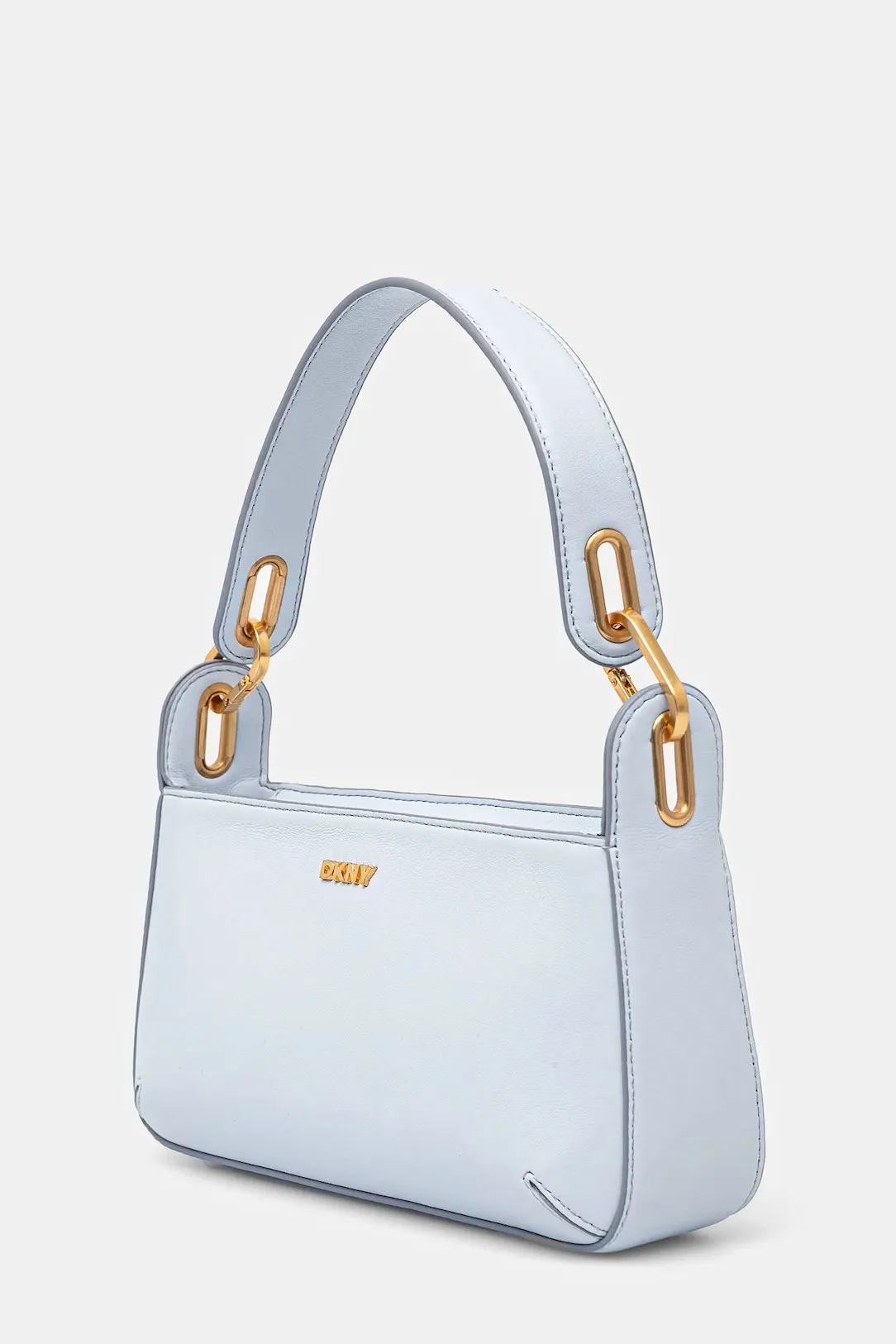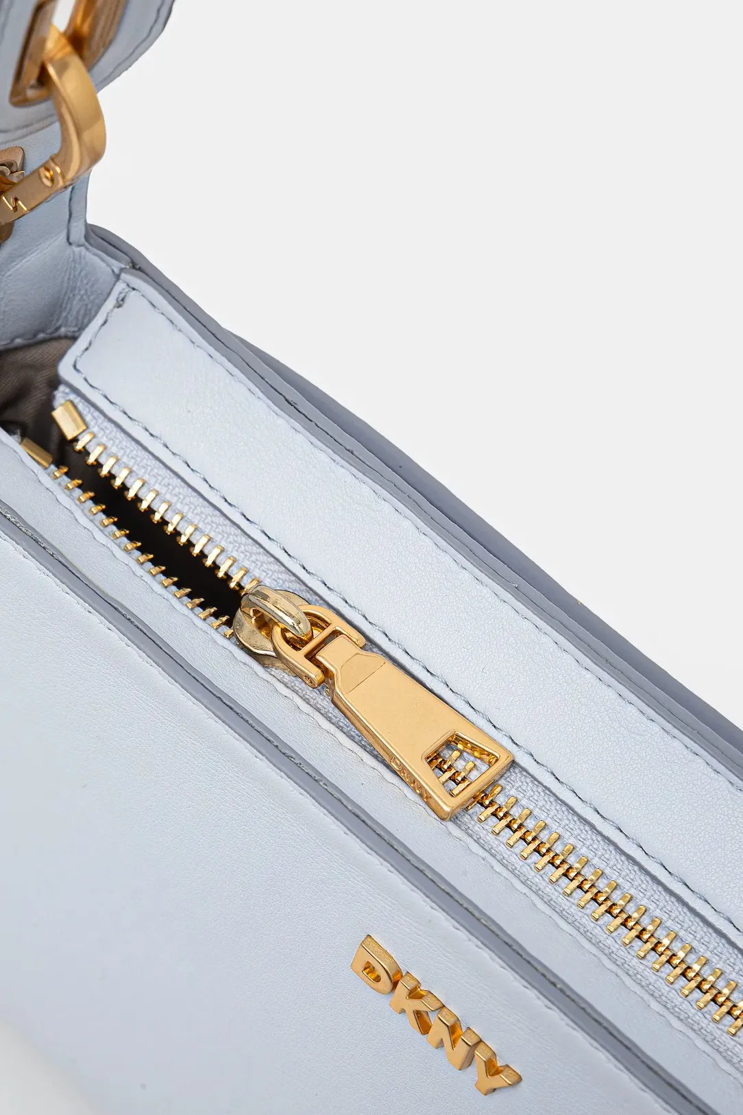 Элегантная мини-сумка из коллекции DKNY выполнена из натуральной коровьей кожи — прочного и гибкого материала, обеспечивающего долговечность и комфорт в использовании. Модель закрывается на молнию, внутри предусмотрено отделение для карт. Оснащена съёмной короткой ручкой и регулируемым плечевым ремнём для удобства ношения. Подходит для повседневных образов, не рассчитана на формат А4. Имеет подкладку и поставляется с защитным текстильным чехлом. Размеры: глубина — 6 см, высота — 13 см, ширина у основания — 25 см.