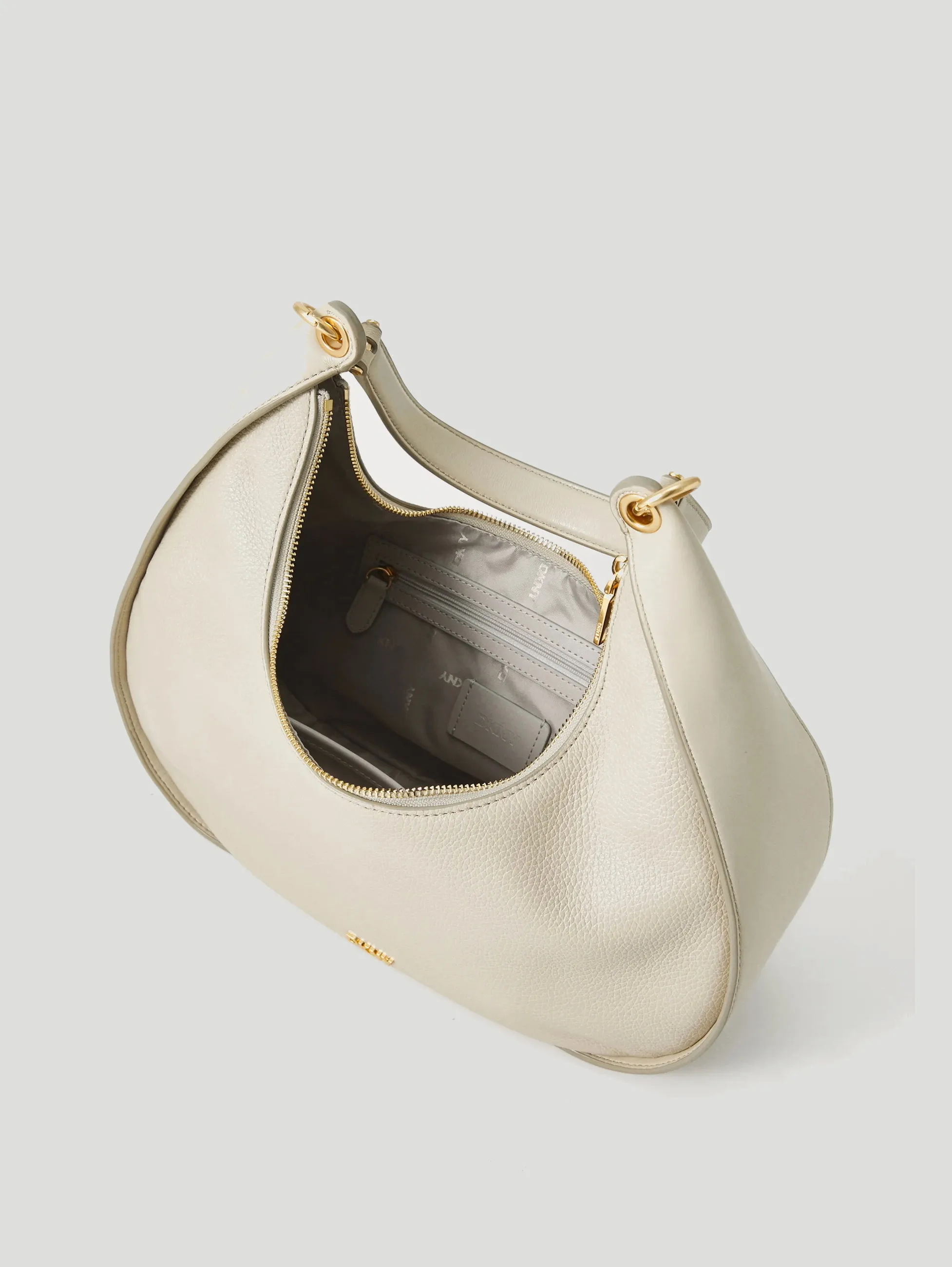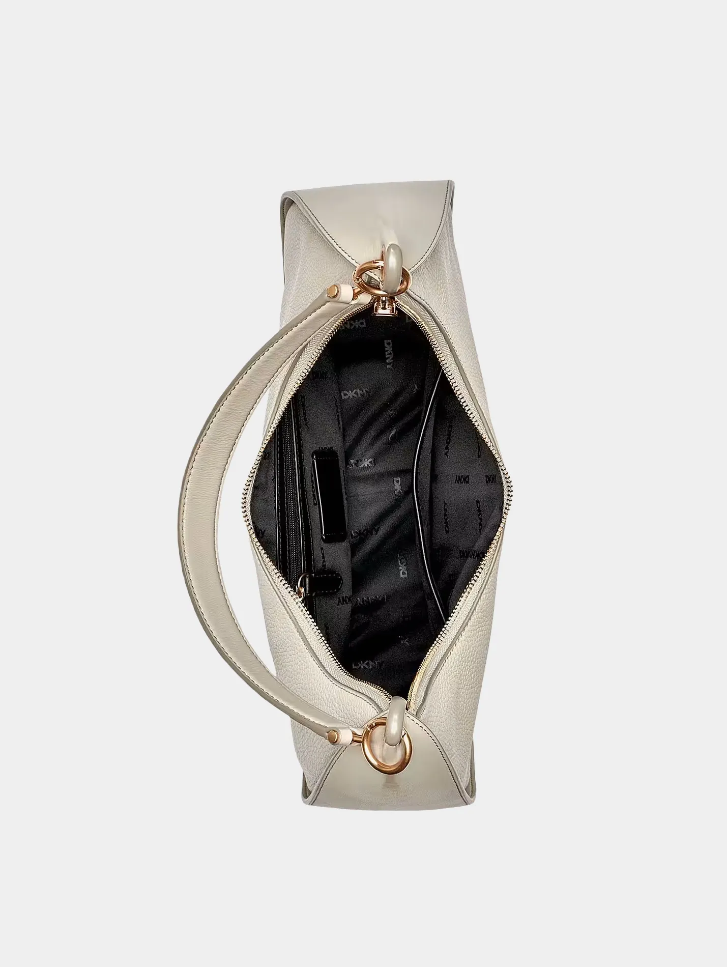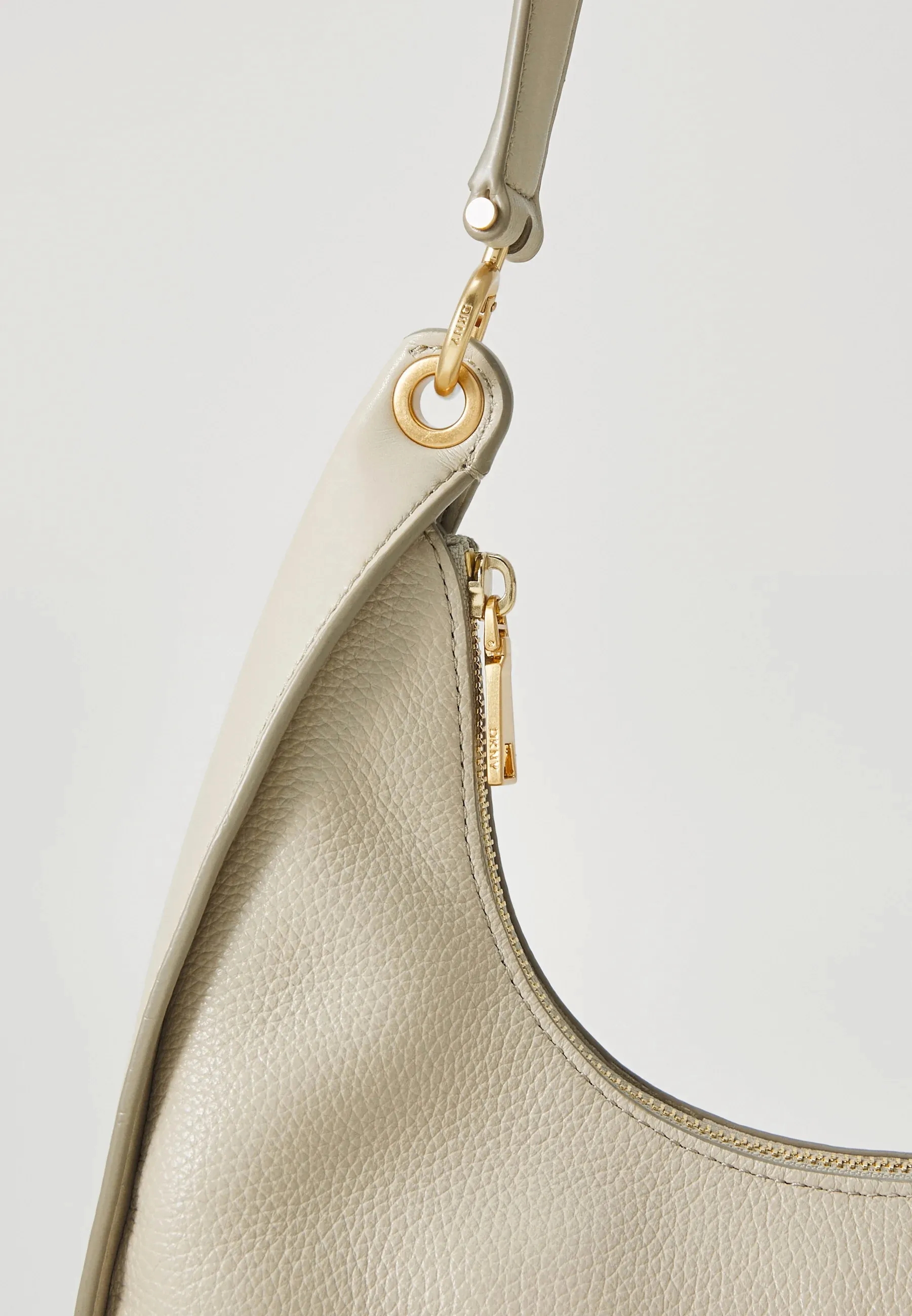 Сумка-хобо ABBY LG HOBO из коллекции DKNY из натуральной кожи светло-бежевого цвета. Компактный и элегантный аксессуар, созданный для активных и стильных женщин. Благодаря универсальному дизайну, она идеально подойдёт как для праздничных мероприятий, так и для повседневных образов. Регулируемый ремешок позволяет удобно носить сумку на плече или через плечо