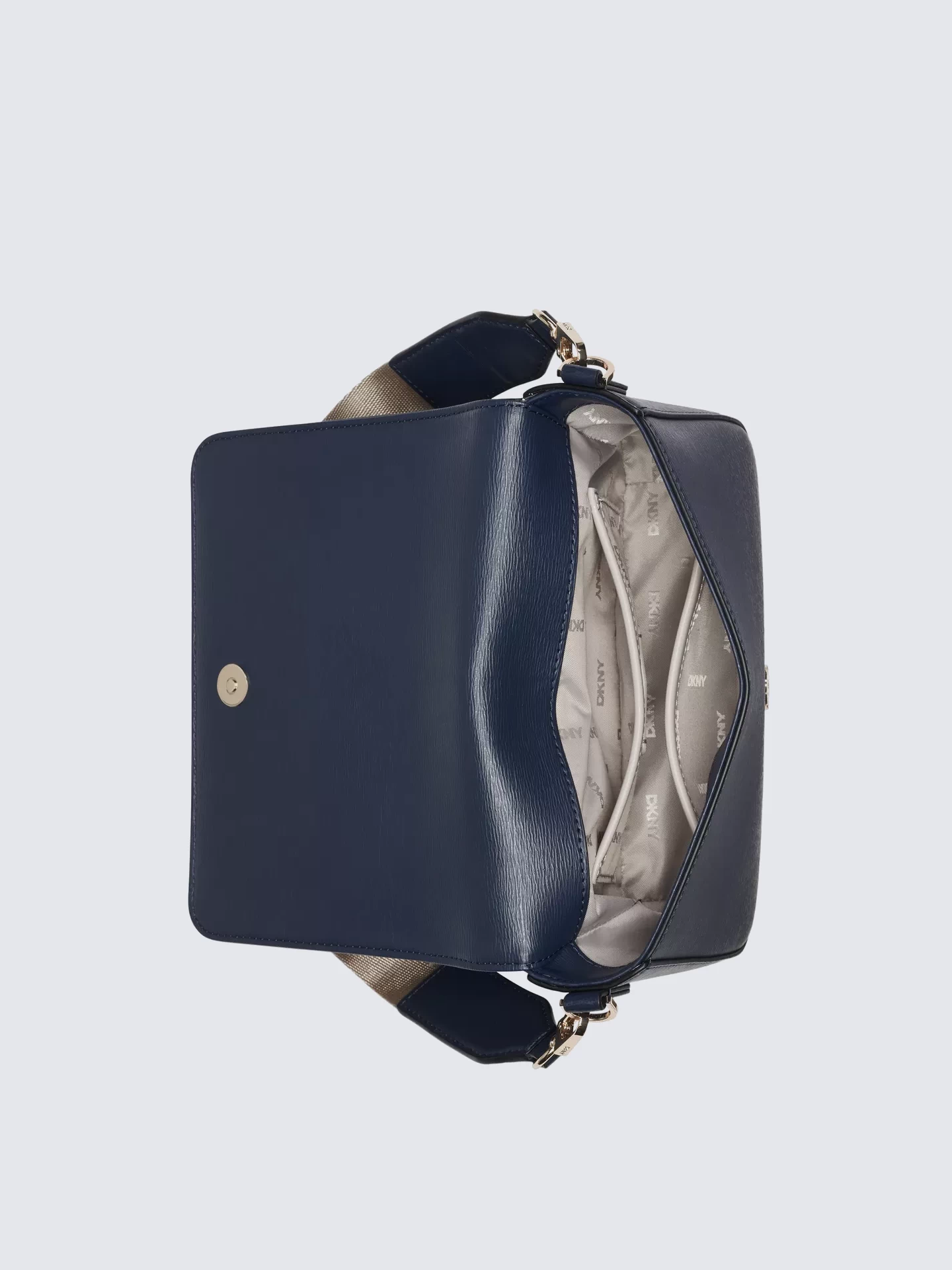 Жесткая конструкция, фирменный подклад из полиэстера, металлическая фурнитура золотого цвета.