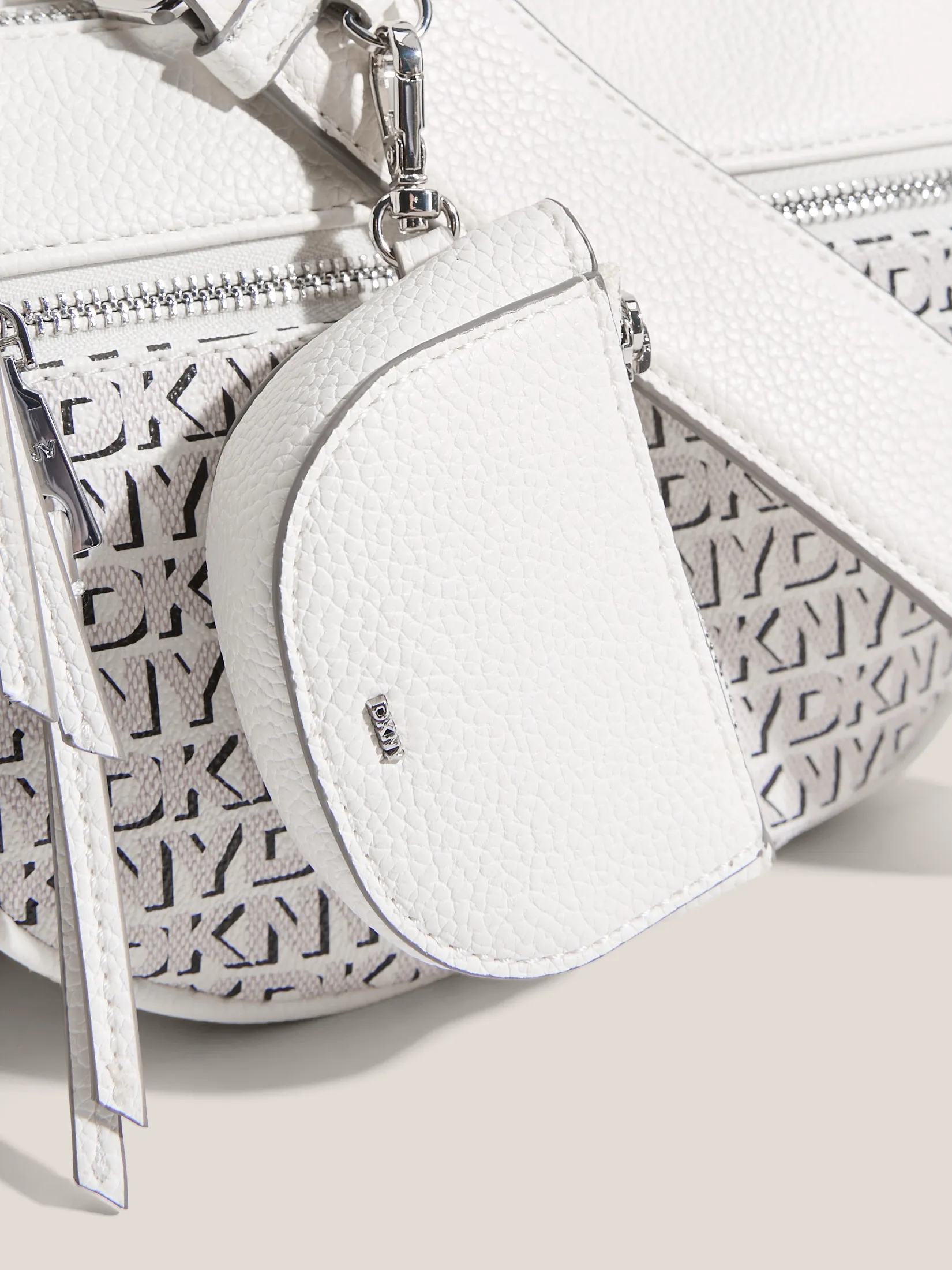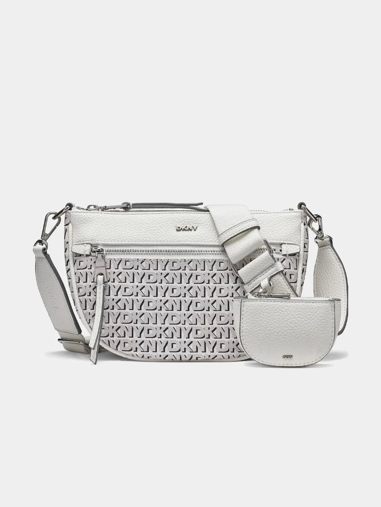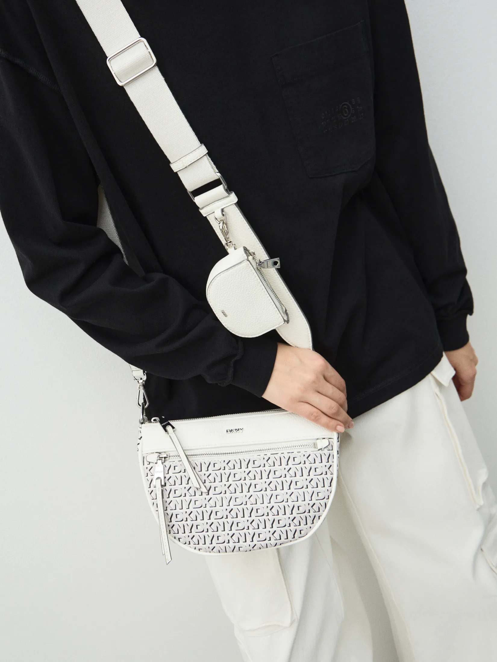 Женская сумка через плечо ZOIE из искусственной кожи с логопринтом бренда. Жесткая конструкция держит форму.
