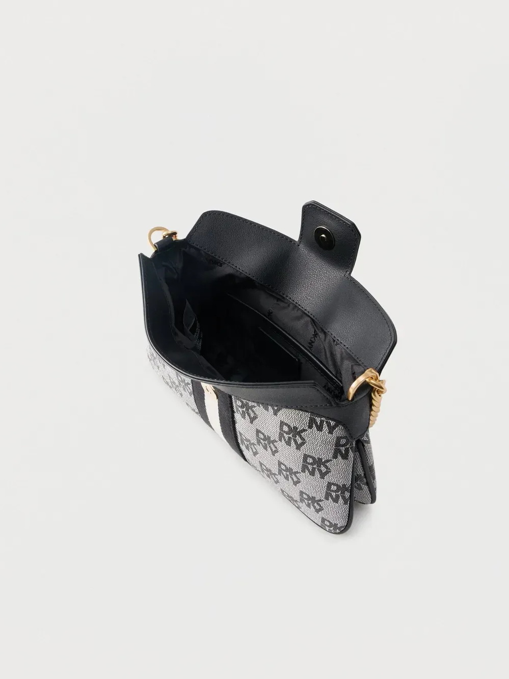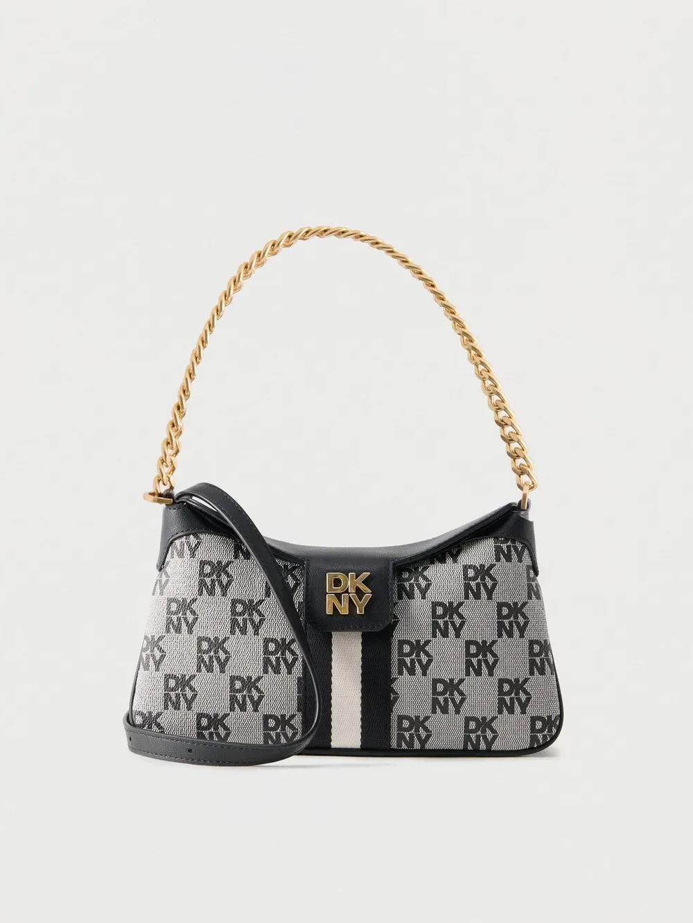 Маленькая сумка через плечо GLADYS SM из экокожи с короткой ручкой цепочкой и съемным плечевым ремнем. Стильный лаконичный дизайн с логопринтом бренда. Сумка закрывается клапаном с магнитной застежкой.