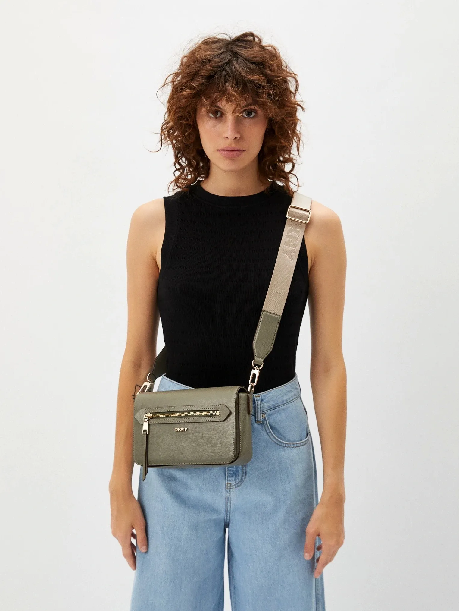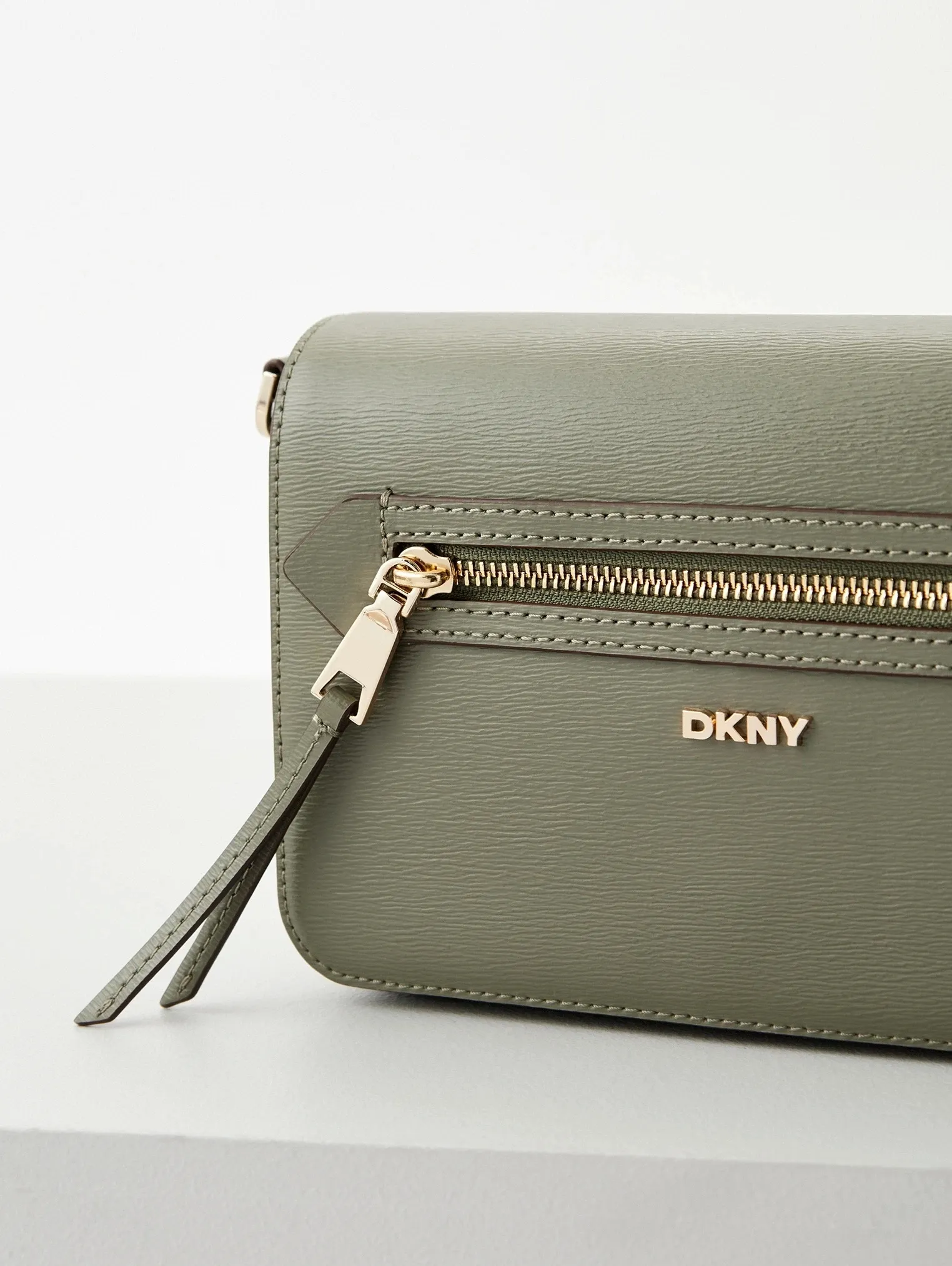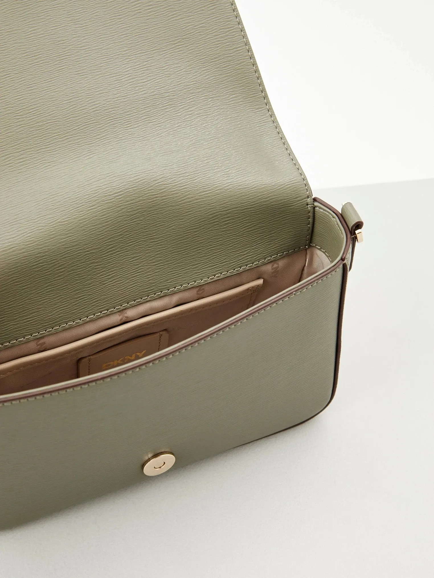 Элегантная кожаная сумка через плечо BRYANT AVE MD FLAP от бренда DKNY зеленого цвета - это идеальное сочетание стиля и практичности. Компактные размеры и регулируемый ремень обеспечат комфорт и удобство в любой ситуации. Добавьте роскоши в ваш повседневный образ с этой сумкой в стиле минимализма!