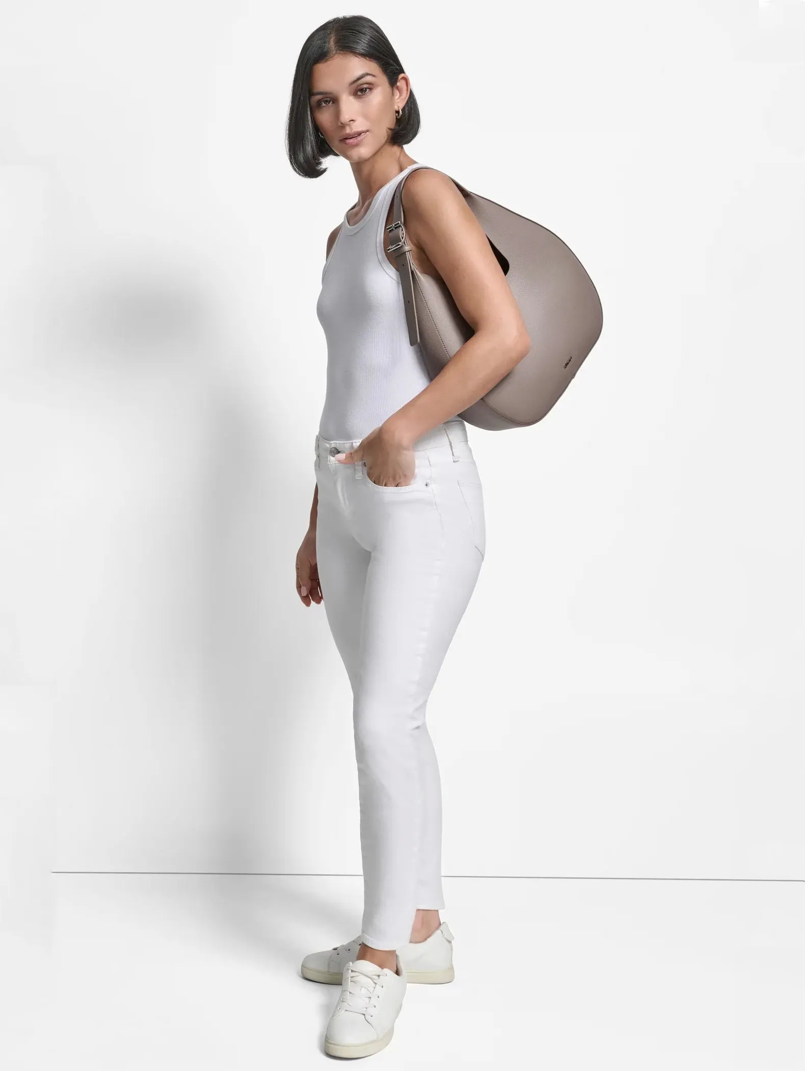 Средняя сумка-хобо CAMILA MD от DKNY из искусственной кожи бежевого цвета — стильная база для городских и casual-образов.