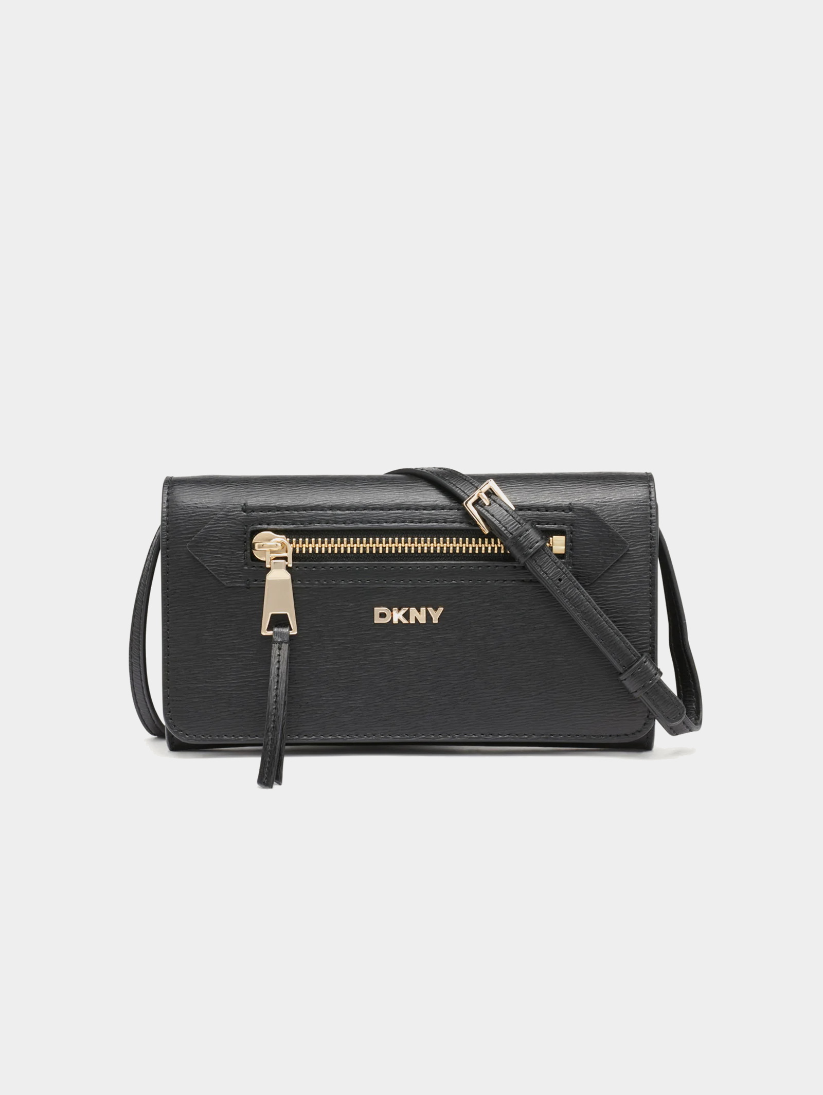 Черный клатч DKNY Bryant Avenue из натуральной кожи. Универсальная модель, подходящая как для дневных, так и для вечерних образов.
