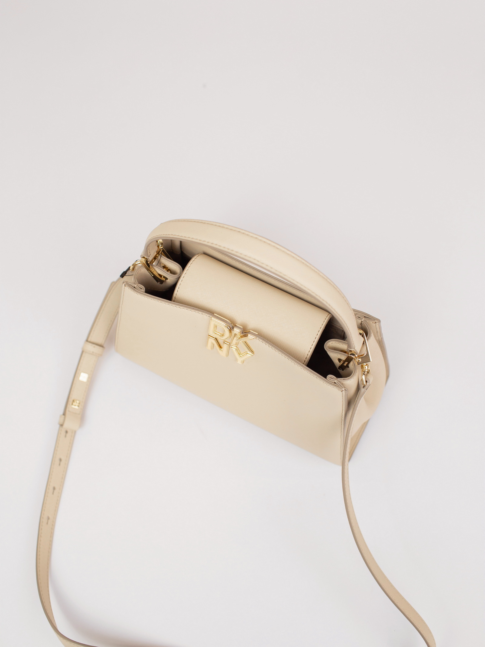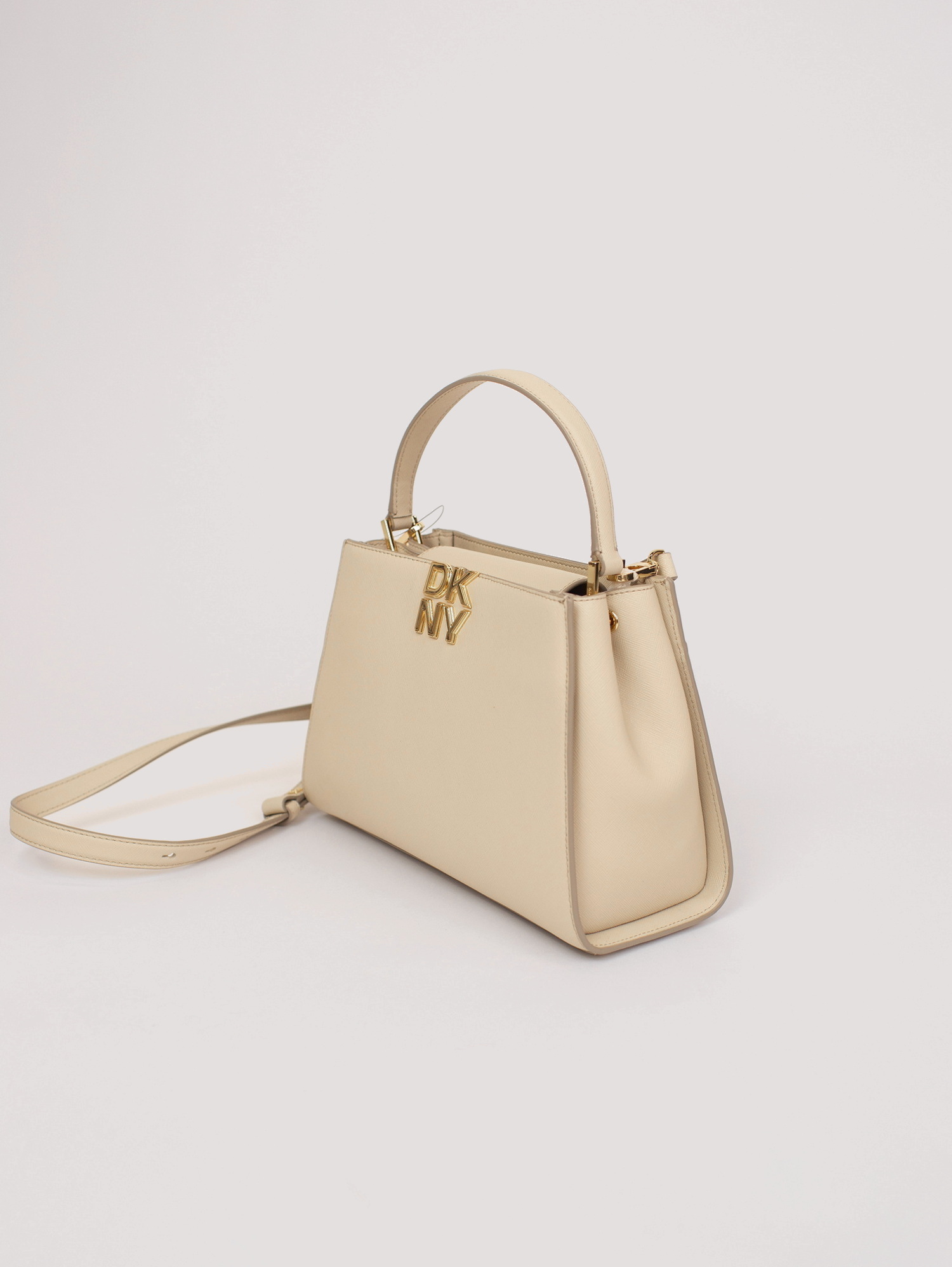 Средняя сумка FOSTER MD SATCHEL от DKNY из натуральной кожи светло-бежевого цвета — стильная база для городских и casual-образов.