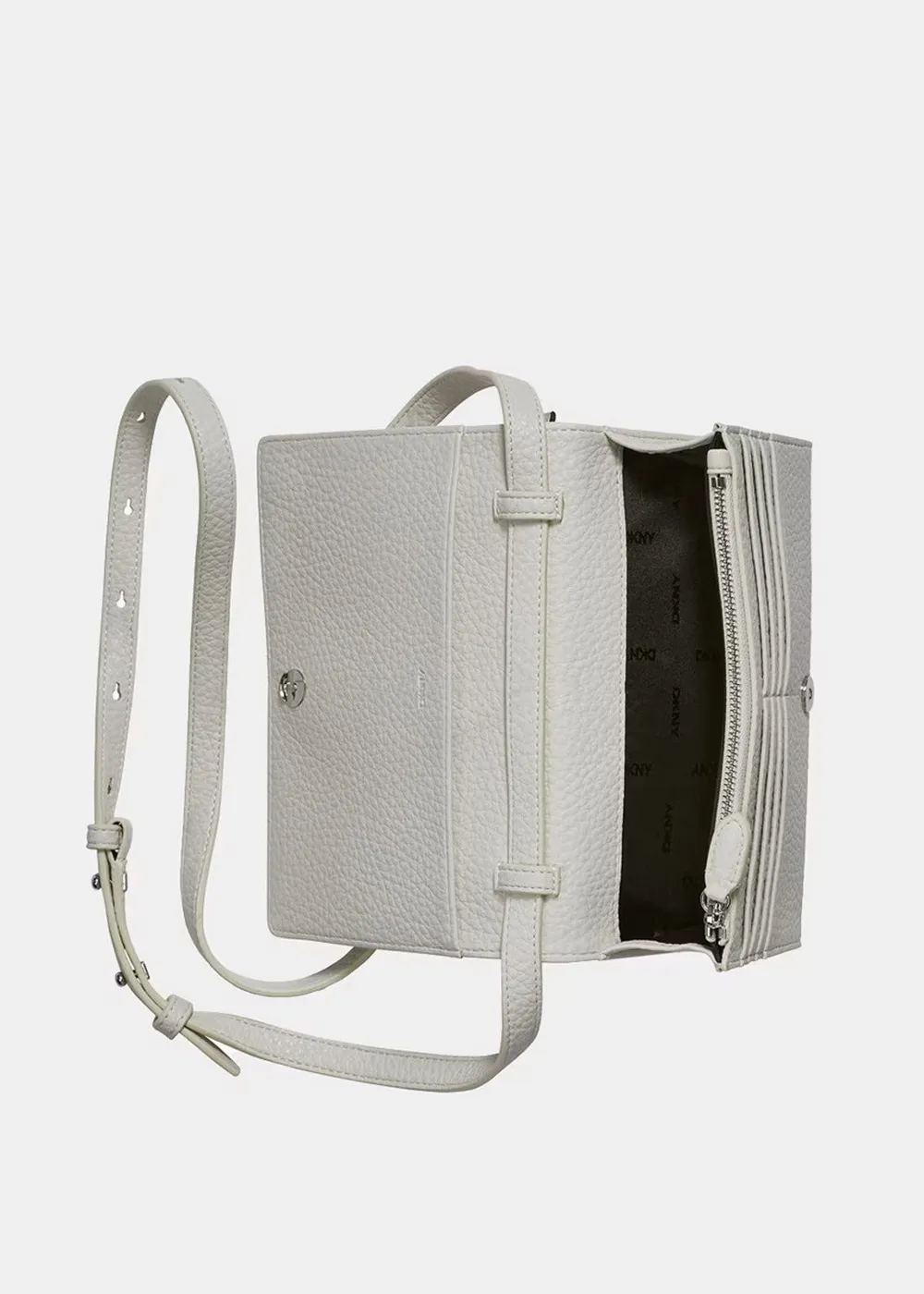 Внутри: 1 открытое отделение, 1 карман на молнии, 8 кармашков для кредитных карт.