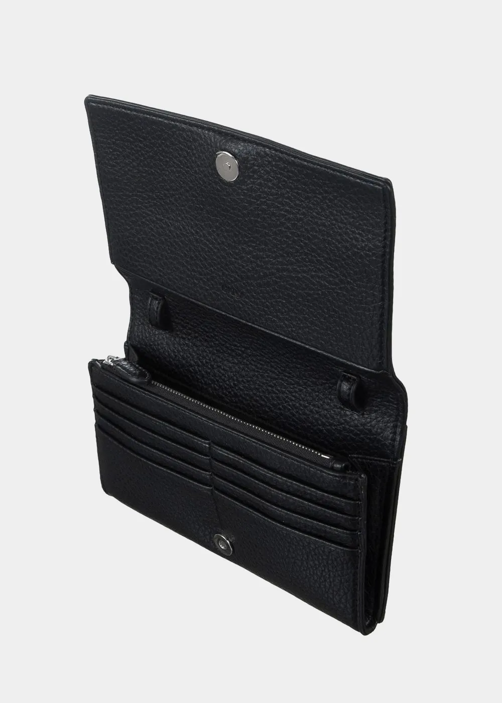 Внутри: 1 открытое отделение, 1 карман на молнии, 8 кармашков для кредитных карт.