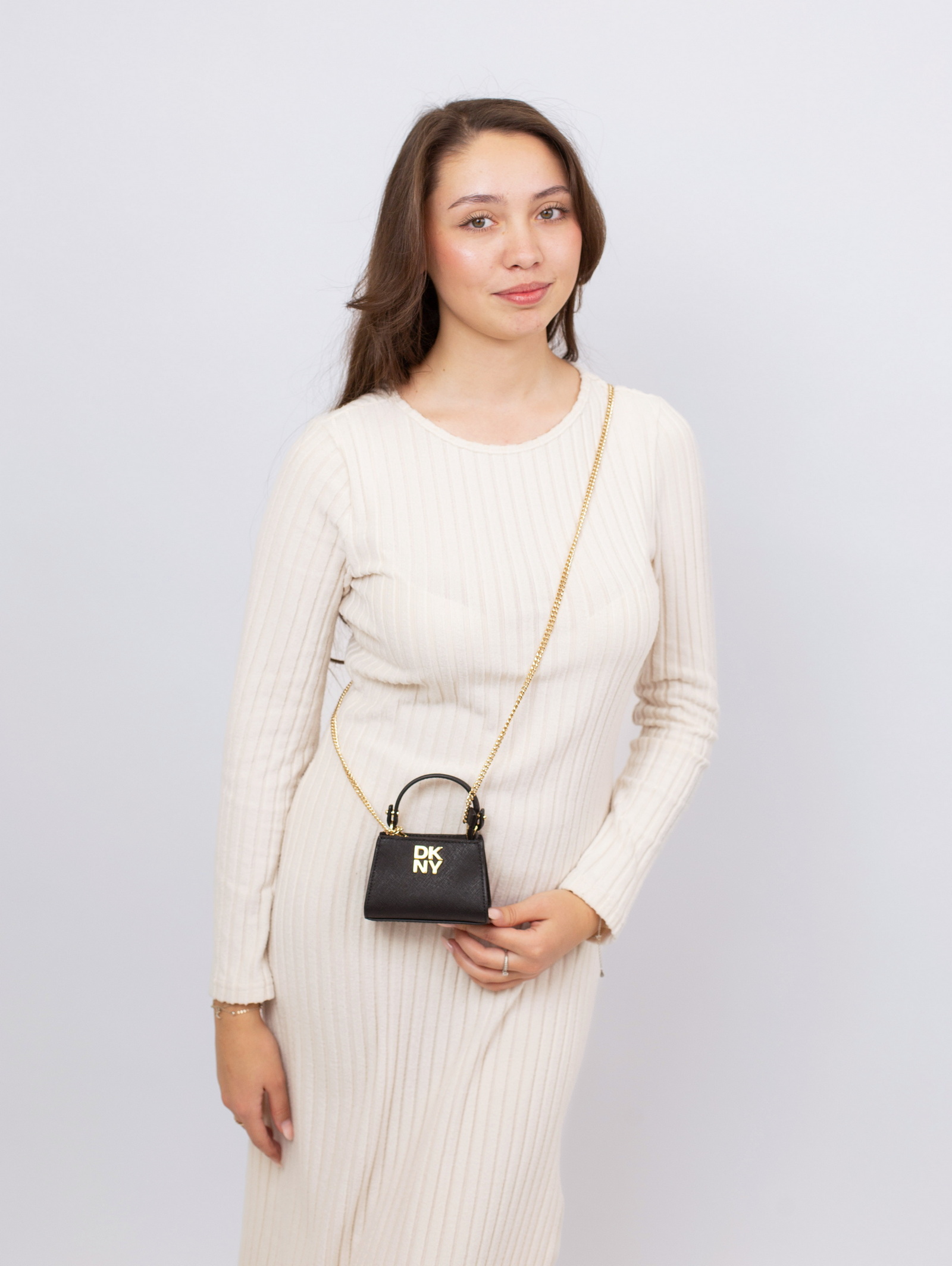 Мини-сумочка FOSTER MICRO от DKNY — маленькая, но эффектная деталь, которая моментально притягивает внимание. Выполненная из натуральной кожи, она добавляет образу стильный акцент и фирменное очарование бренда, идеально завершая вечерний лук.