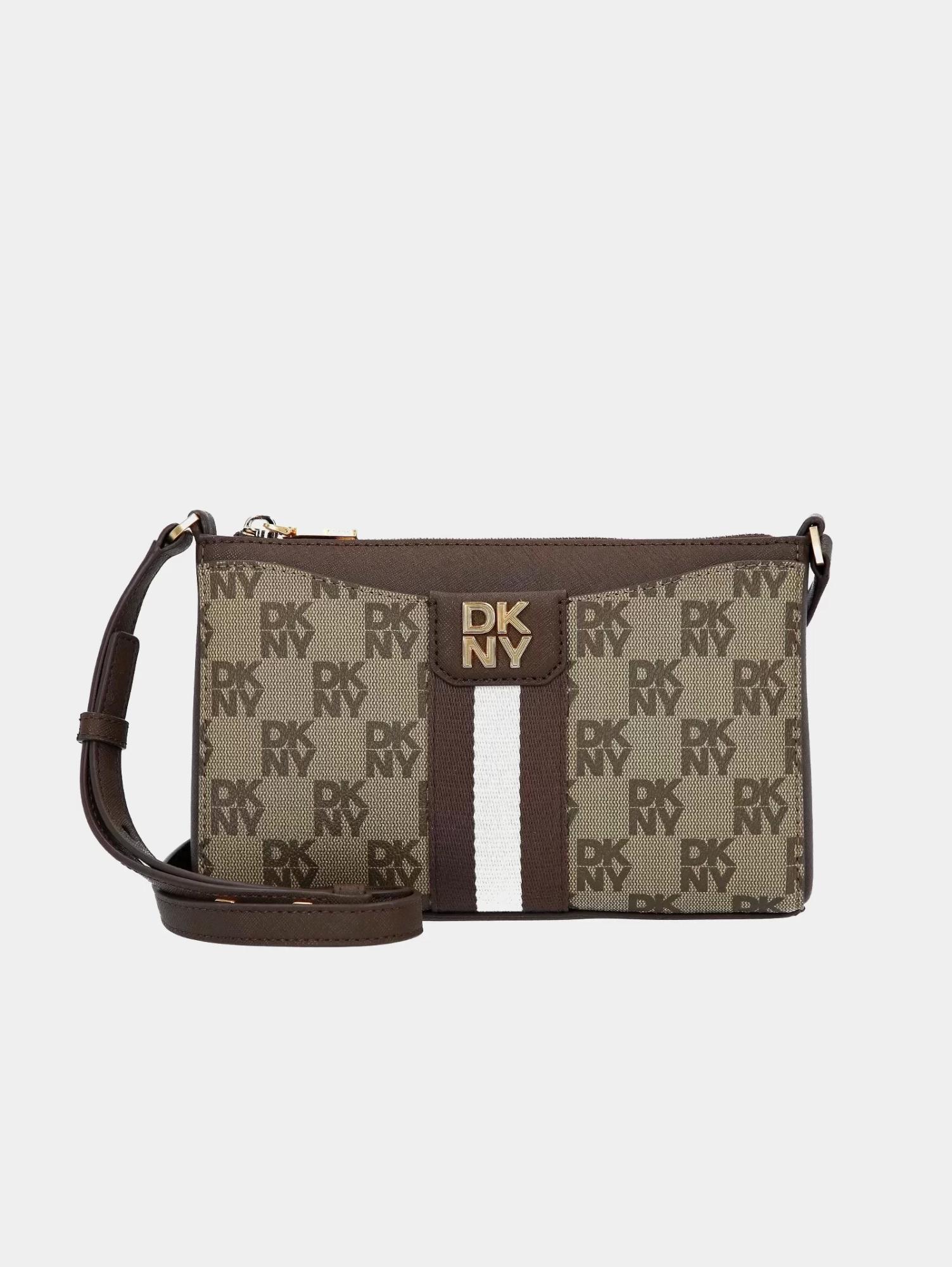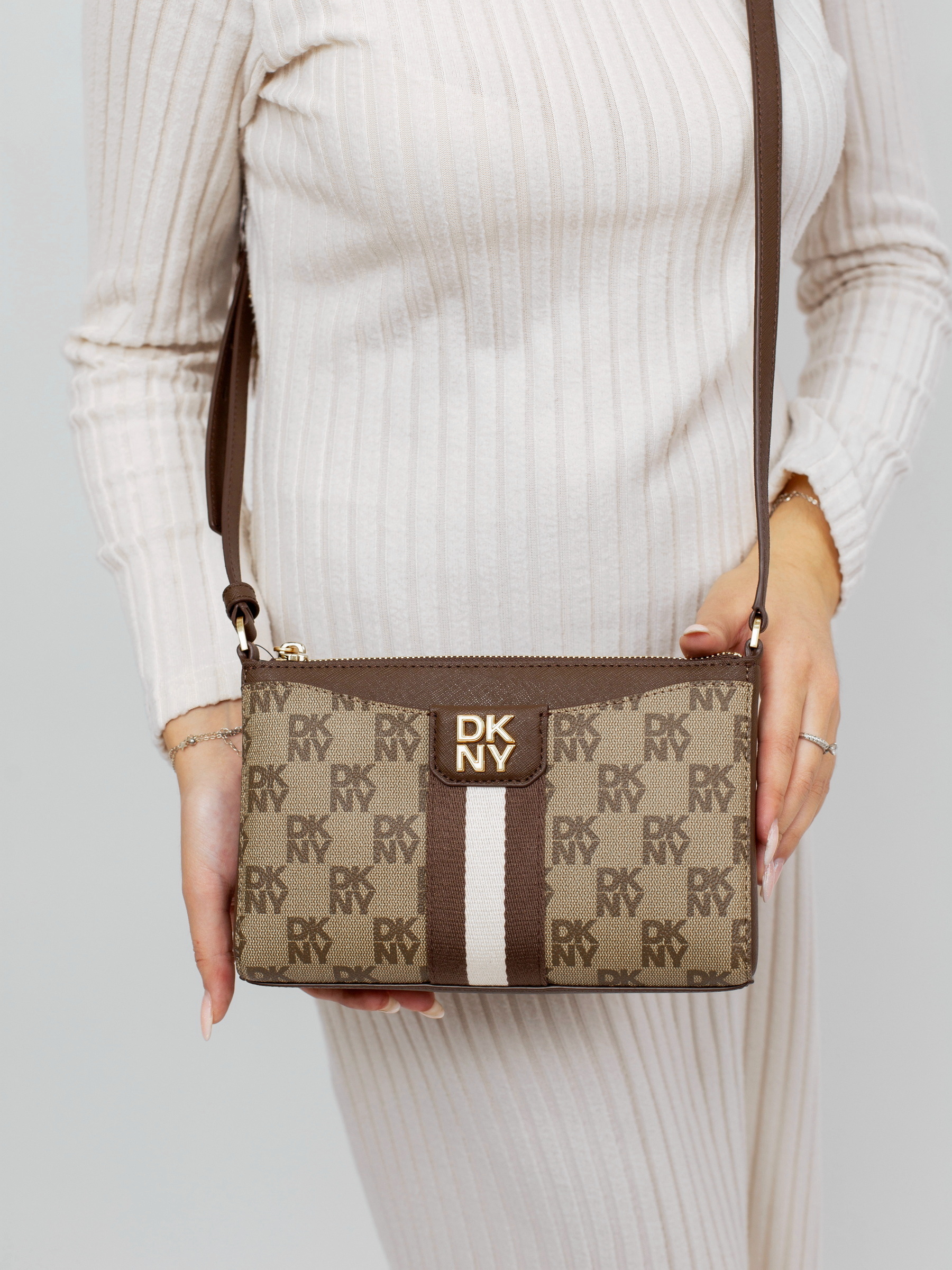 Сумка через плечо NURI TZ от DKNY выполнена из сочетания натуральной и искусственной кожи. Фирменный логопринт придаёт модели выразительный акцент и подчёркивает стиль бренда. Идеальный аксессуар для современного повседневного или городского образа.