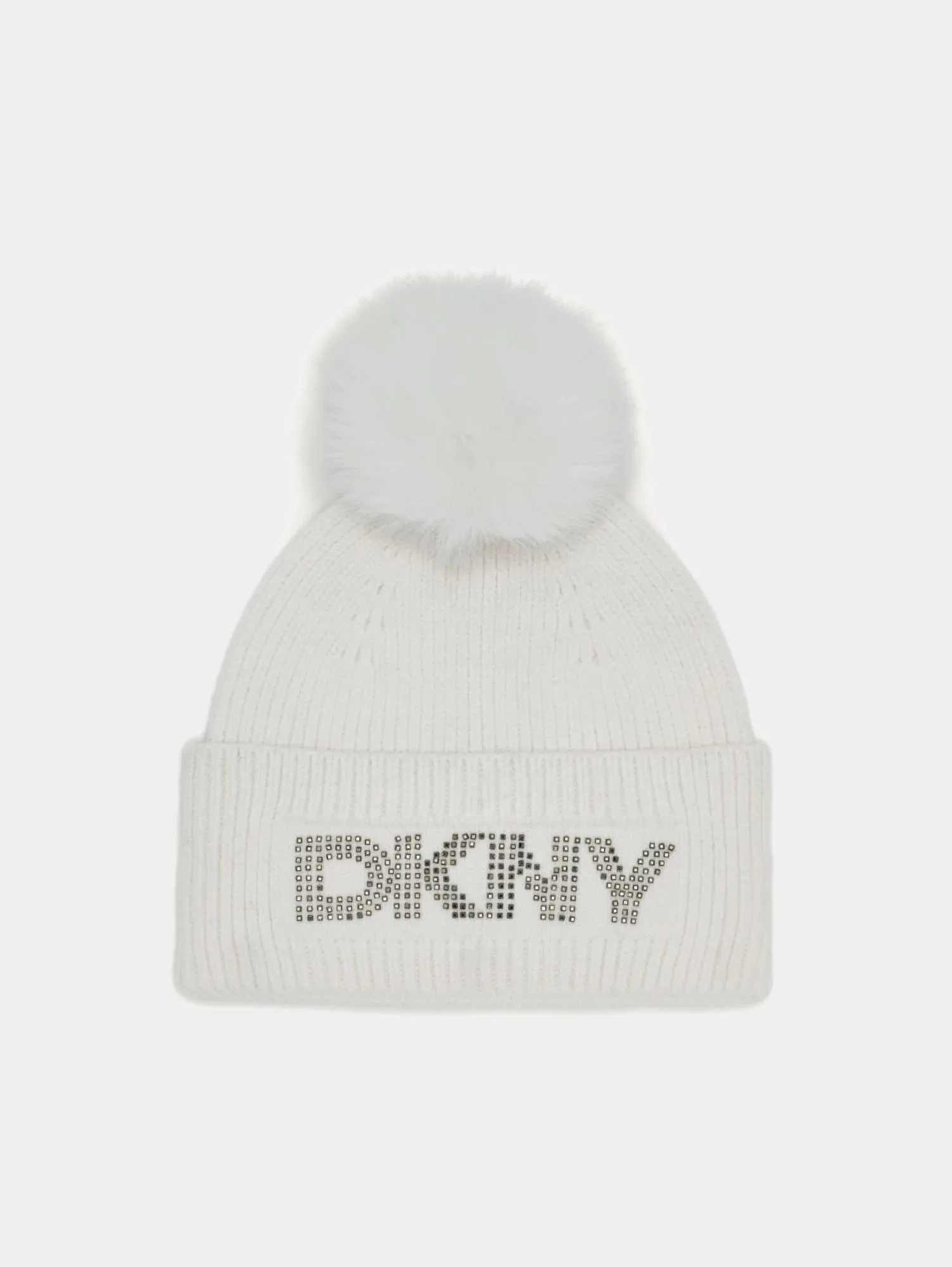 Женская шапка DKNY с помпоном — тёплый и стильный аксессуар для холодного сезона. Мягкий трикотаж обеспечивает комфорт, а декор из страз с логотипом бренда делает образ более выразительным. Универсальный дизайн легко впишется в повседневные и городские образы.