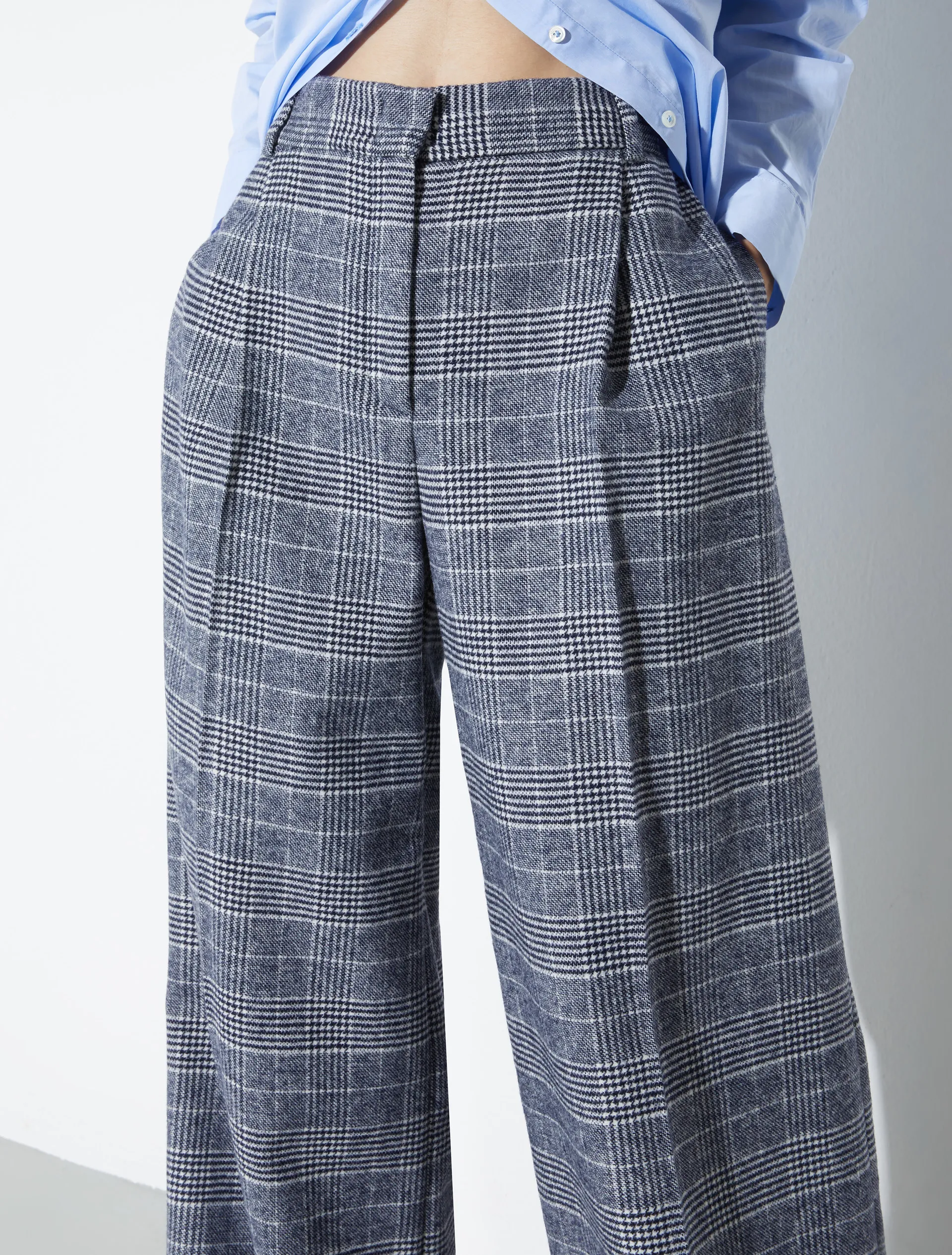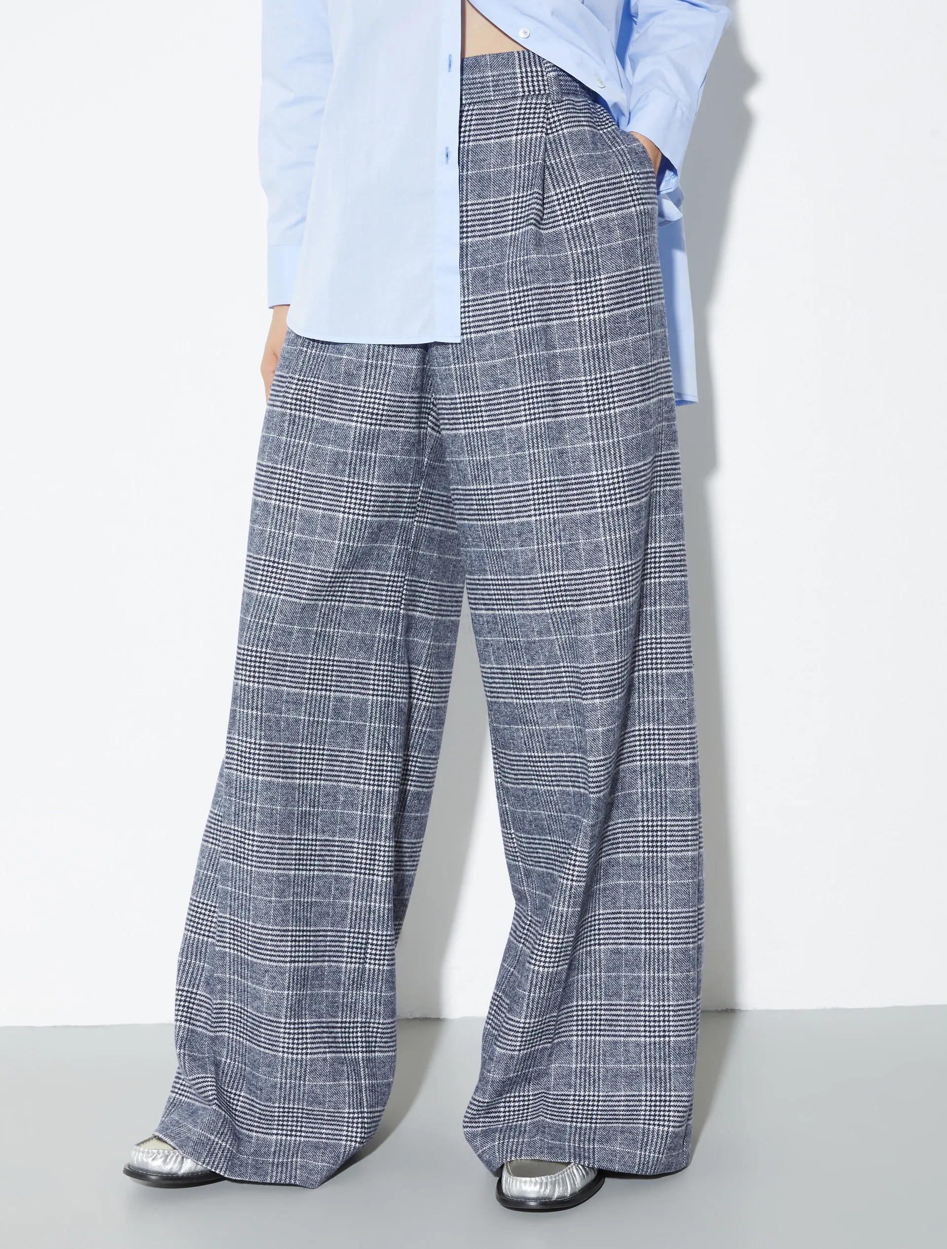 Широкие фланелевые брюки со стрелками FULL от MAX&Co., вдохновленные классическим мужским кроем, создают элегантный и современный силуэт. Модель в клетку со средней посадкой и невидимой застёжкой сбоку дополнена боковыми и задними карманами. Идеально сочетаются с блейзером из коллекции.