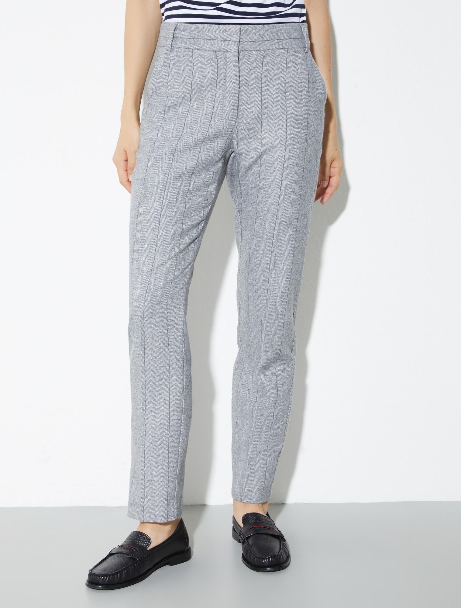 Брюки SVEZIA от MAX&Co из шерстяной фланели — современный взгляд на классику. Зауженный крой и стрелки визуально удлиняют силуэт, пояс со шлёвками подчёркивает талию. Элегантный узор и мягкая фактура создают безупречный образ в паре с блейзером из коллекции.