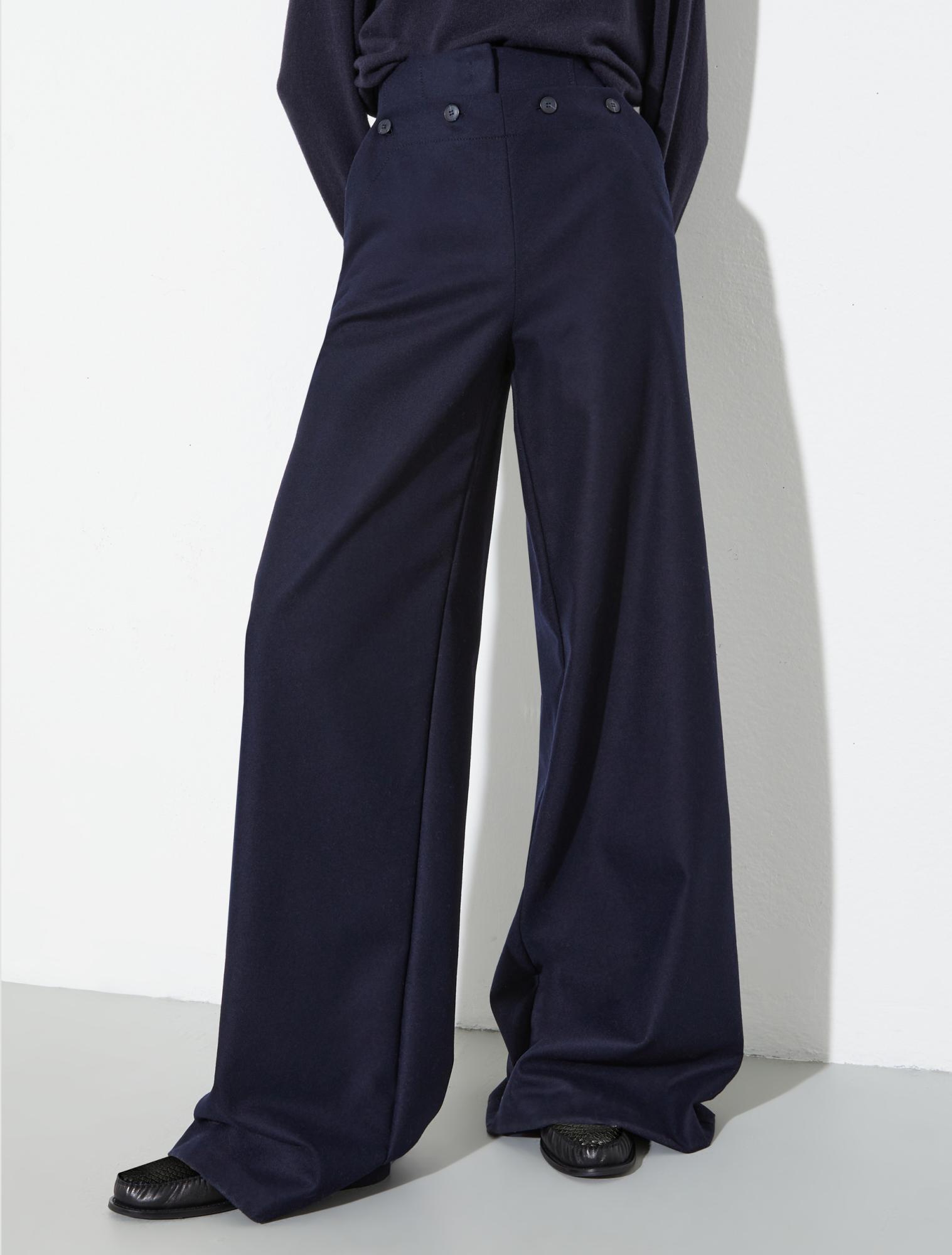 Брюки NIGRA от MAX&Co с высокой посадкой — воплощение современной женственности. Широкие расклёшенные брючины из мягкой смесовой шерсти эффектно подчёркивают силуэт. Элегантные карманы и идеальная посадка создают безупречный ансамбль с пиджаком из коллекции.