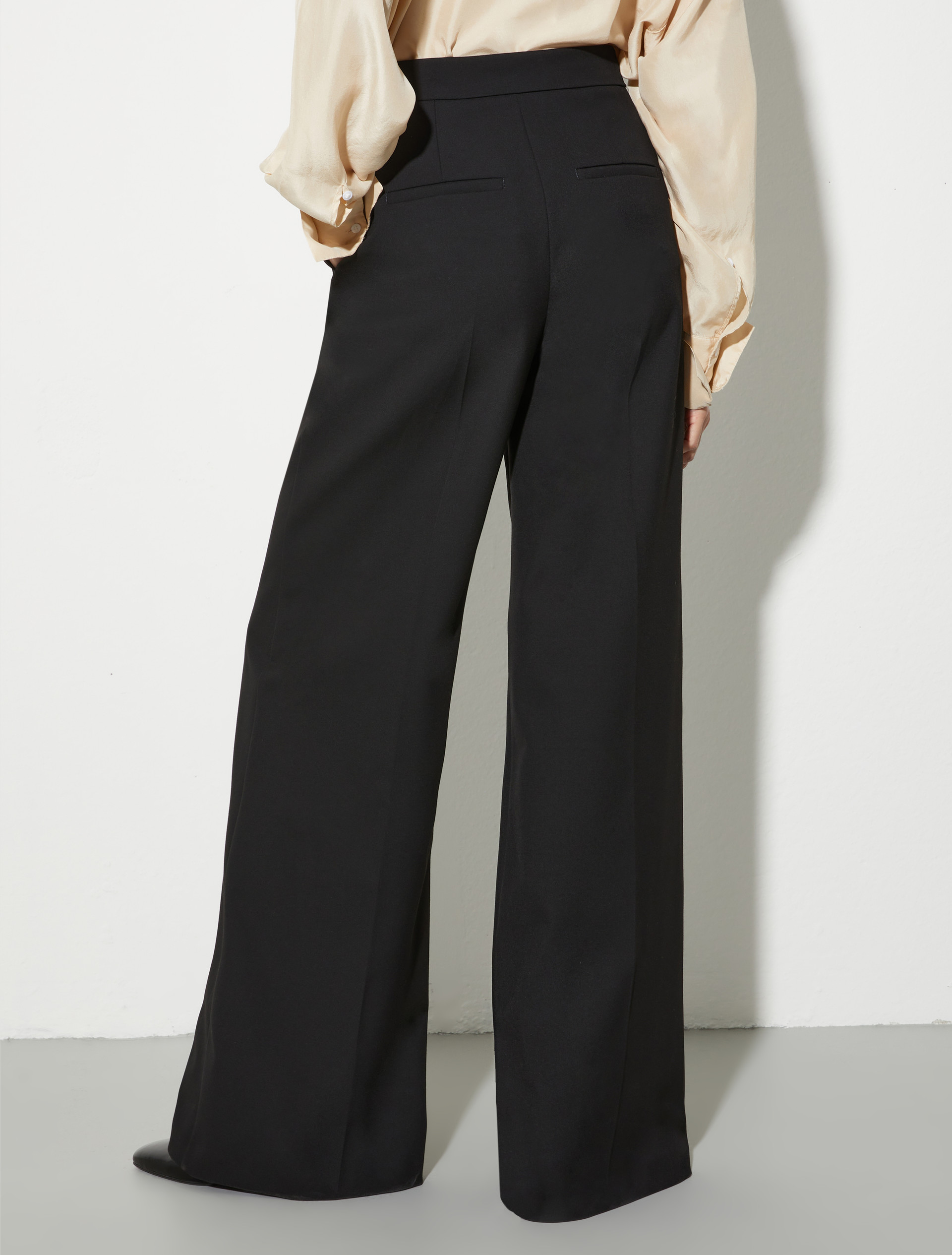 Брюки-палаццо BASSANO от MAX&Co — безупречная база для современного офисного стиля. Мягкая двусторонняя ткань из вискозной смеси обеспечивает комфорт и лёгкость движений. Широкие прямые брючины и стрелки визуально вытягивают силуэт, а в паре с блейзером создают элегантный, уверенный образ.