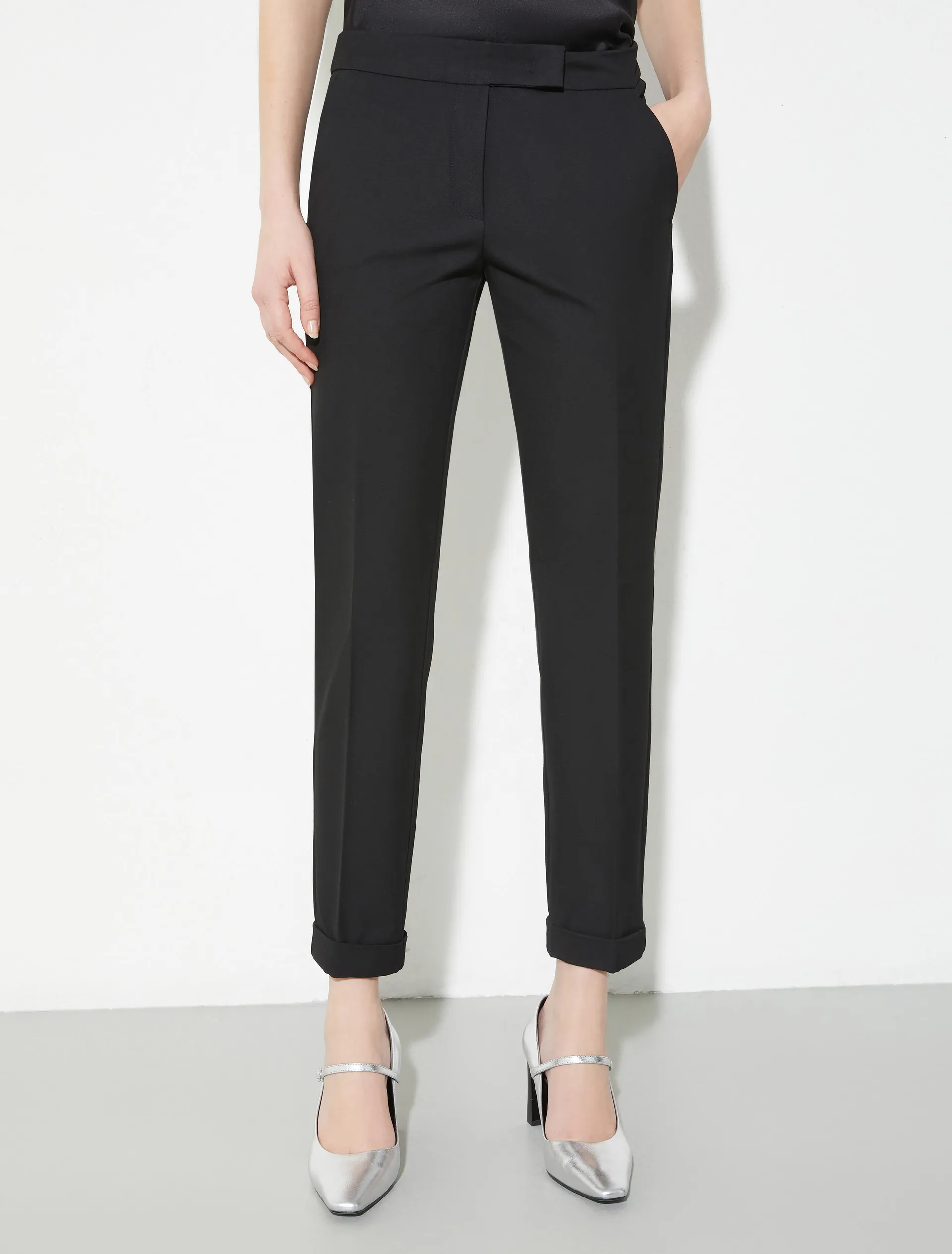 Брюки MONOPOLI от MAX&Co — воплощение современного городского стиля. Безупречный зауженный крой, аккуратные отвороты и стрелки формируют элегантный силуэт. Эластичная двусторонняя ткань обеспечивает комфорт на весь день. Сочетайте с блейзером из коллекции для безошибочного офисного образа.