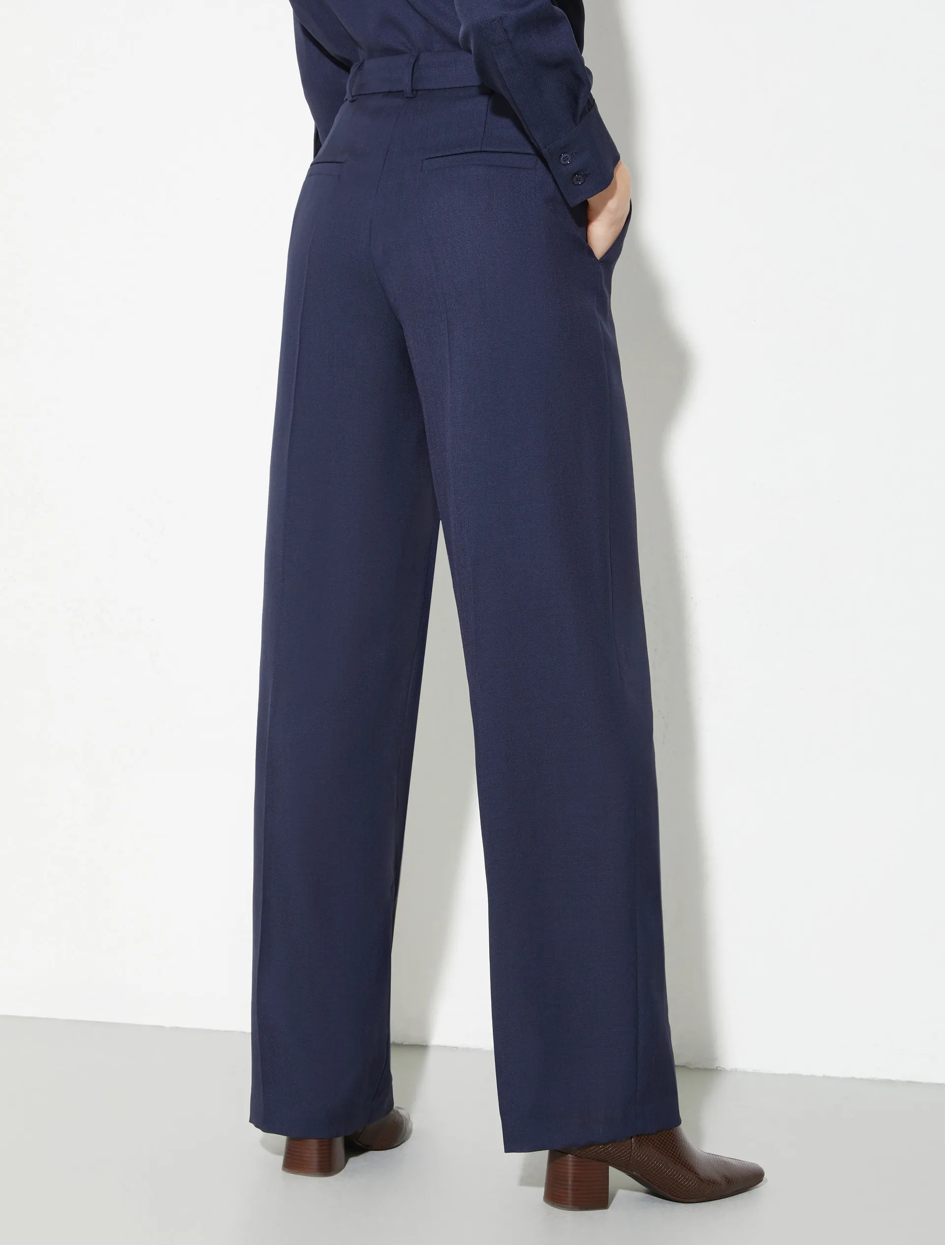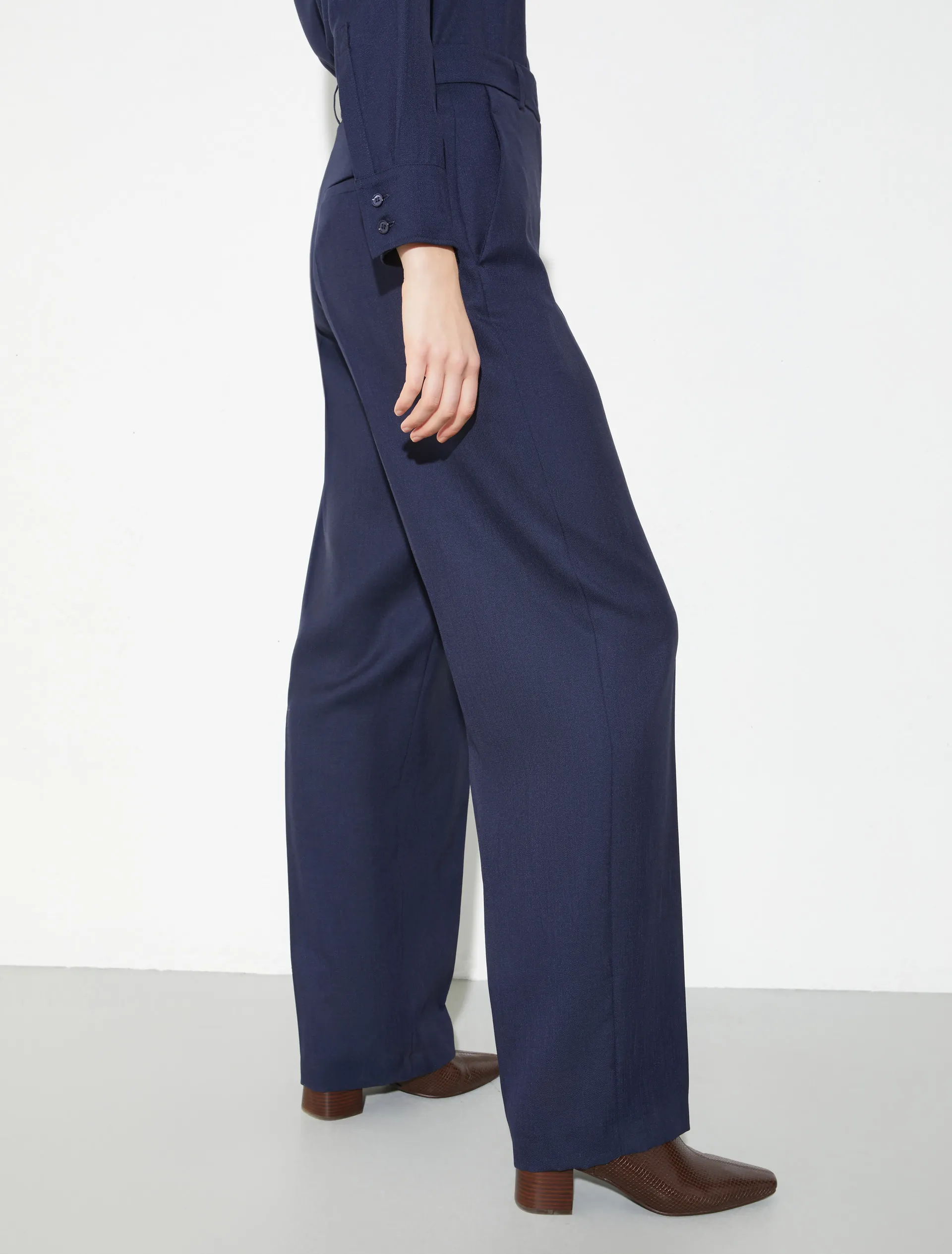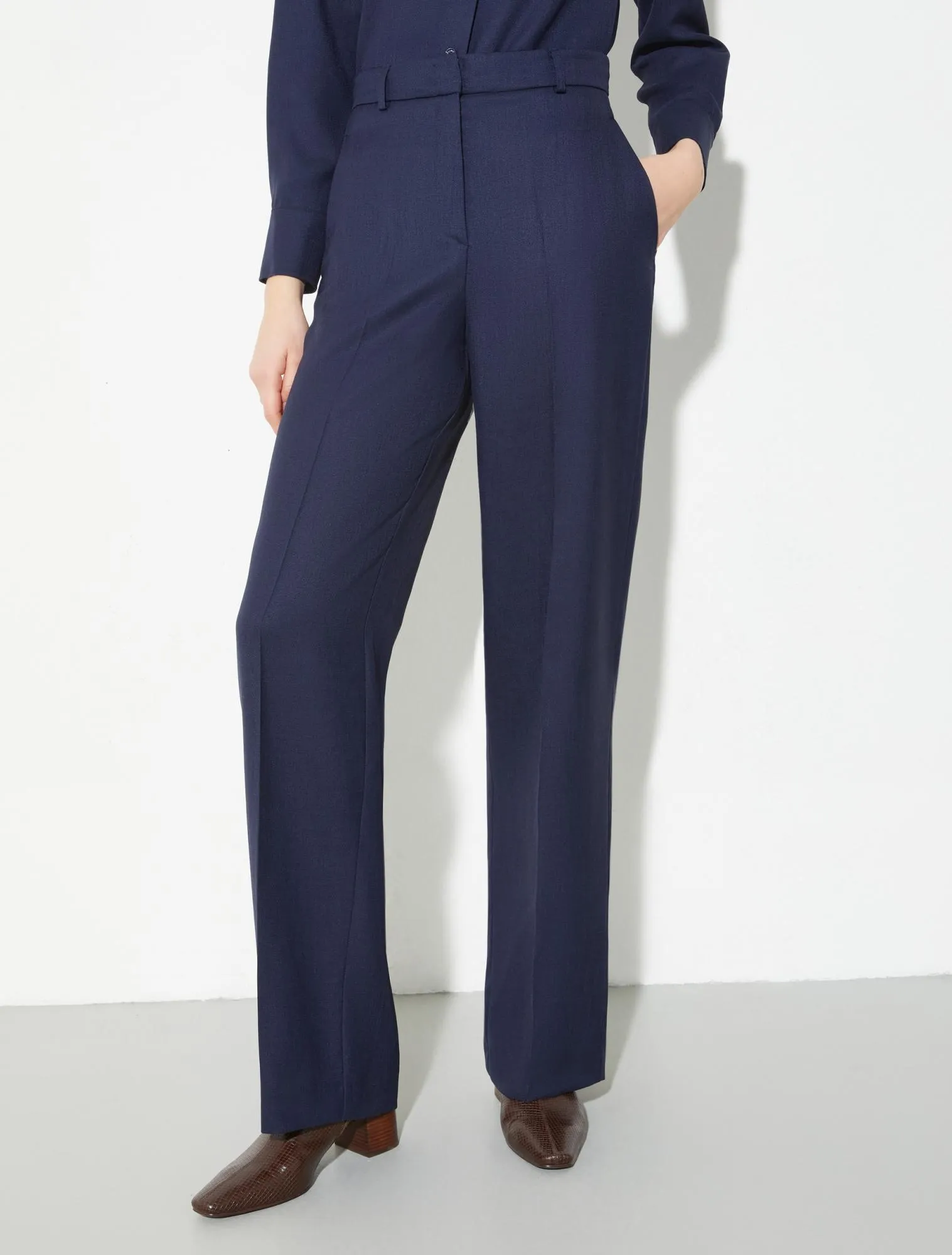 Женские брюки со складками ELIDE от MAX&Co. выполнены из лёгкой смесовой шерстяной саржи. Модель со средней посадкой на талии и шлёвками для ремня. Спереди — косые карманы, сзади — прорезные. Прямой, элегантный силуэт.