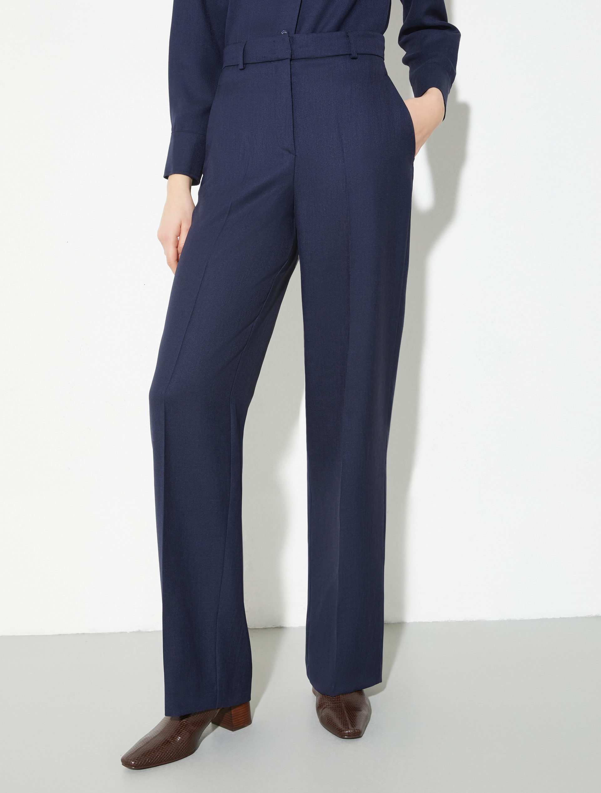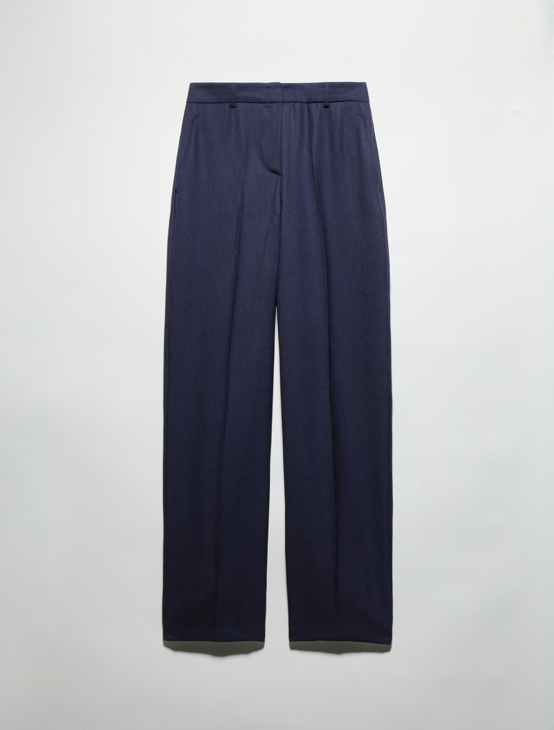 Женские брюки со складками ELIDE от MAX&Co. выполнены из лёгкой смесовой шерстяной саржи. Модель со средней посадкой на талии и шлёвками для ремня. Спереди — косые карманы, сзади — прорезные. Прямой, элегантный силуэт.