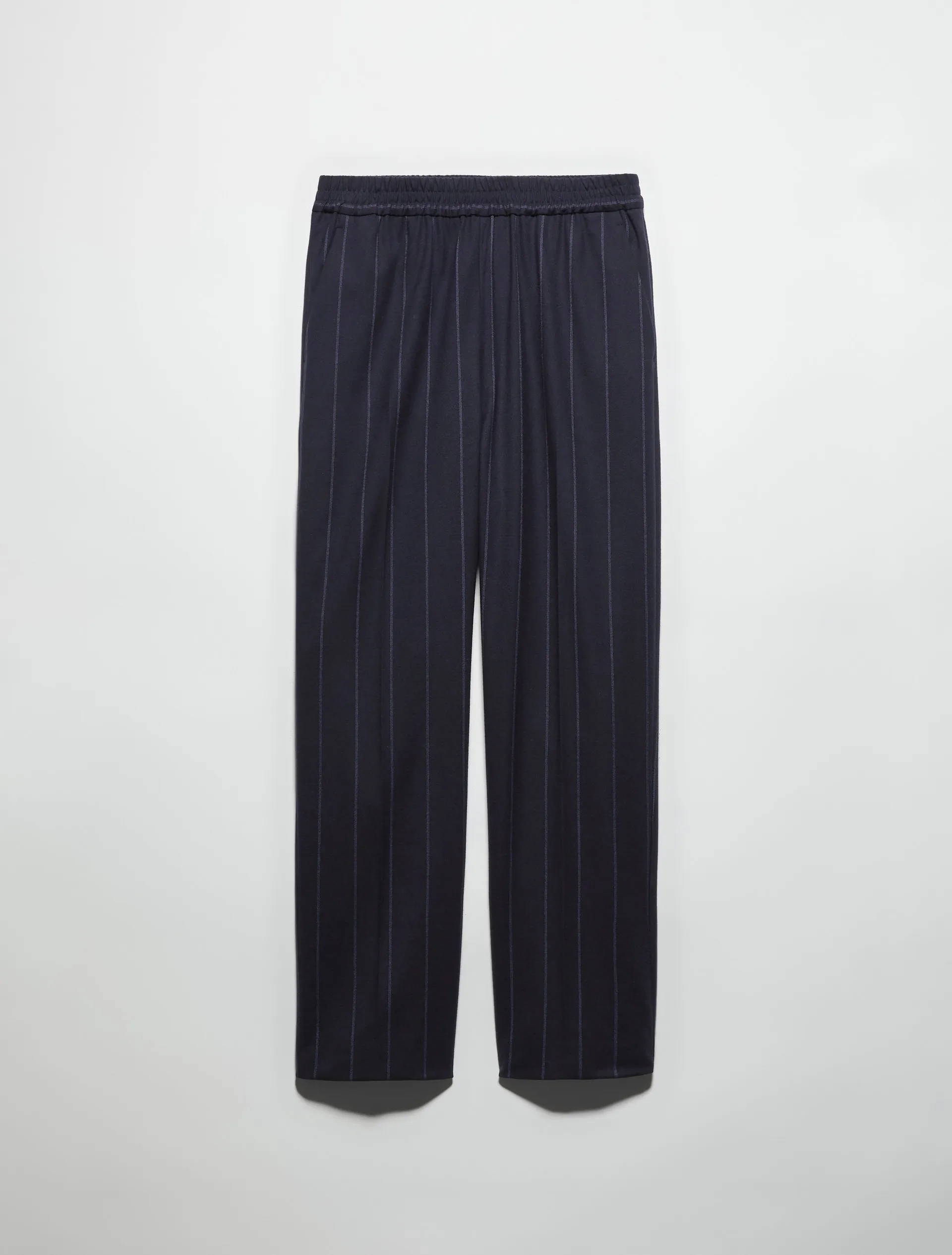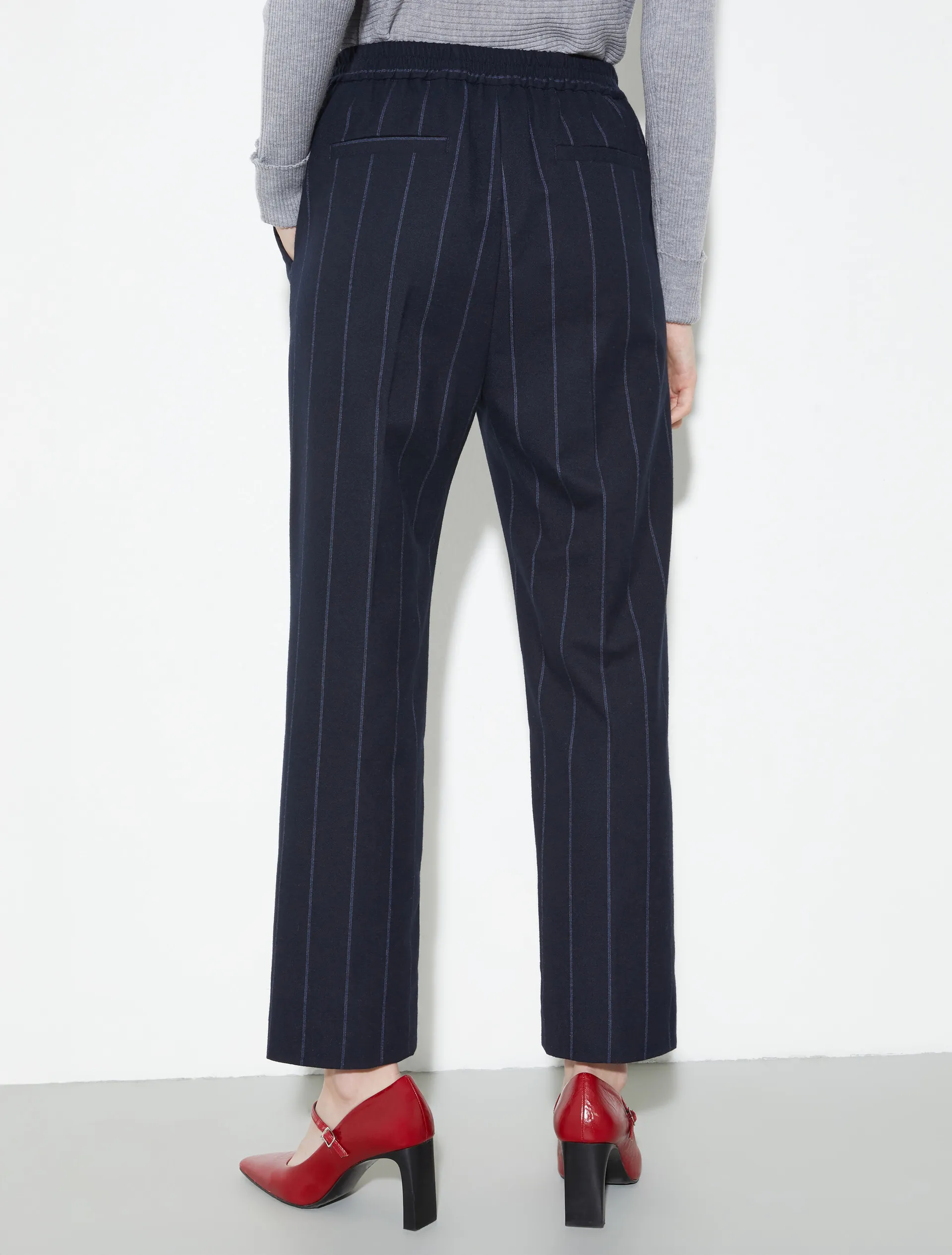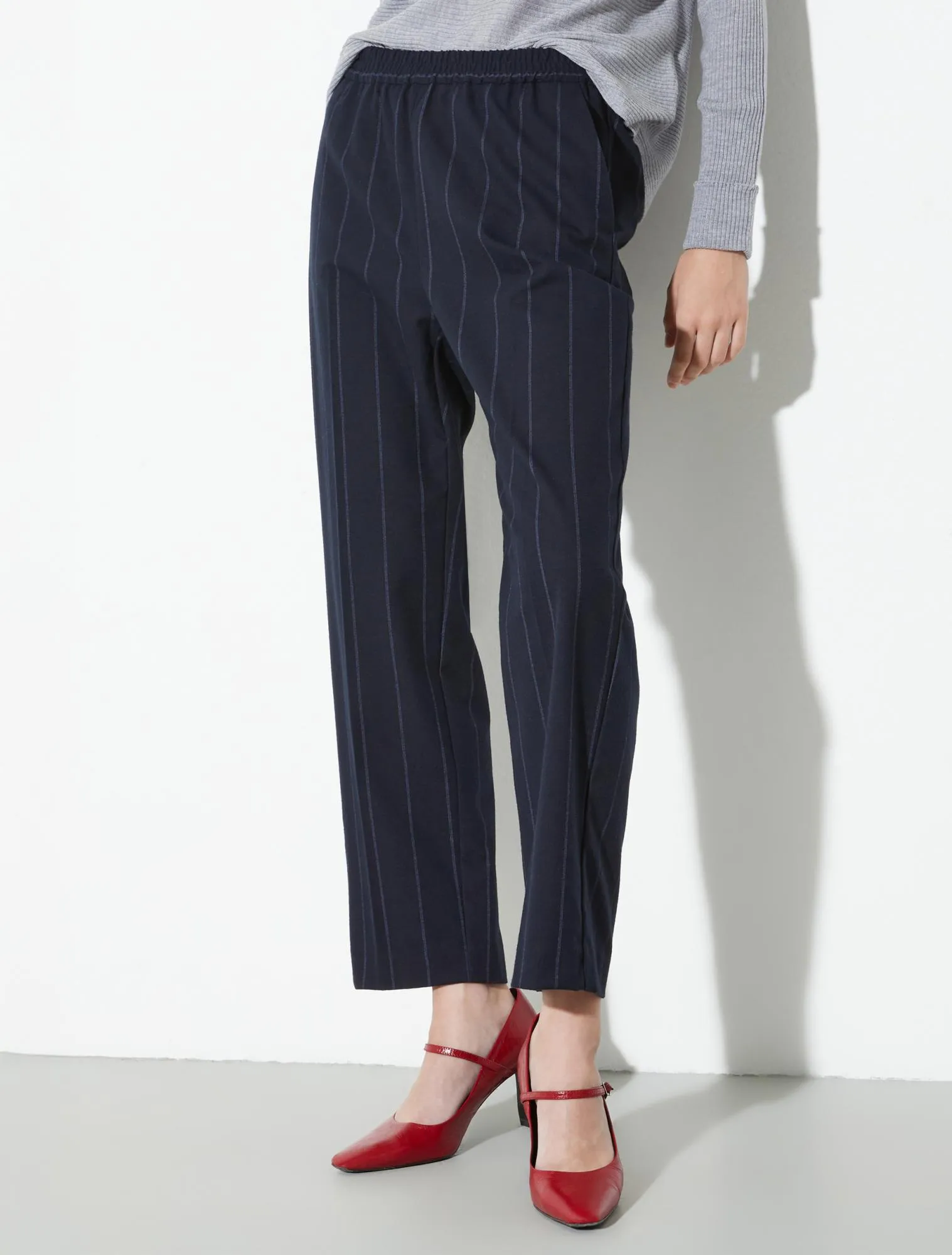 Женские брюки со складками GIUNTO от MAX&Co. выполнены из мягкой эластичной фланели в тонкую полоску. Свободный, слегка зауженный силуэт и эластичный пояс обеспечивают комфорт. Дополните комплектом с подходящим блейзером из коллекции.