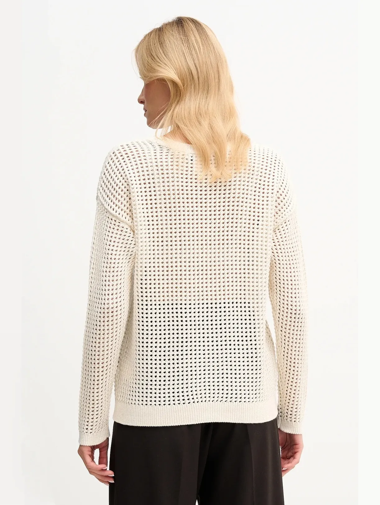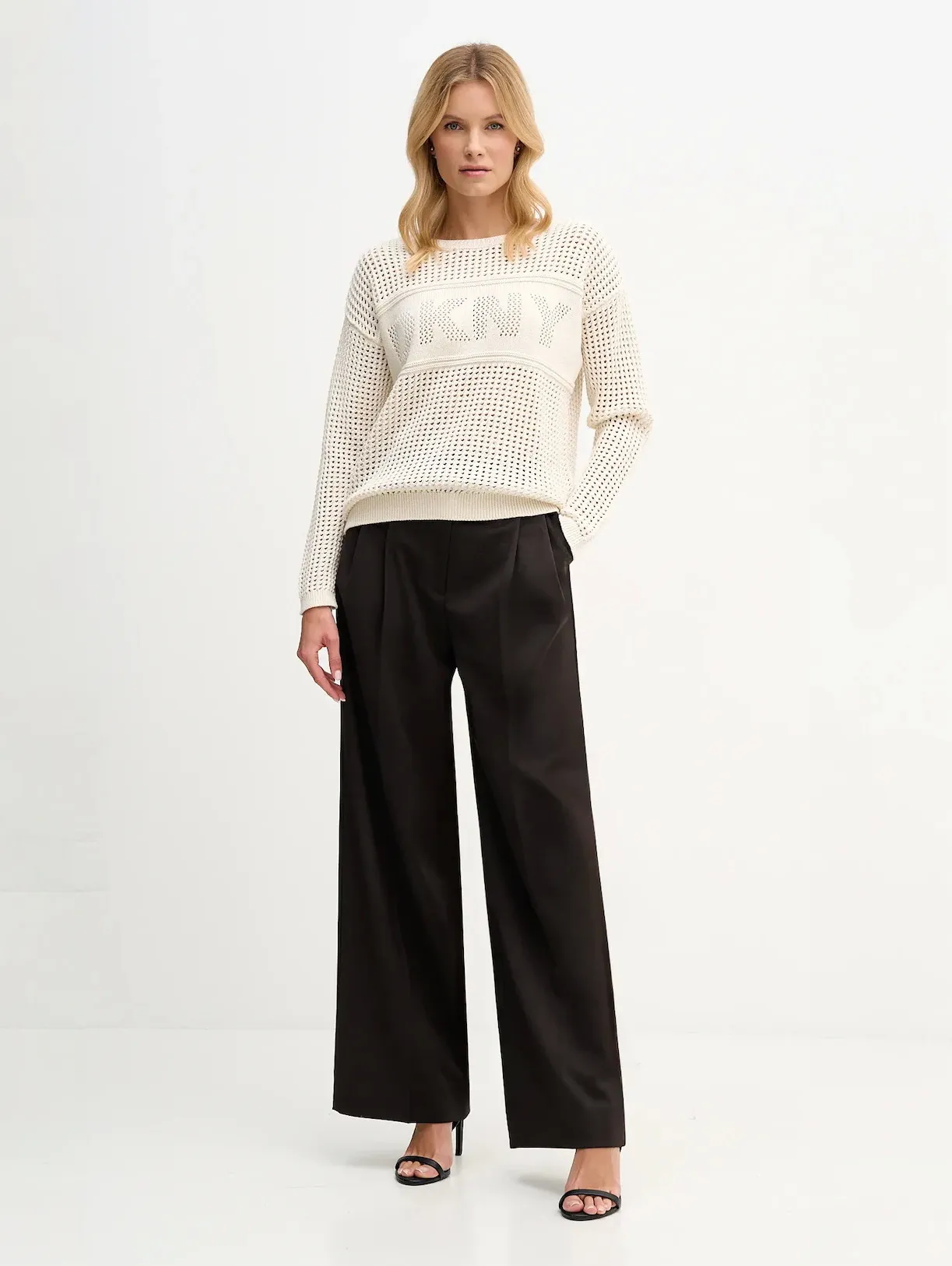 Женский ажурный джемпер — стильная находка для лёгких и эффектных образов. Свободный крой, длинные рукава, воздушная вязка и фирменный логотип делают модель особенно актуальной. Джемпер отлично сочетается с джинсами, брюками и юбками.