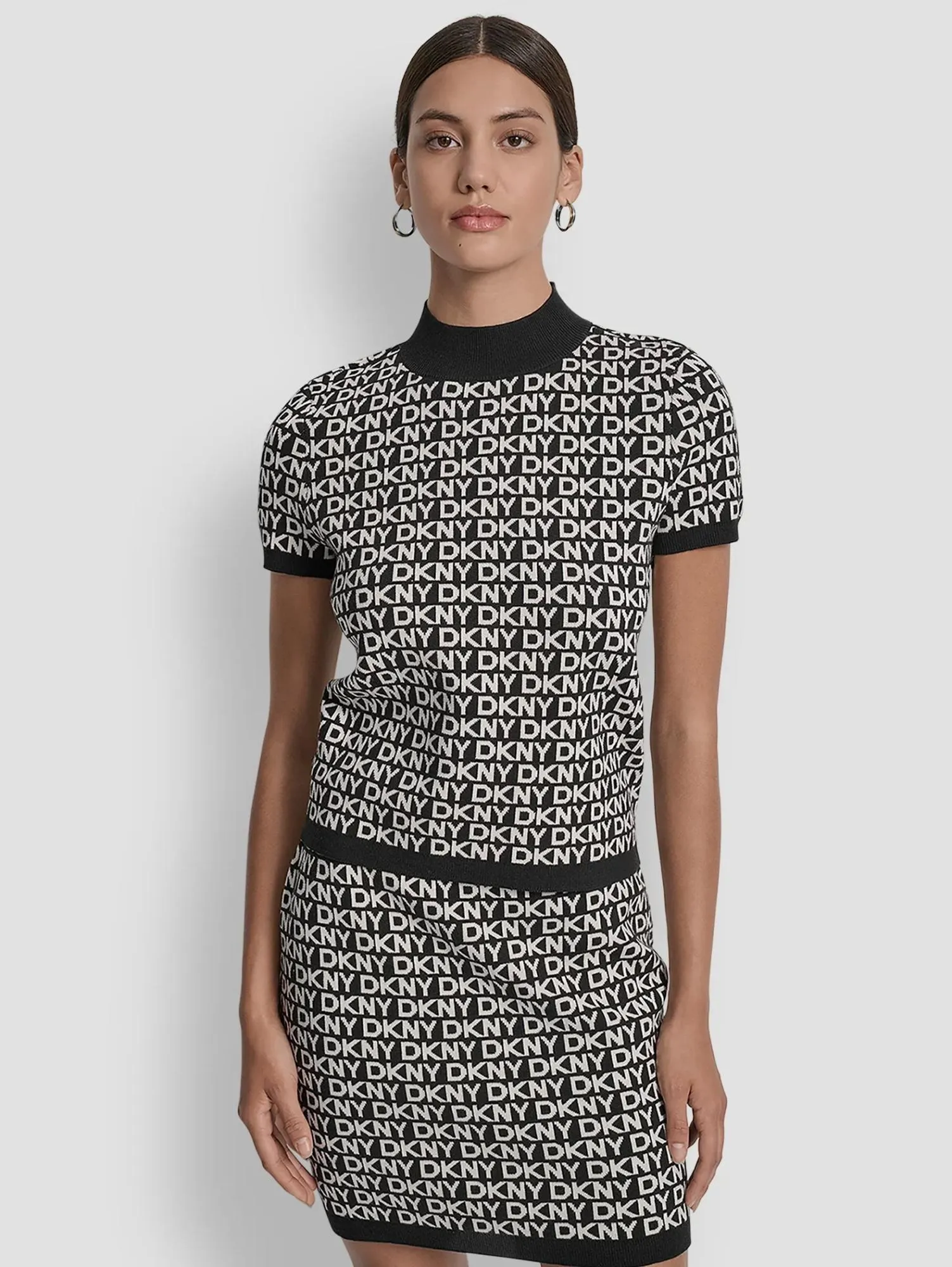 Женский топ с логопринтом DKNY с короткими рукавами и воротником-стойкой — стильная база с фирменным акцентом. Лаконичный силуэт подчеркивает элегантность, а мягкая смесь хлопка, вискозы и нейлона дарит комфорт и отличную посадку.