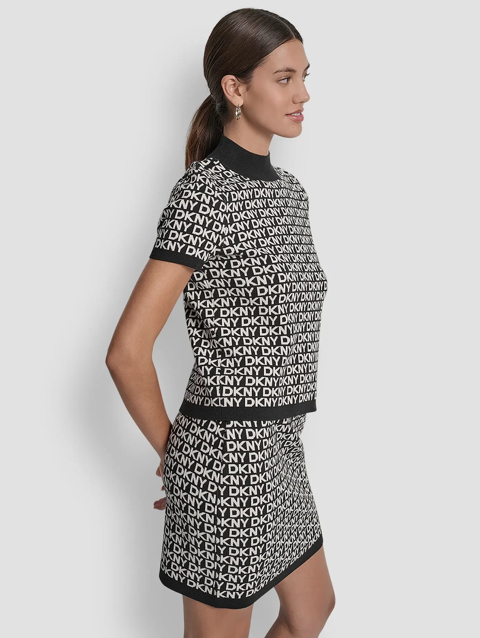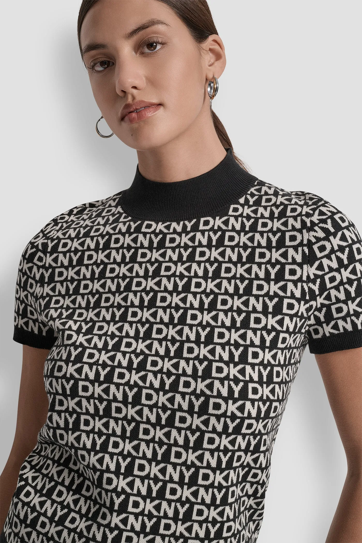 Женский топ с логопринтом DKNY с короткими рукавами и воротником-стойкой — стильная база с фирменным акцентом. Лаконичный силуэт подчеркивает элегантность, а мягкая смесь хлопка, вискозы и нейлона дарит комфорт и отличную посадку.