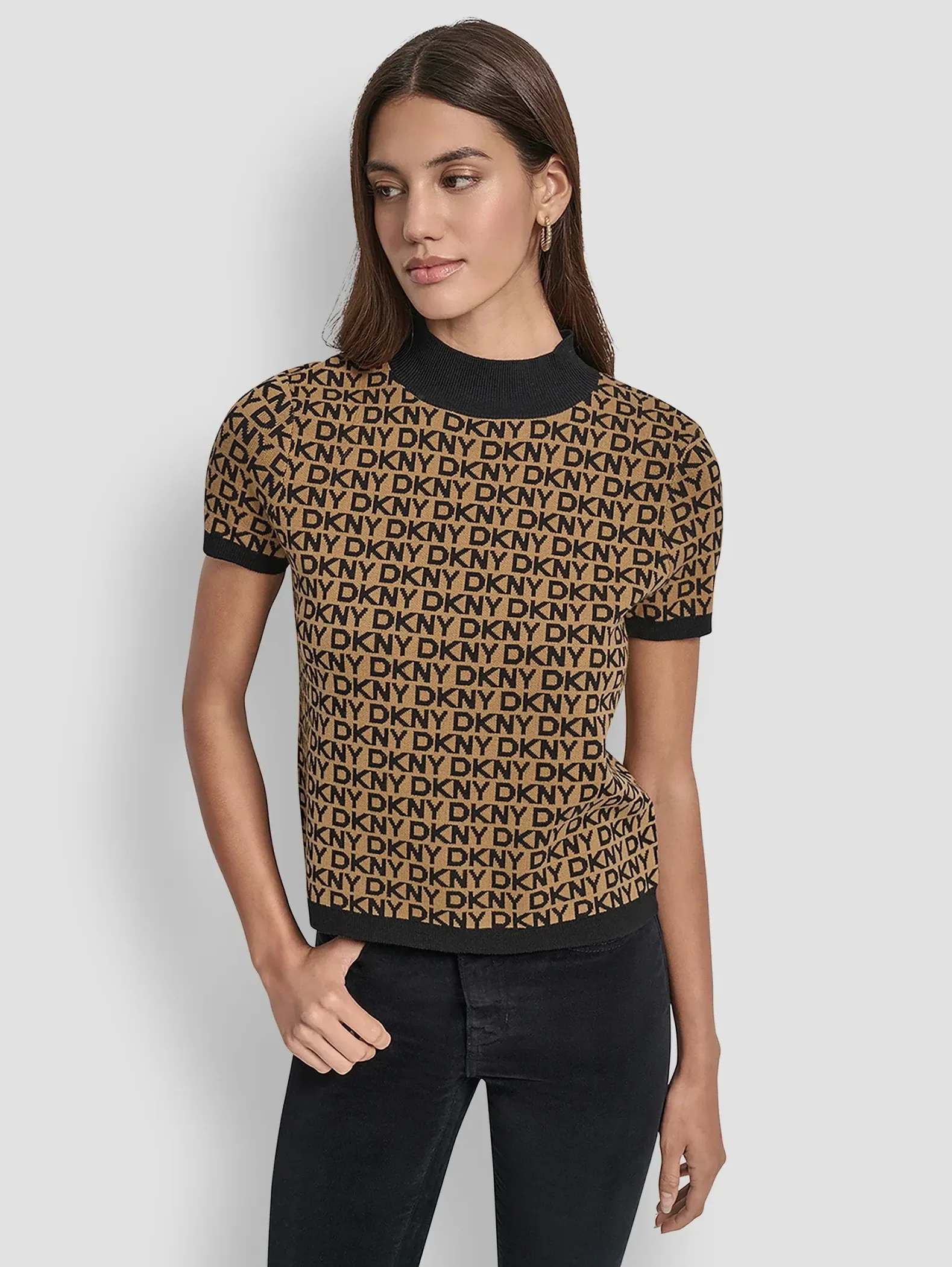 Женский топ с логопринтом DKNY с короткими рукавами и воротником-стойкой — стильная база с фирменным акцентом. Лаконичный силуэт подчеркивает элегантность, а мягкая смесь хлопка, вискозы и нейлона дарит комфорт и отличную посадку.