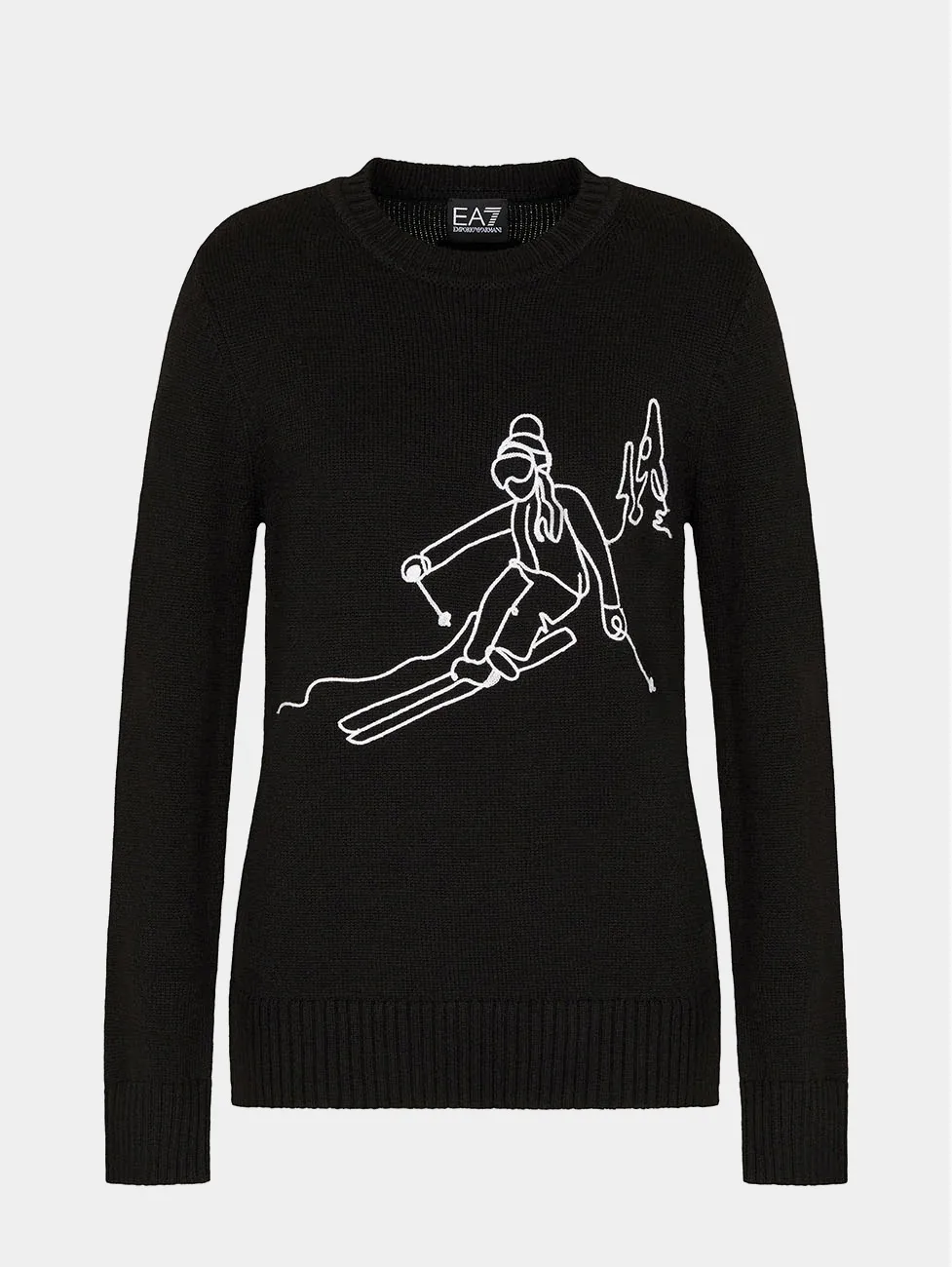 Женский пуловер EA7 Emporio Armani из мягкого трикотажа с добавлением шерсти. Модель декорирована фирменной вышивкой. Фасон regular комфортно сидит по фигуре и легко вписывается как в повседневные, так и в более элегантные образы.
