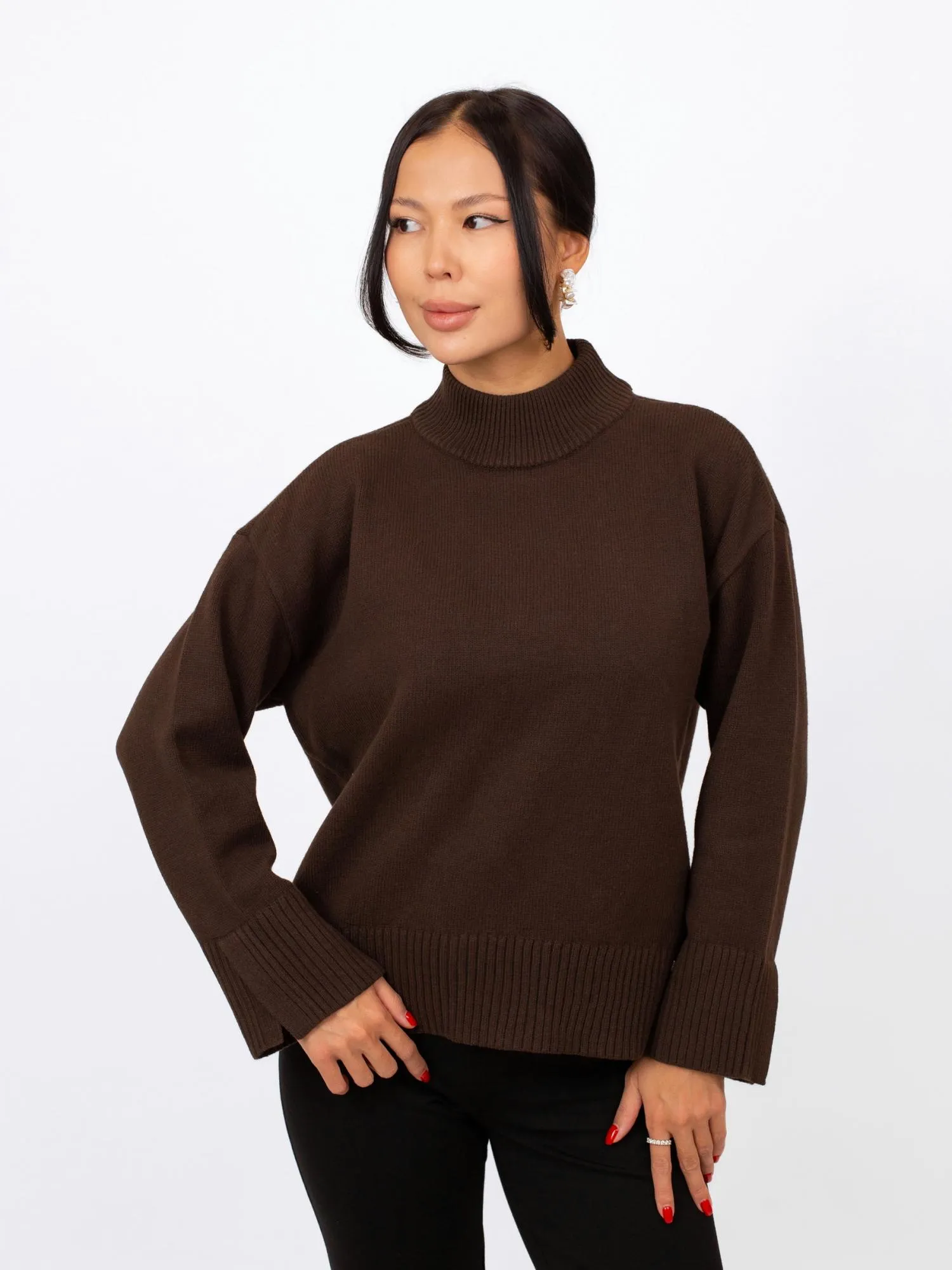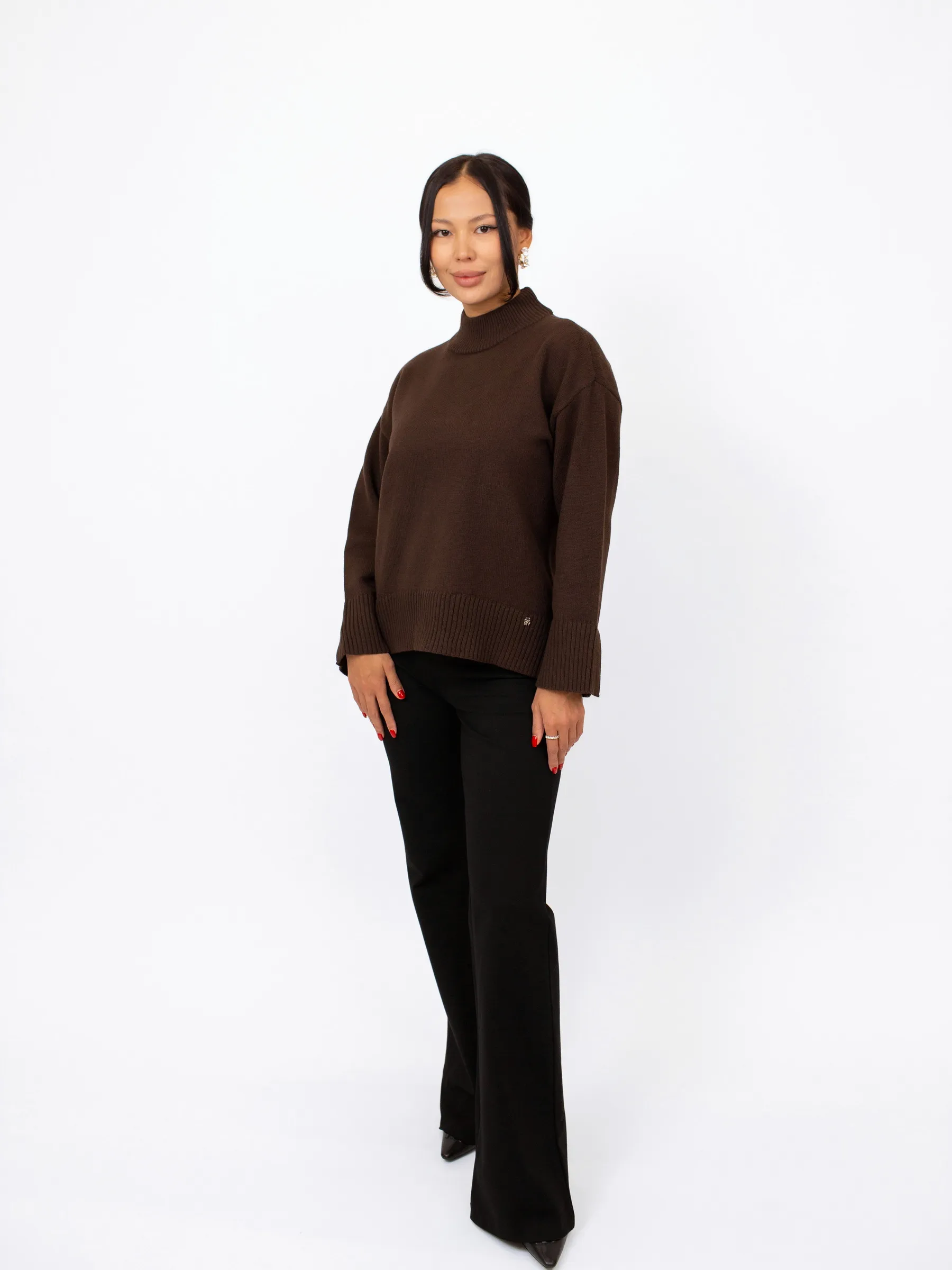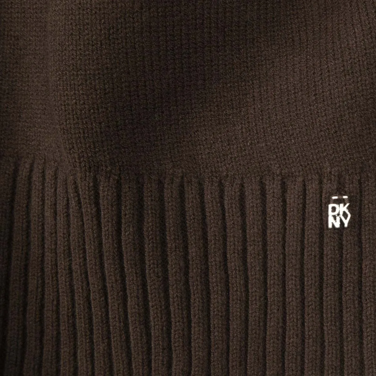 Женский свитер в темно-коричневом цвете DKNY расслабленного кроя — мягкий и комфортный, создаёт уютное ощущение в прохладную погоду. Спущенные плечи, небольшой воротник и широкие манжеты с разрезами формируют свободный и непринуждённый силуэт.