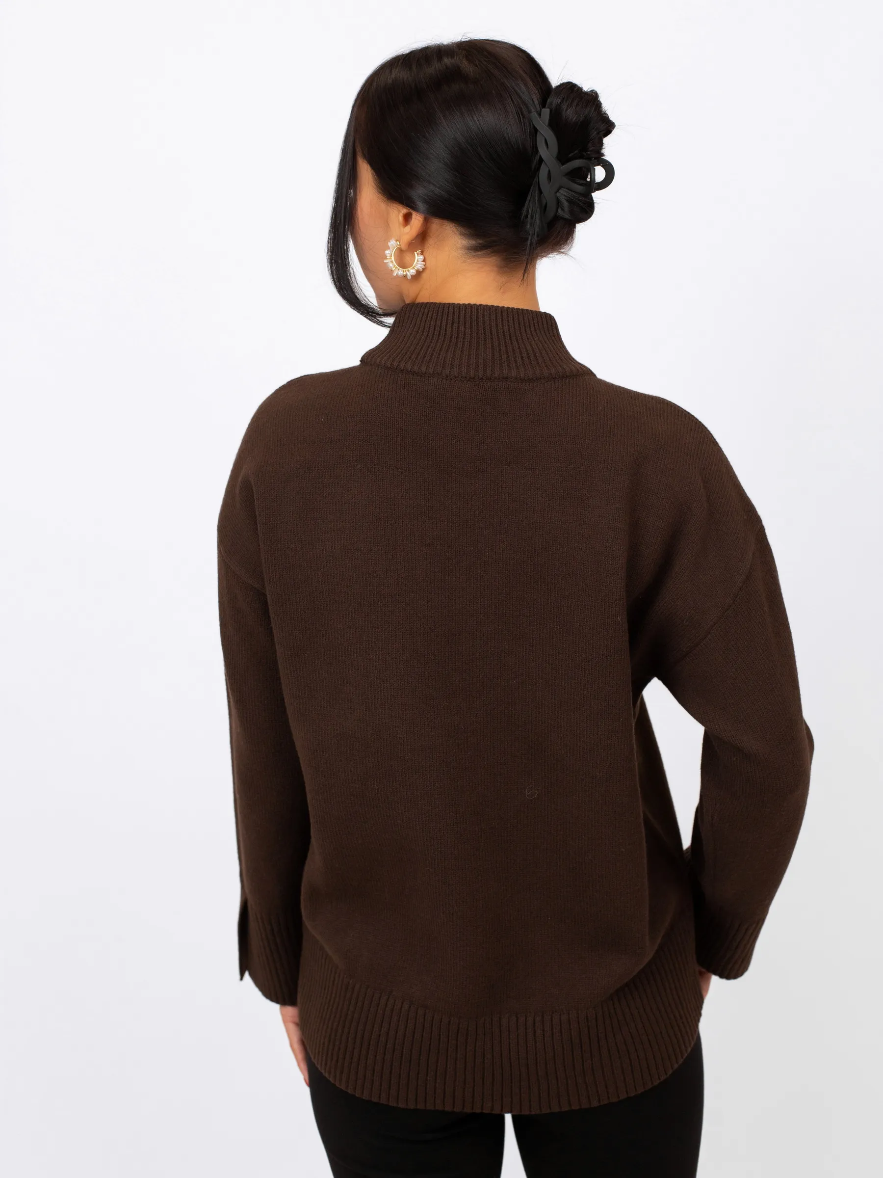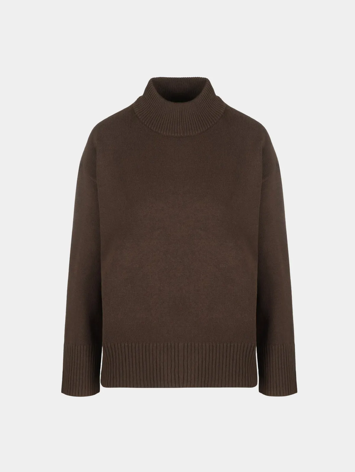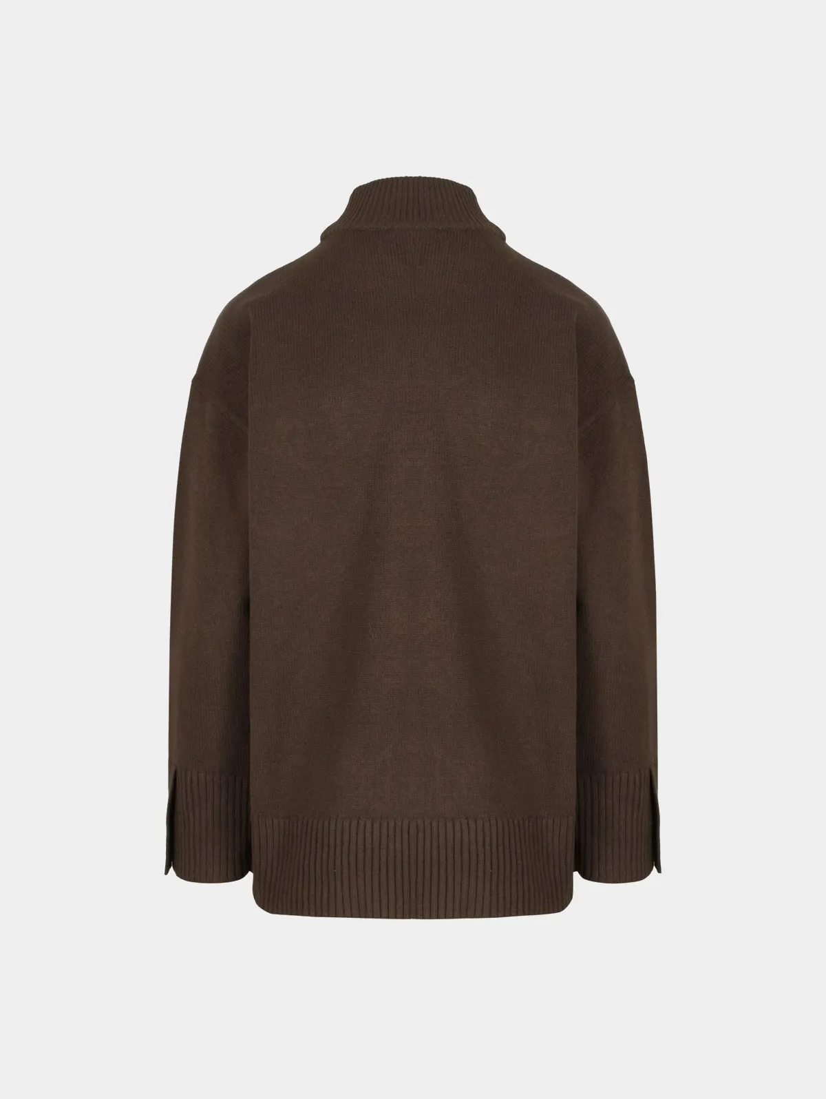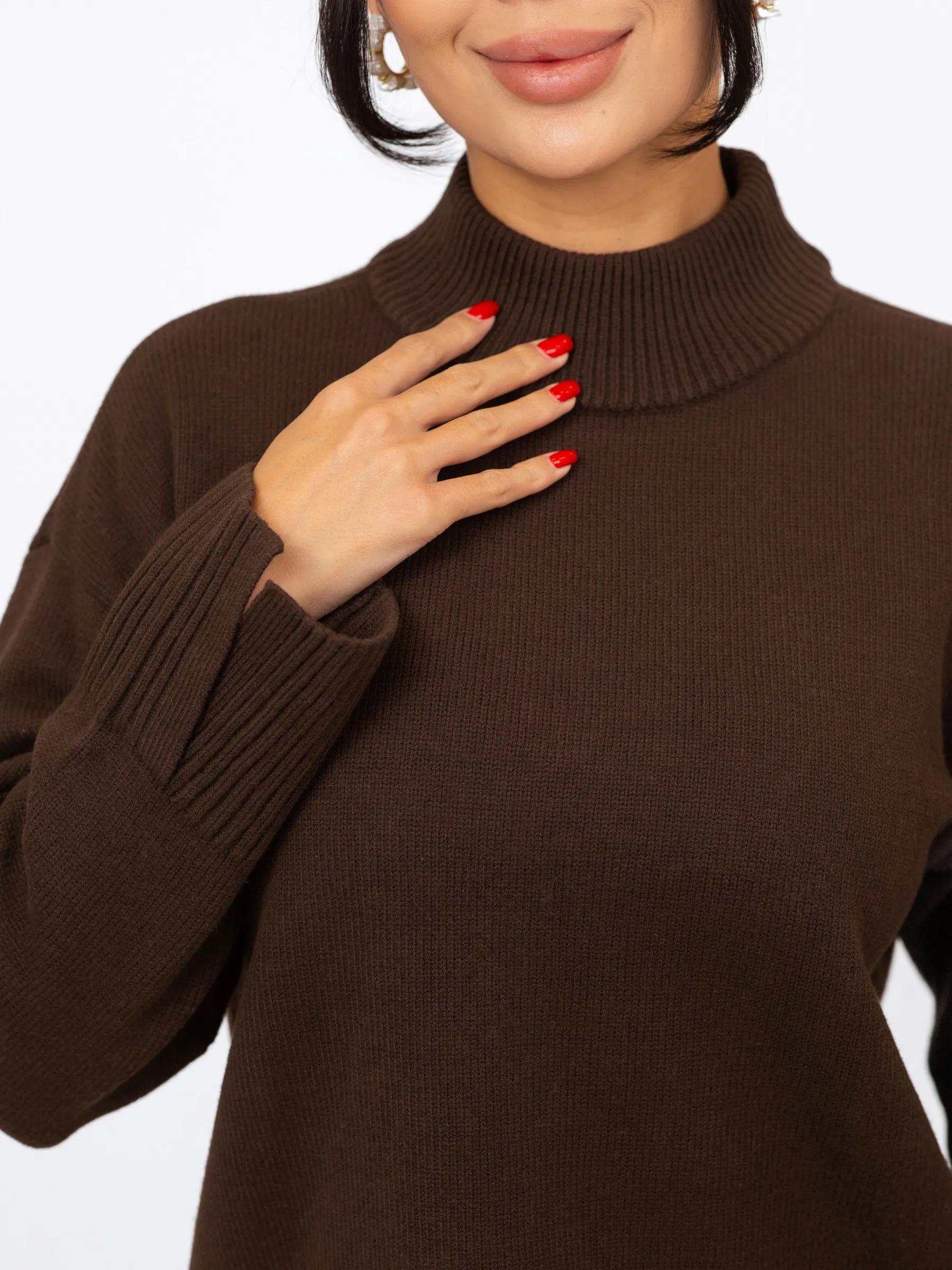 Женский свитер в темно-коричневом цвете DKNY расслабленного кроя — мягкий и комфортный, создаёт уютное ощущение в прохладную погоду. Спущенные плечи, небольшой воротник и широкие манжеты с разрезами формируют свободный и непринуждённый силуэт.