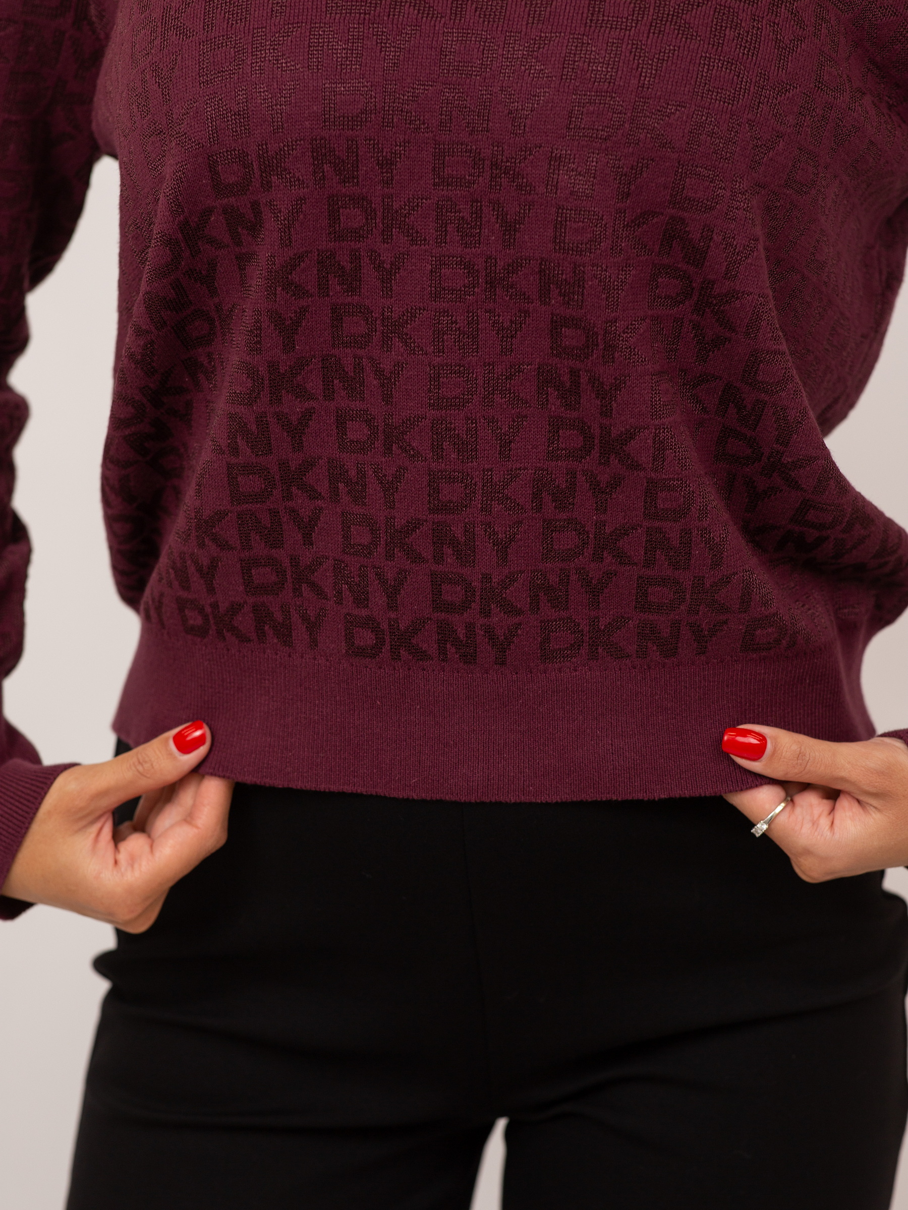 Бордовый джемпер DKNY с фирменным логотипом и разрезами на манжетах органично дополнит осенние образы. Выполненный из мягкой смеси вискозы, хлопка и полиэстера, он обеспечивает комфорт, а прямой крой придаёт модели универсальность.