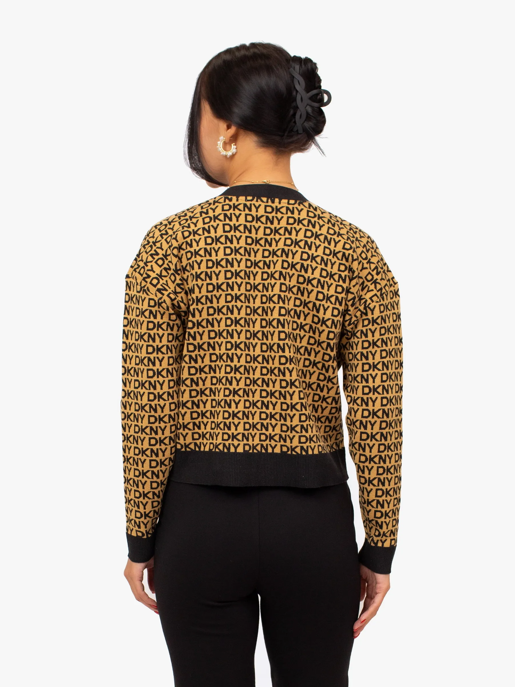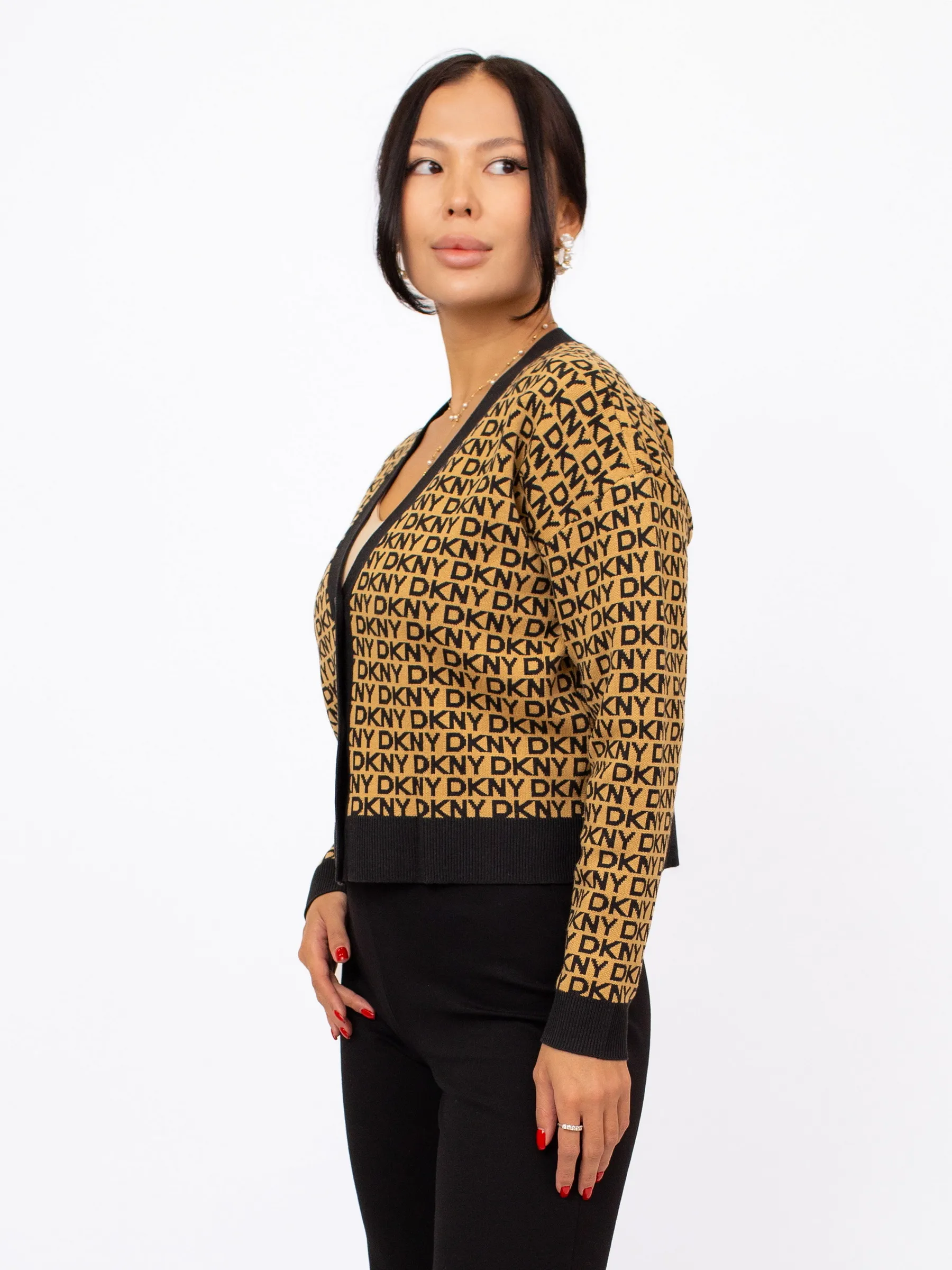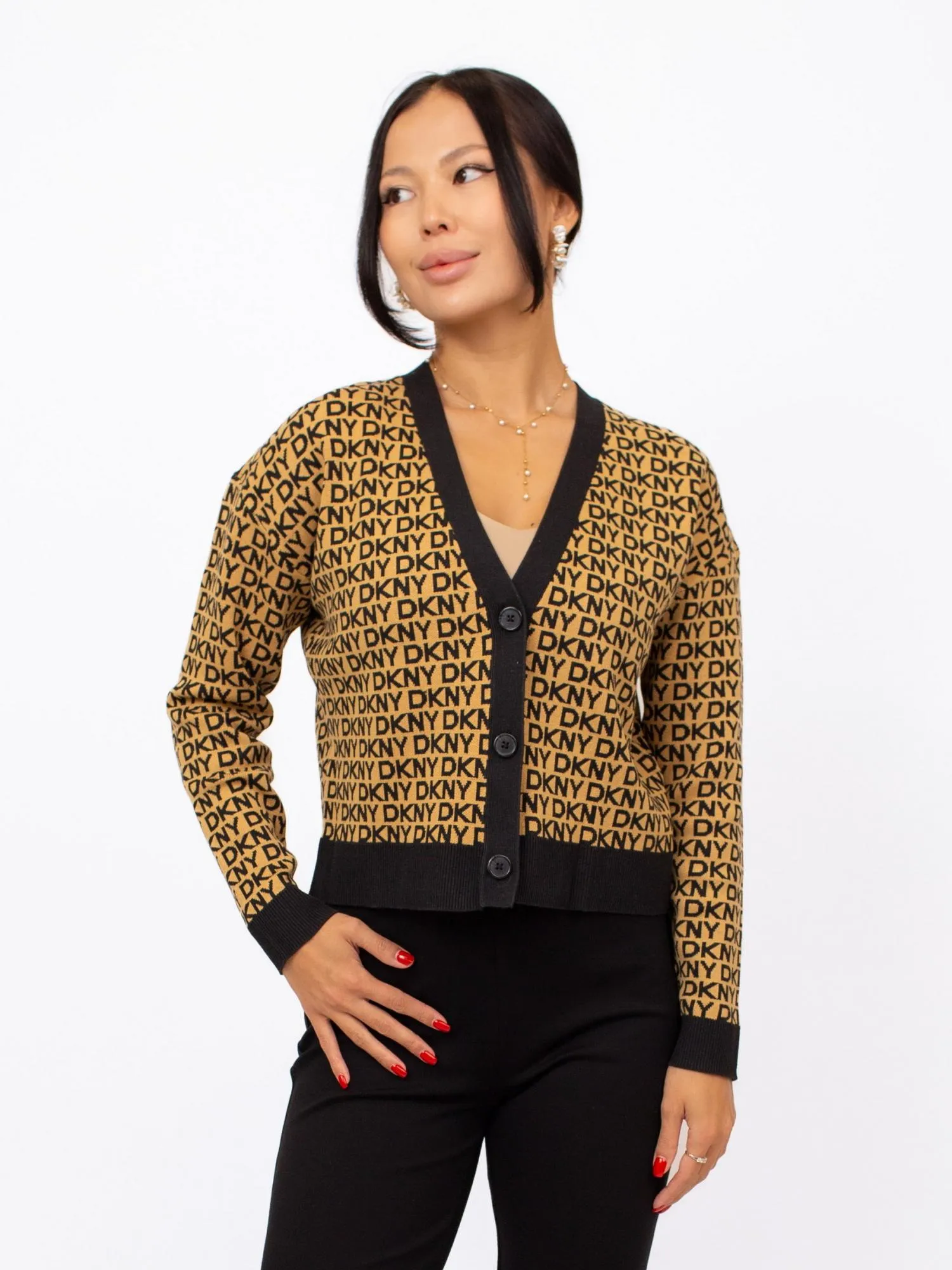 Женский укороченный кардиган DKNY с логотипом сочетает классику и современные акценты. Лаконичный V-образный вырез, застежка на пуговицы, мягкий хлопковый трикотаж и фирменный узор — всё, что нужно для стильного и комфортного осеннего образа.