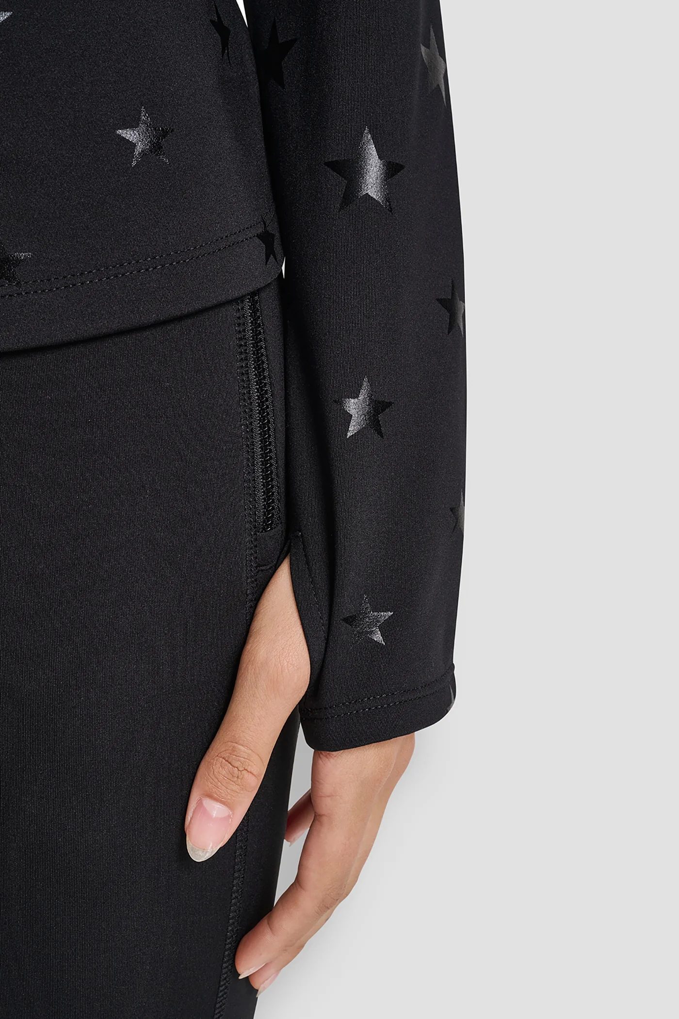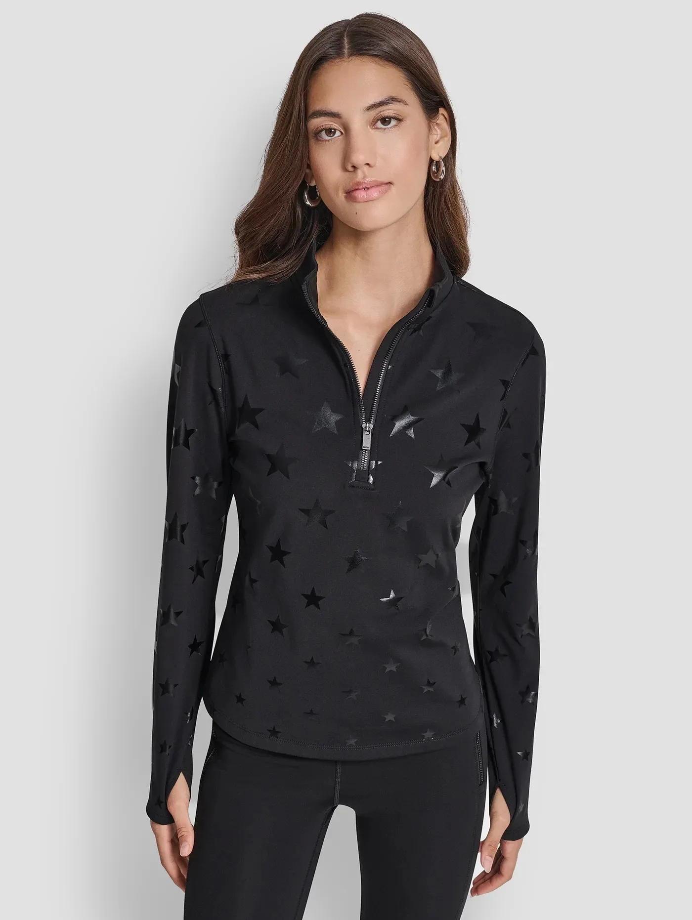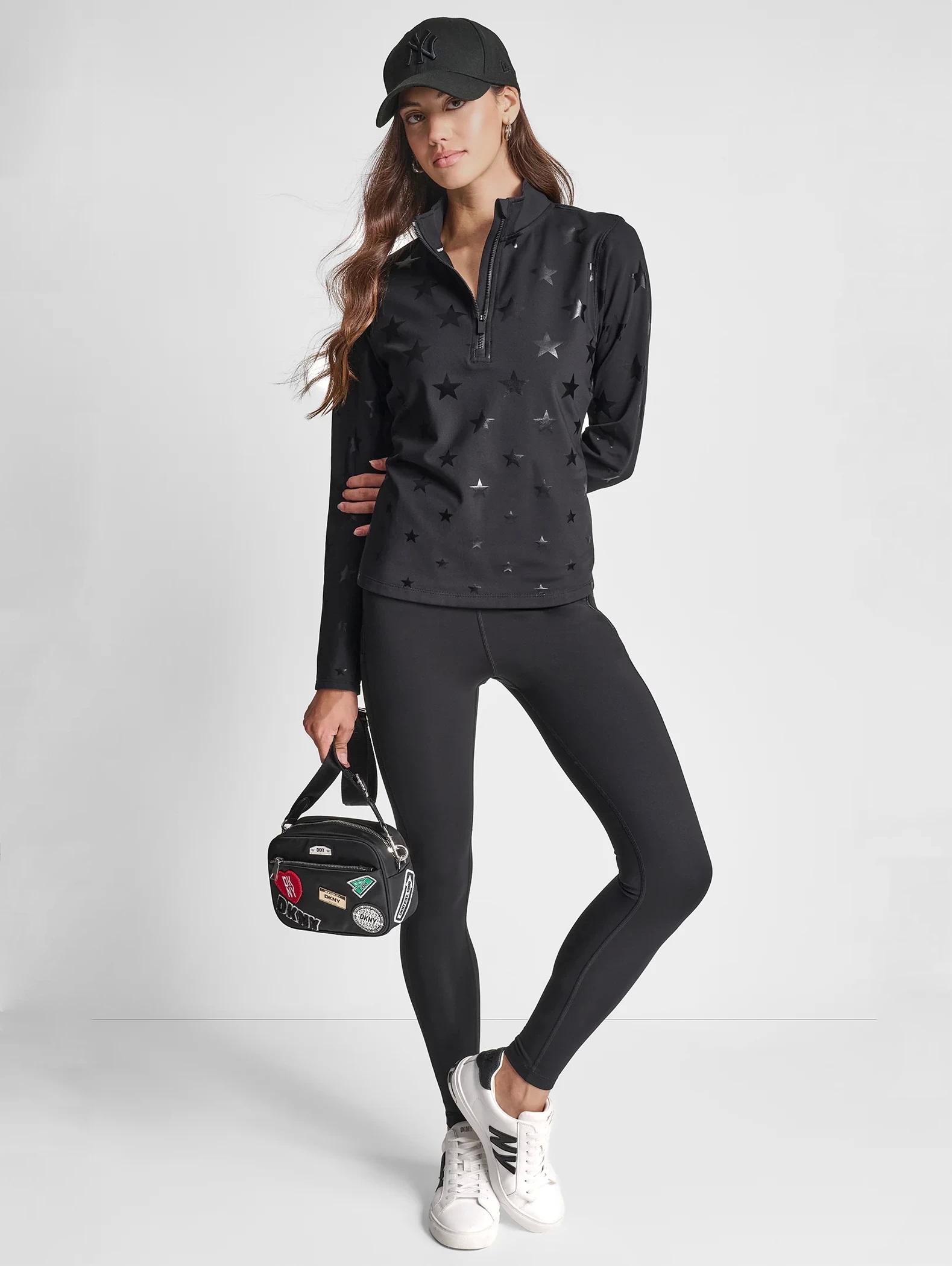 Женский лонгслив на флисе Alpine Fitness от DKNY создан для активного отдыха. Выполнен из эластичного материала, оснащён застёжкой-молнией до середины груди и воротником-стойкой. Длинные рукава с манжетами обеспечивают дополнительный комфорт и защиту от прохлады. Комфортный, функциональный и стильный, он дополнен декоративными звёздами, придающими образу динамичный акцент.