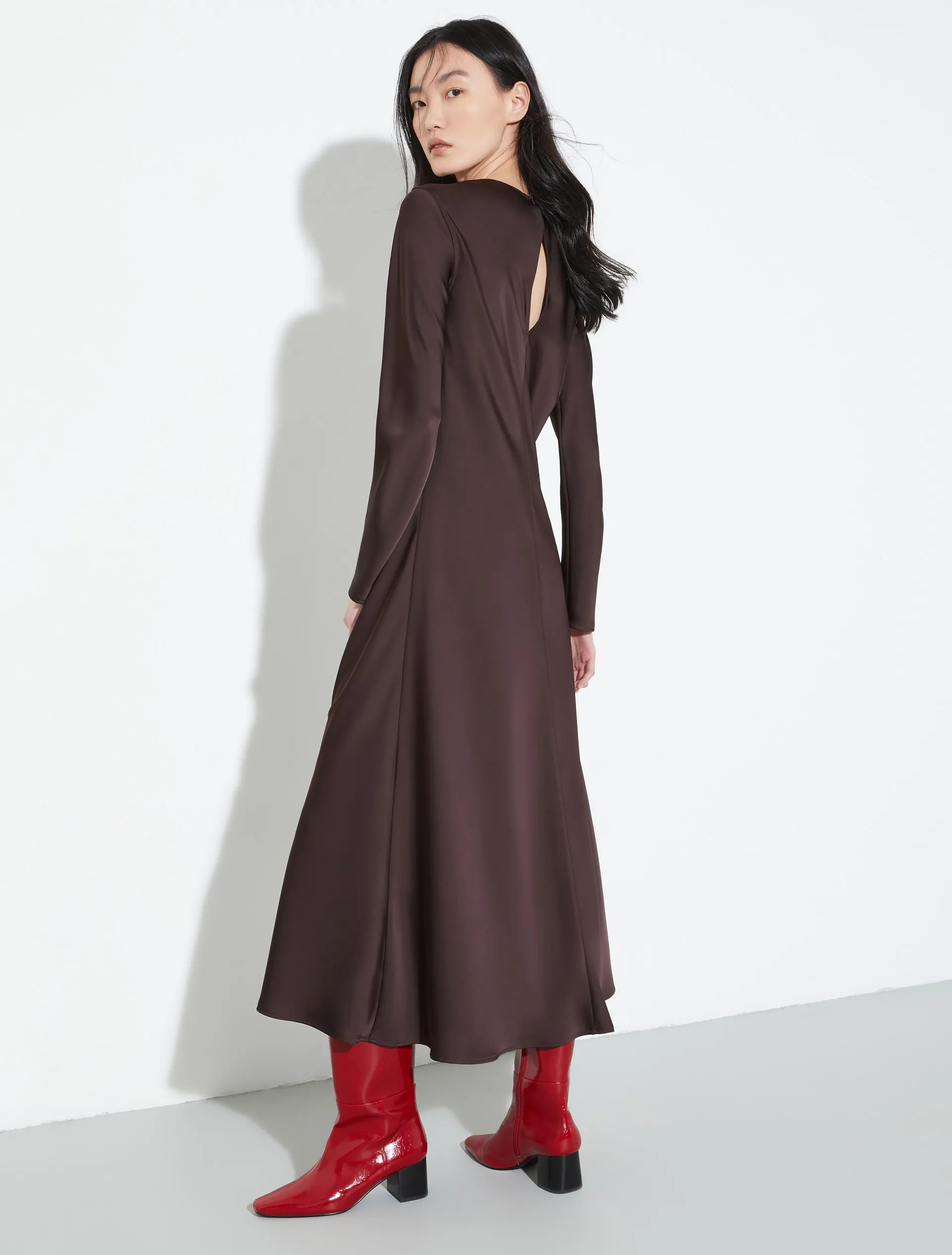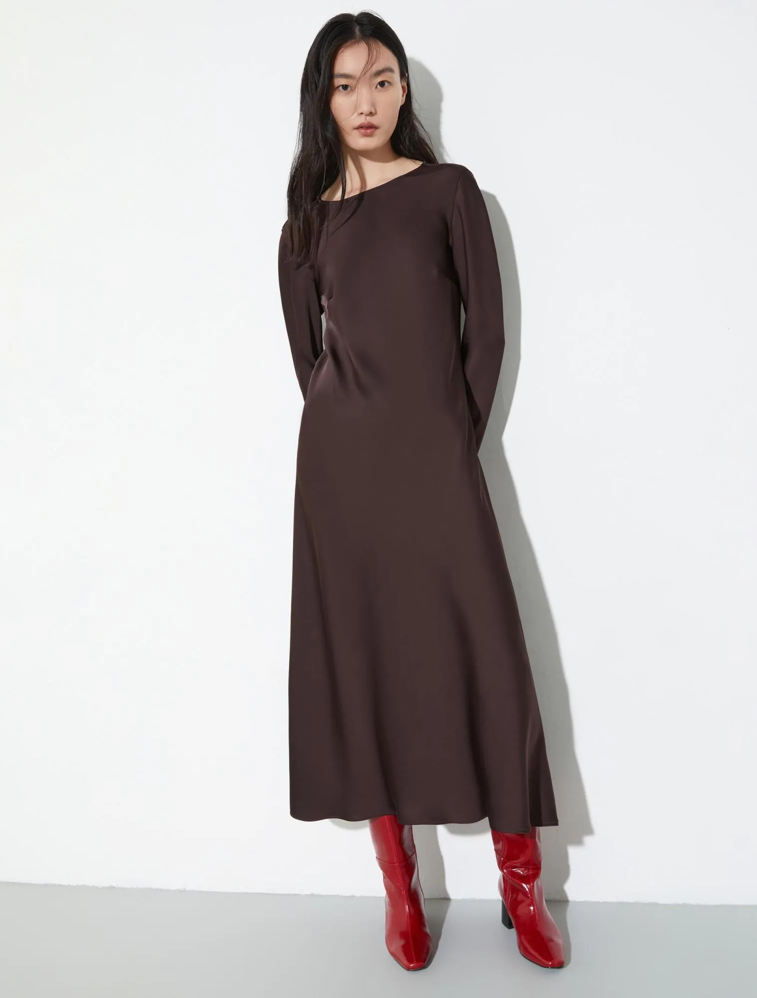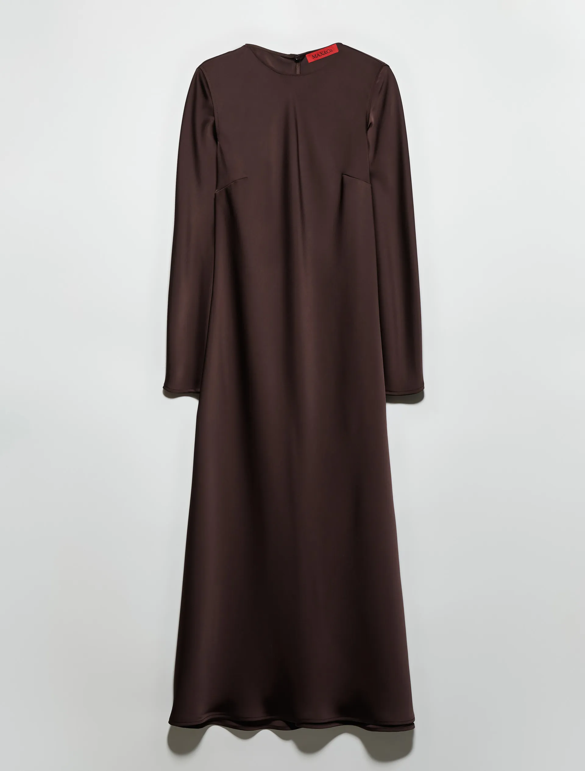 Платье GIRAFFA от MAX&Co из лёгкого атласа создаёт изящный, летящий силуэт, мягко подчёркивающий фигуру. Косой крой и сочетание облегающего лифа с расклёшенным подолом придают образу динамику и женственность. Круглый воротник и длинные рукава добавляют элегантности. Универсальная модель, которую легко адаптировать и для дня, и для вечера.