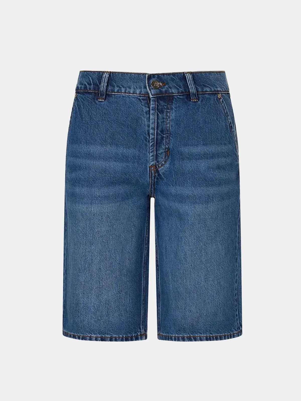 Джинсовые шорты DKNY синего цвета с классической посадкой. Универсальная модель из плотного денима, которая легко впишется в повседневный гардероб.