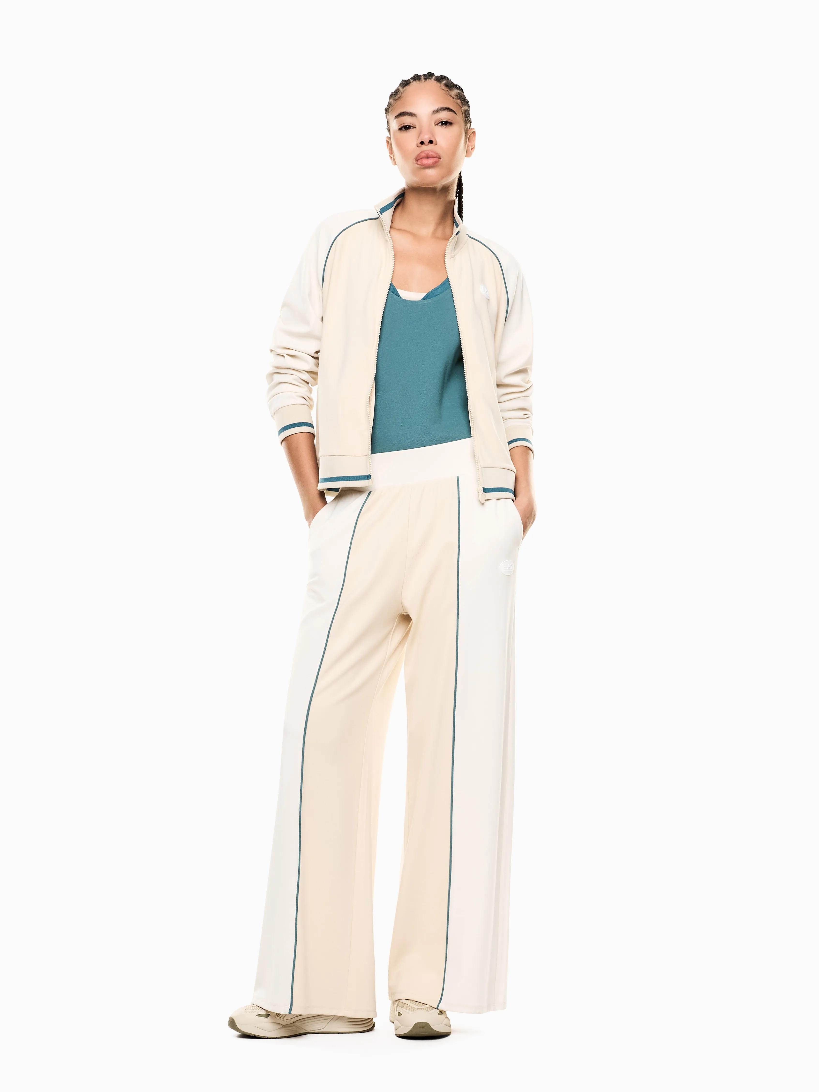 Женские спортивные брюки из эластичного материала сочетают комфорт и современный стиль. Модель с широкими штанинами обеспечивает свободу движений и удобную посадку. Контрастная отделка добавляет аккуратный акцент, делая брюки универсальным вариантом для тренировок, прогулок и активного отдыха.