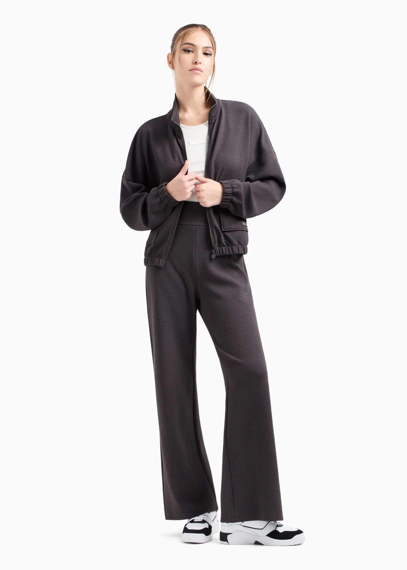Женские спортивные брюки темно-серого цвета от EA7 — удобная и стильная модель для спорта и повседневной носки. Широкий крой и эластичный смесовый хлопок обеспечивают комфорт и свободу движений, создавая расслабленный и современный образ.