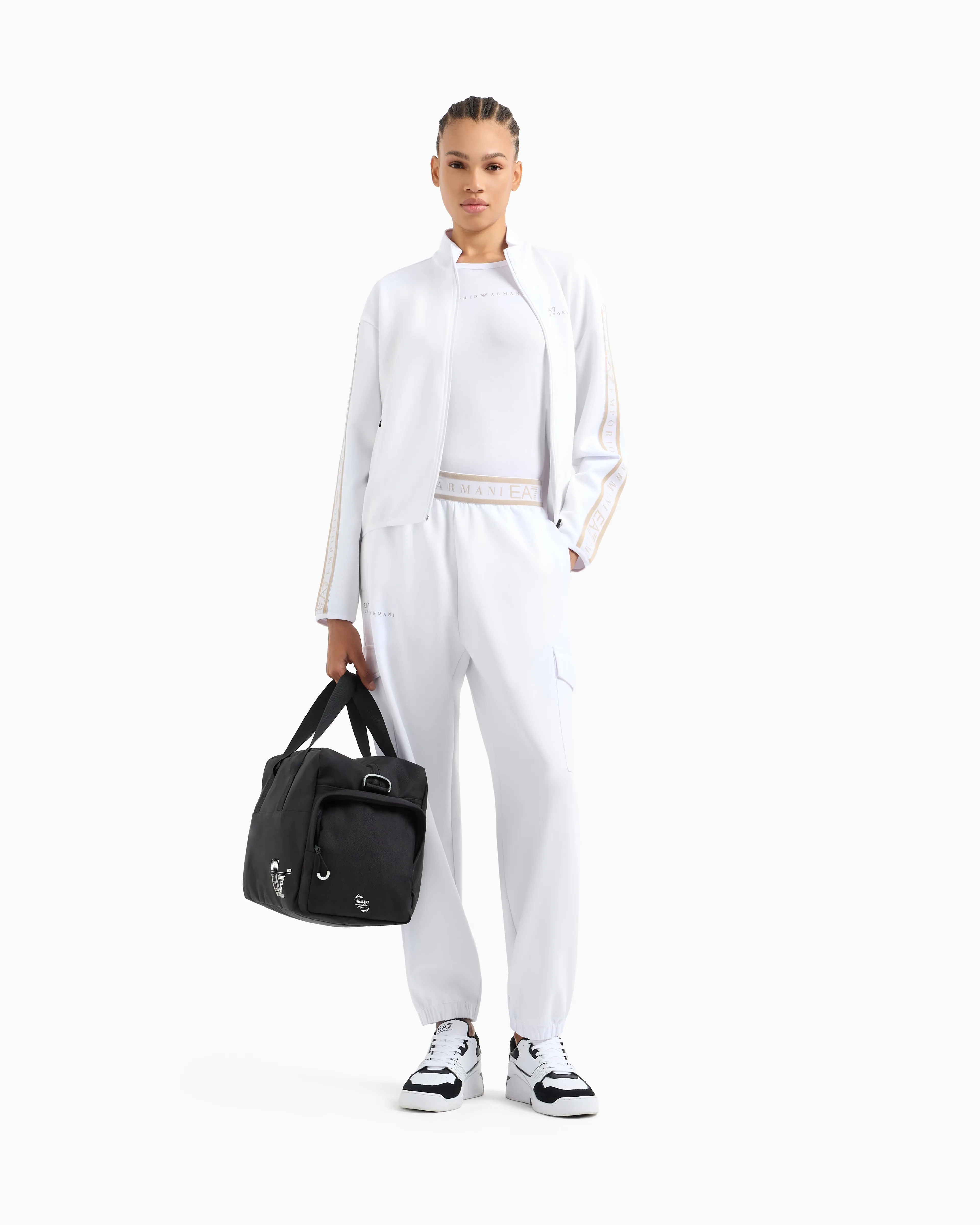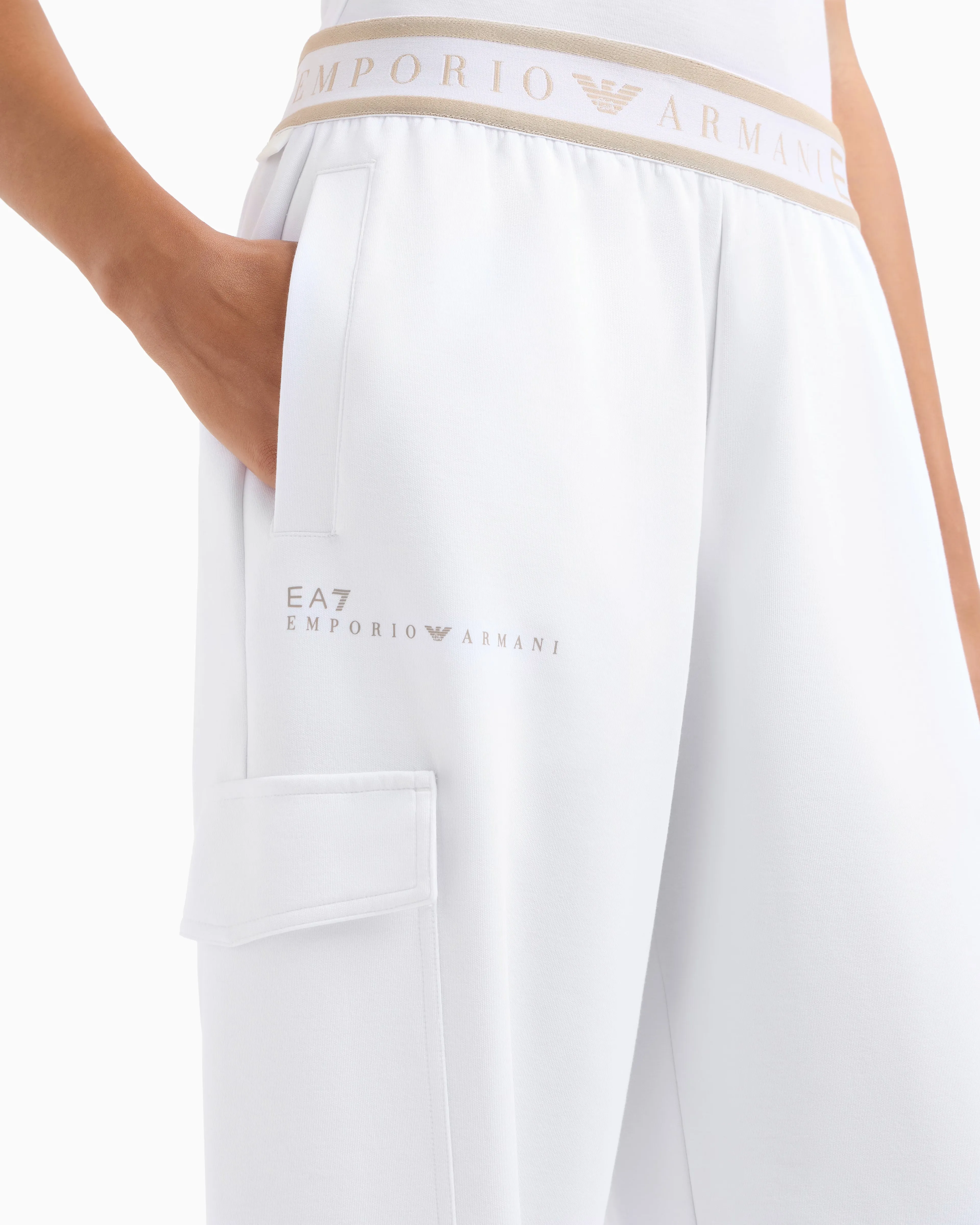 Женские спортивные брюки-карго от EA7 Emporio Armani выполнены из натуральной технической ткани VENTUS7 белого цвета. Модель обеспечивает отличную терморегуляцию во время тренировок в зале и на свежем воздухе. Мягкие и комфортные — идеальный выбор для спорта и активного отдыха.