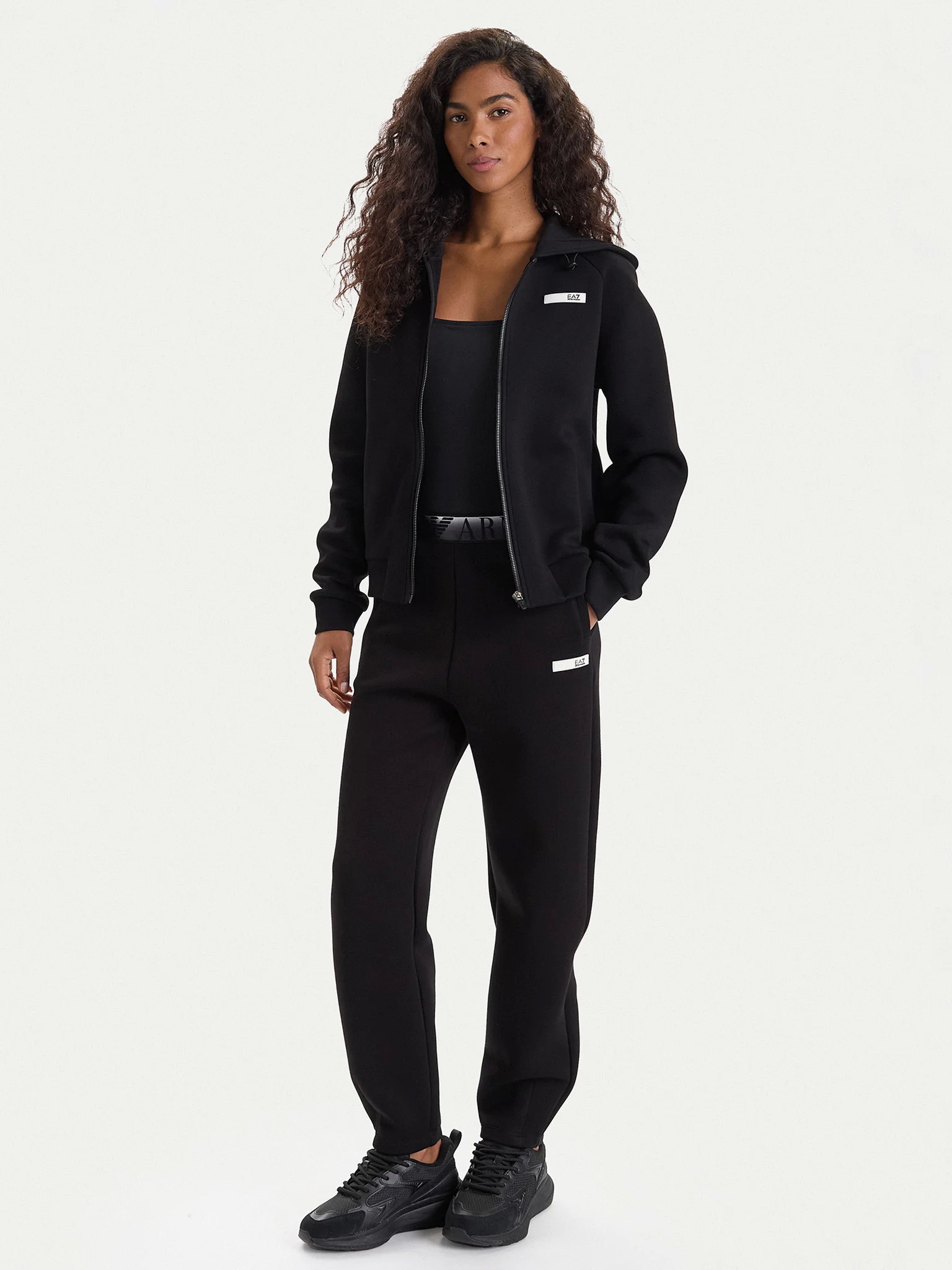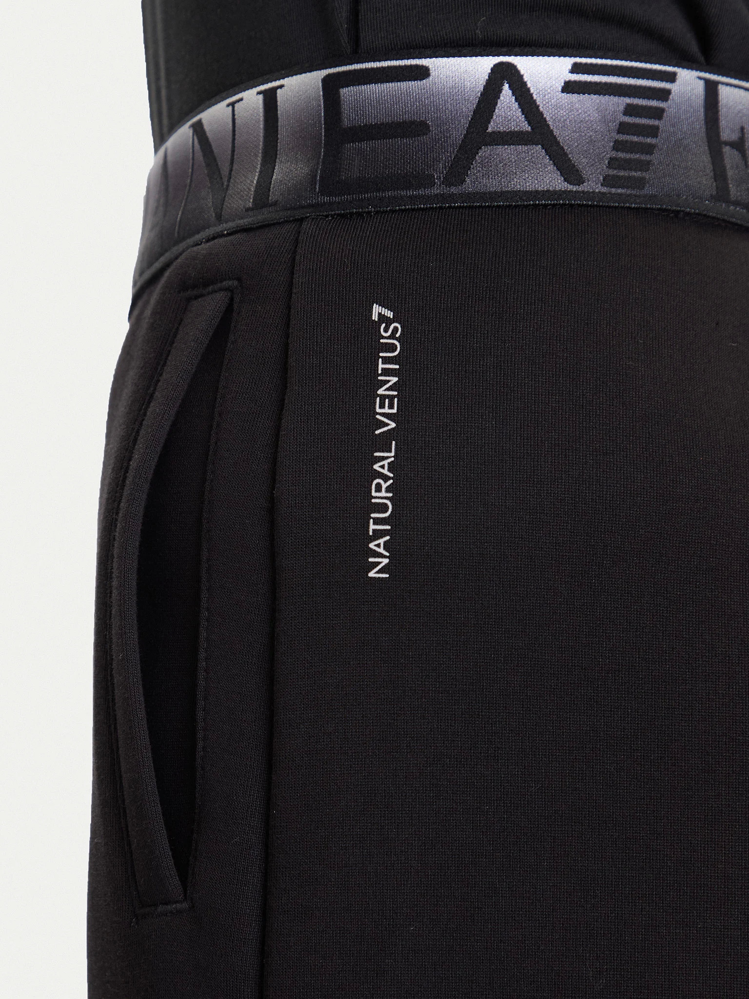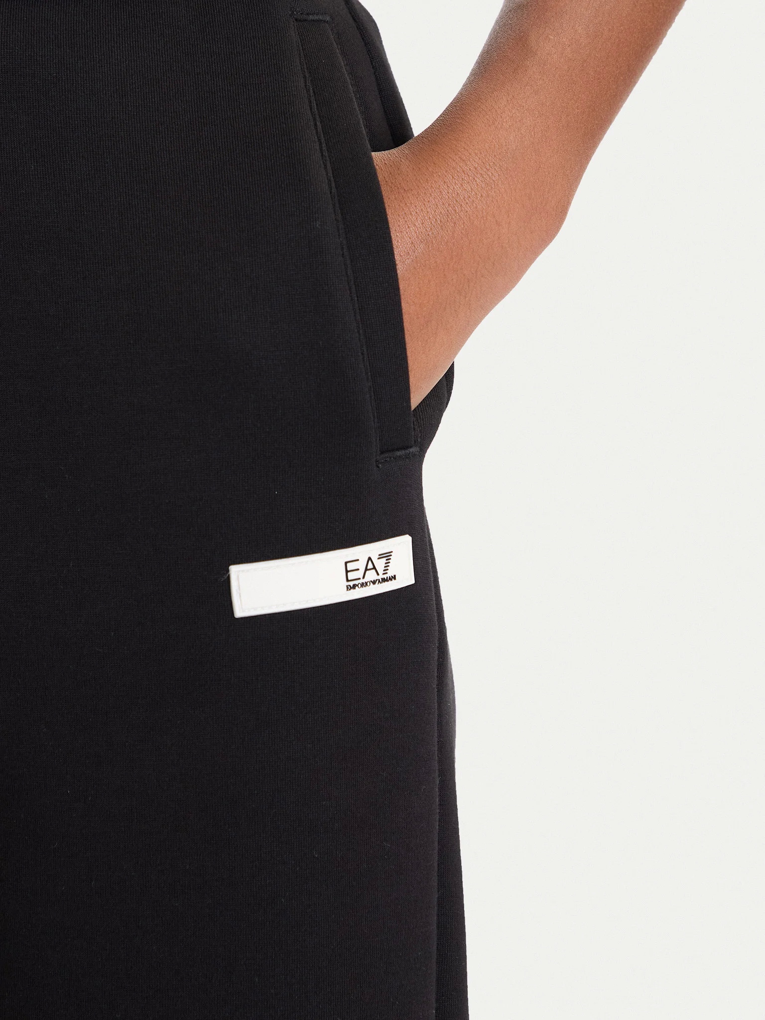 Женские спортивные брюки EA7 свободного кроя с манжетами на резинке сочетают динамику стиля и комфорт. Выполнены из инновационного материала Natural VENTUS7 — сочетания натуральных и синтетических волокон, регулирующих температуру тела и отводящих влагу. Модель с боковыми карманами и фирменным эластичным поясом.