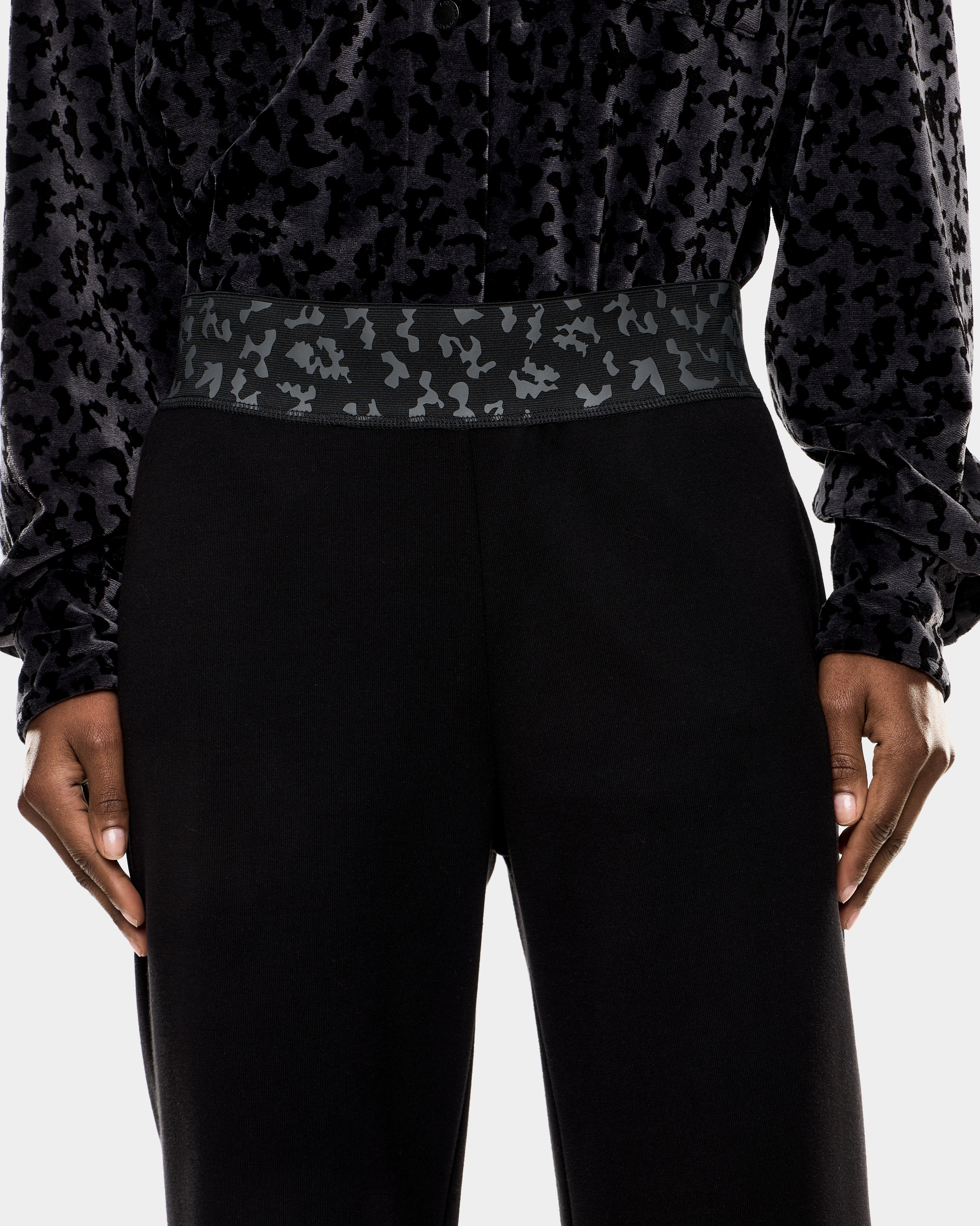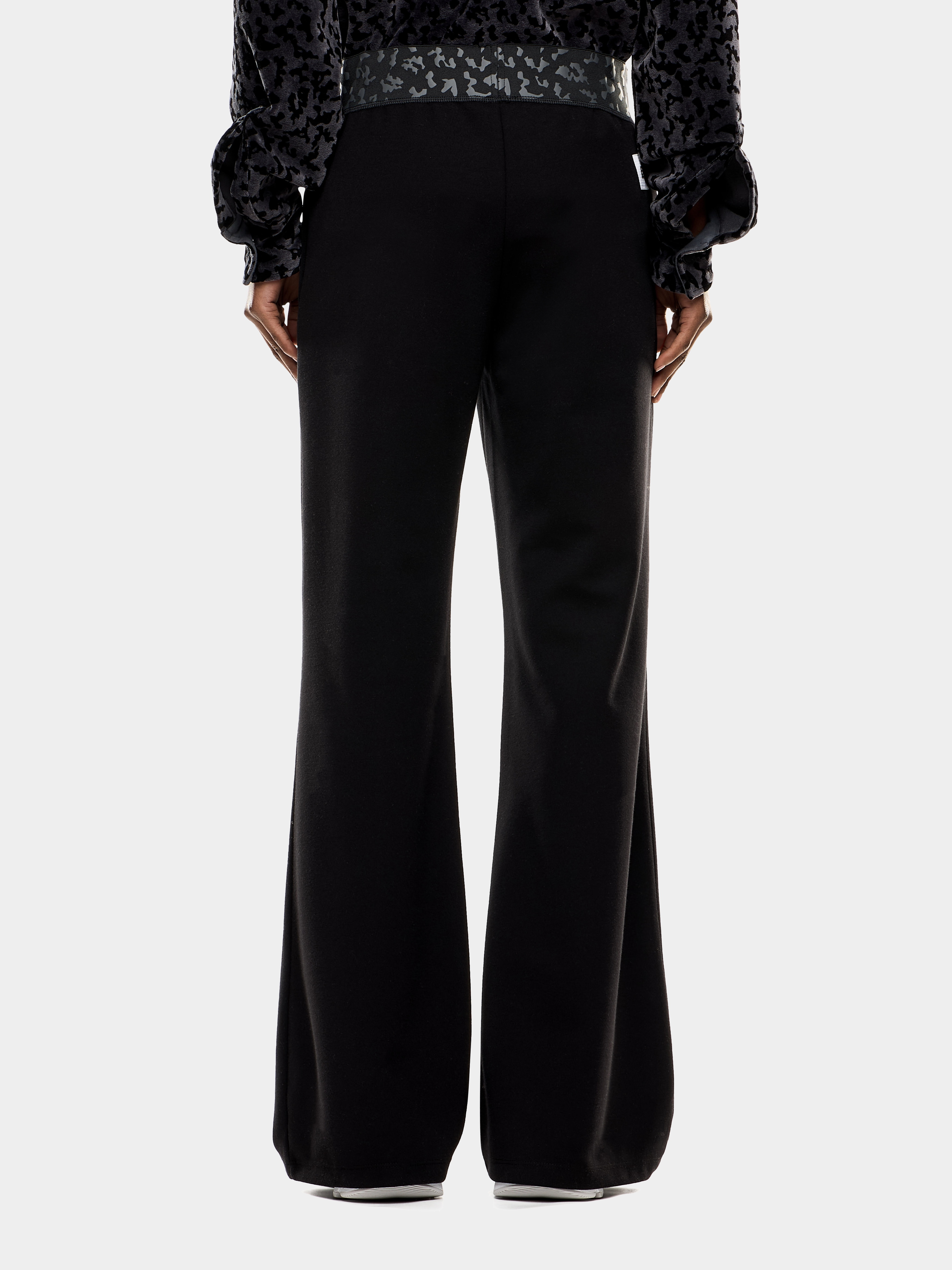 Женские расклёшенные брюки из мягкого смесового хлопка отличаются свободным комфортным кроем. Эластичный пояс с анималистичным принтом перекликается с моделями из линейки Graphic Series и подчёркивает спортивный характер образа. Модель дополнена двумя боковыми карманами.