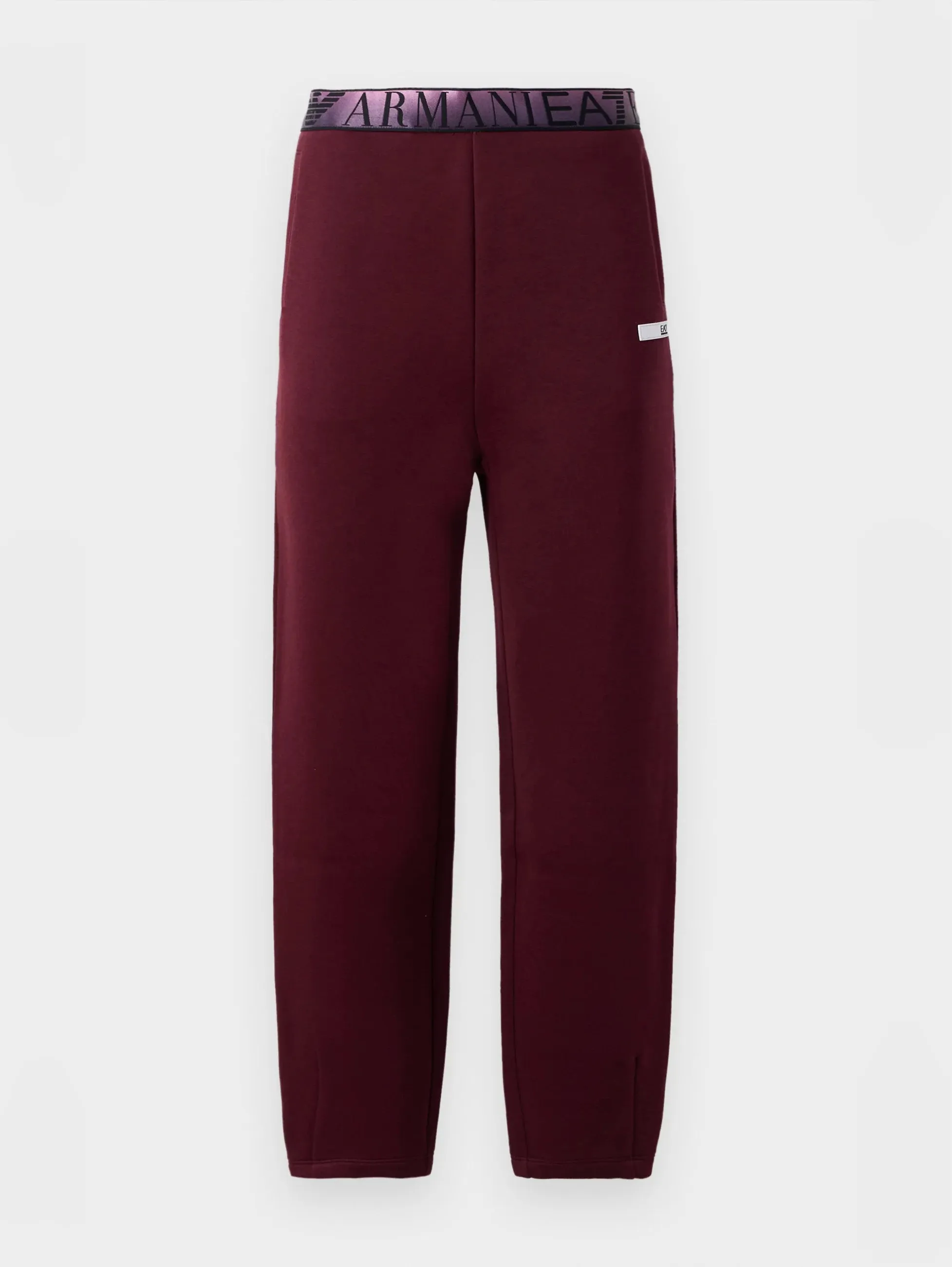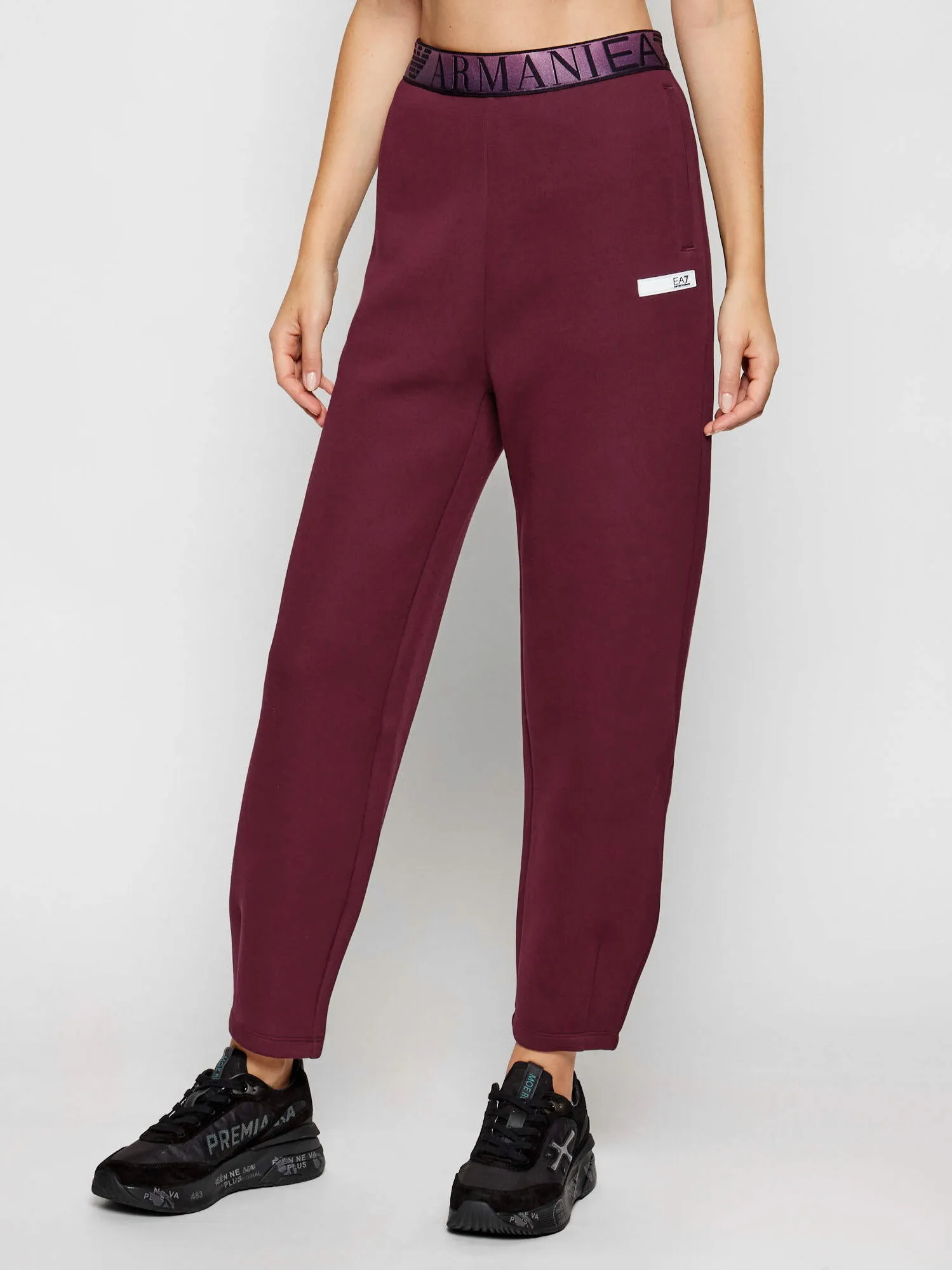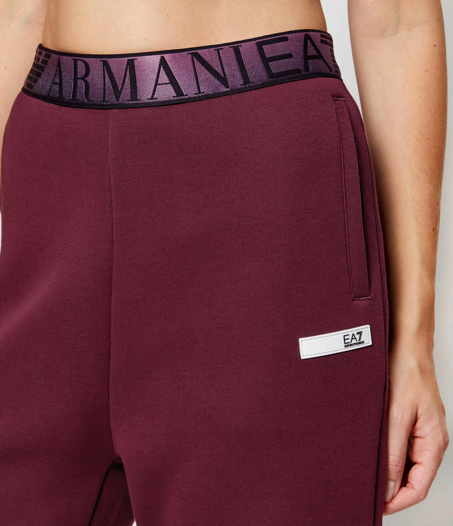 Женские спортивные брюки EA7 свободного кроя с манжетами на резинке сочетают динамику стиля и комфорт. Выполнены из инновационного материала Natural VENTUS7 — сочетания натуральных и синтетических волокон, регулирующих температуру тела и отводящих влагу. Модель с боковыми карманами и фирменным эластичным поясом.
