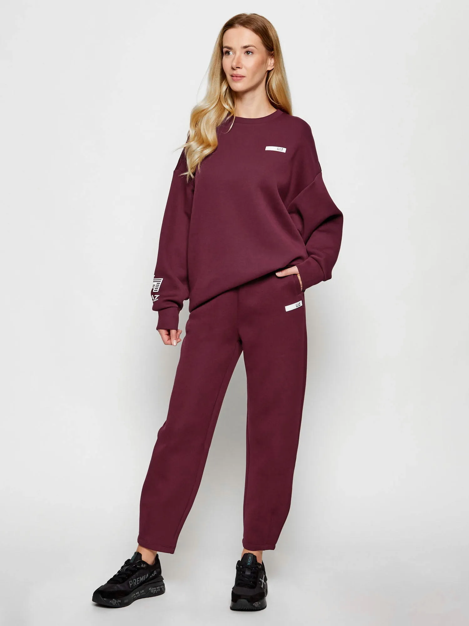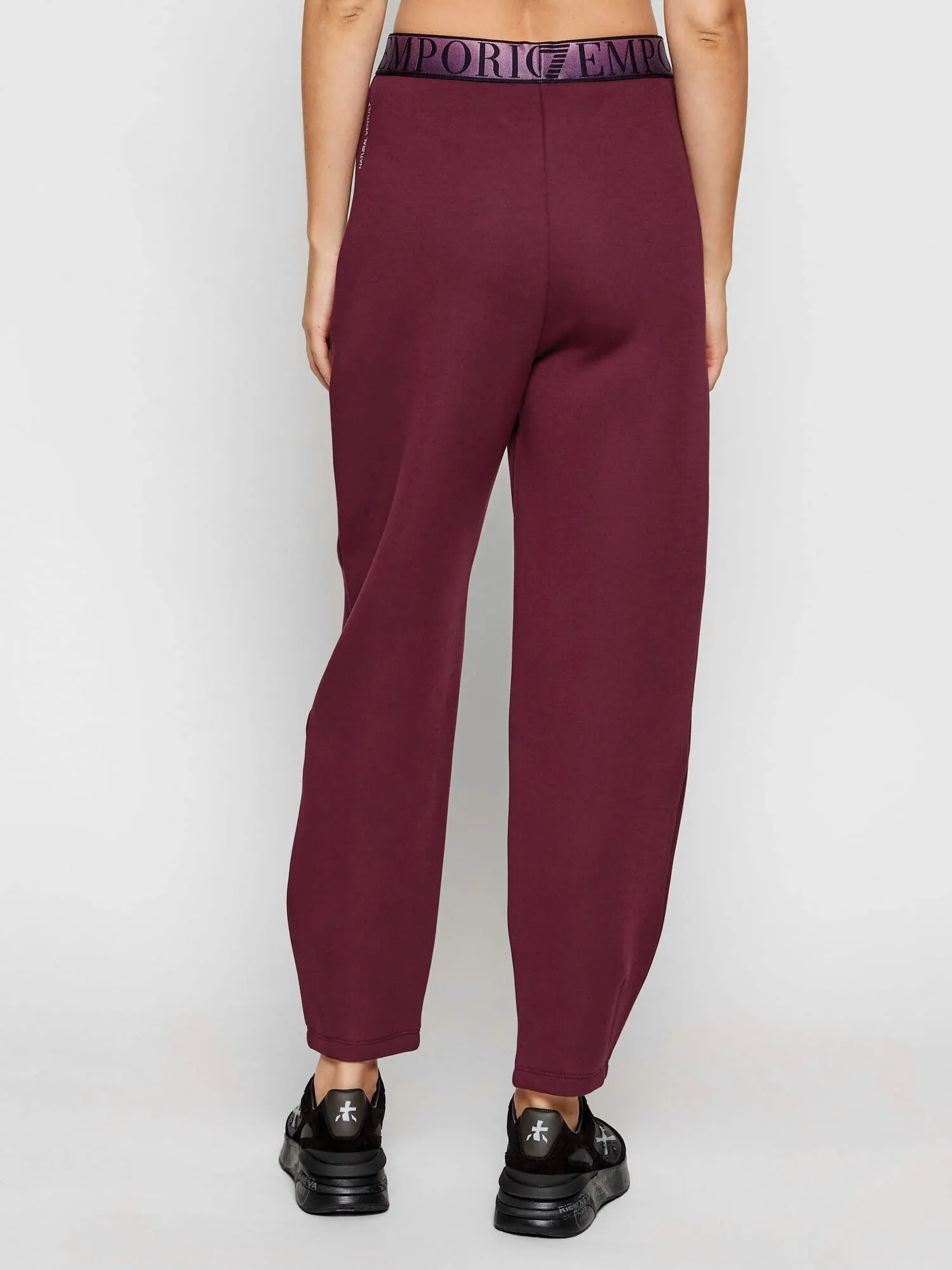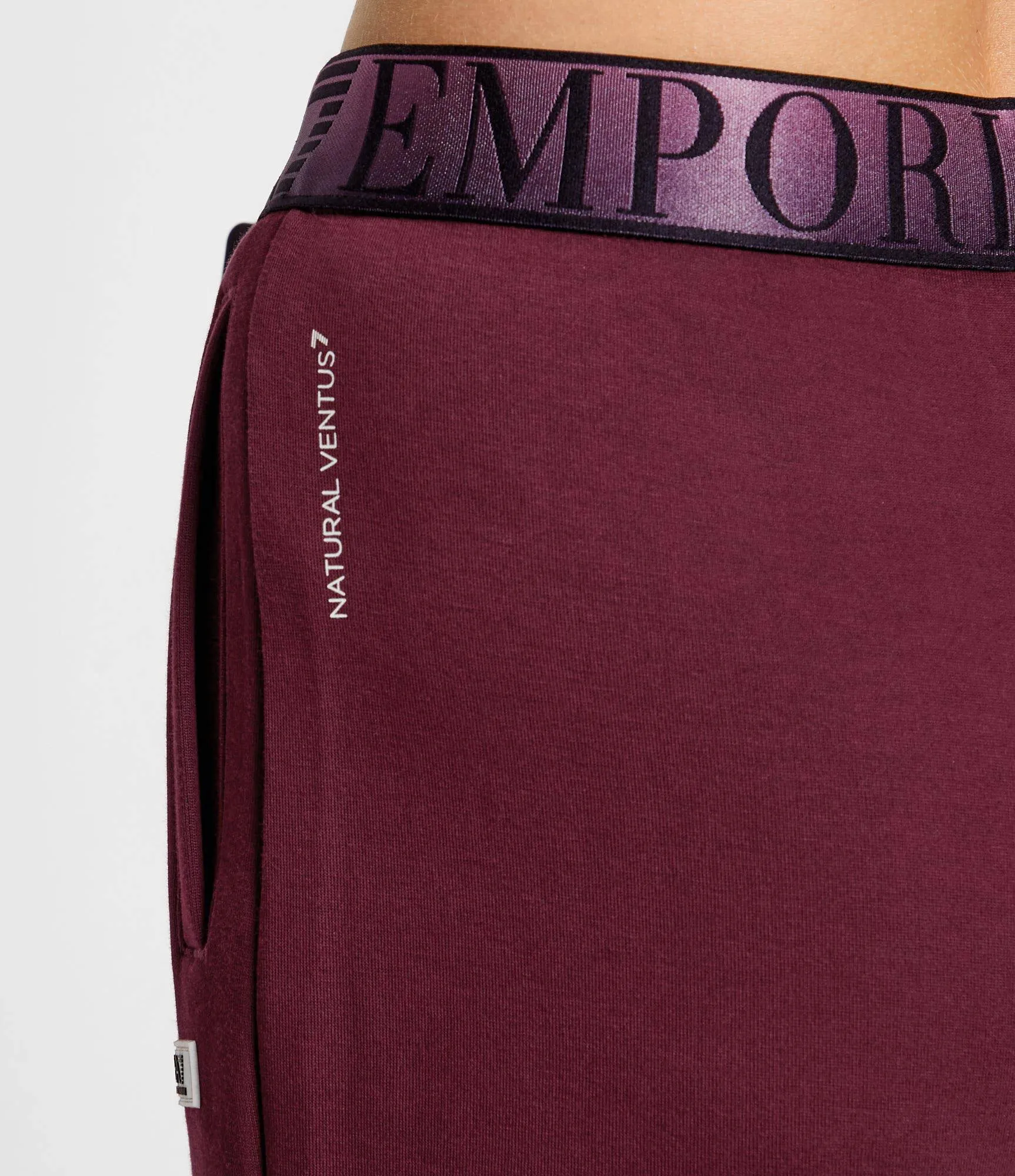 Женские спортивные брюки EA7 свободного кроя с манжетами на резинке сочетают динамику стиля и комфорт. Выполнены из инновационного материала Natural VENTUS7 — сочетания натуральных и синтетических волокон, регулирующих температуру тела и отводящих влагу. Модель с боковыми карманами и фирменным эластичным поясом.