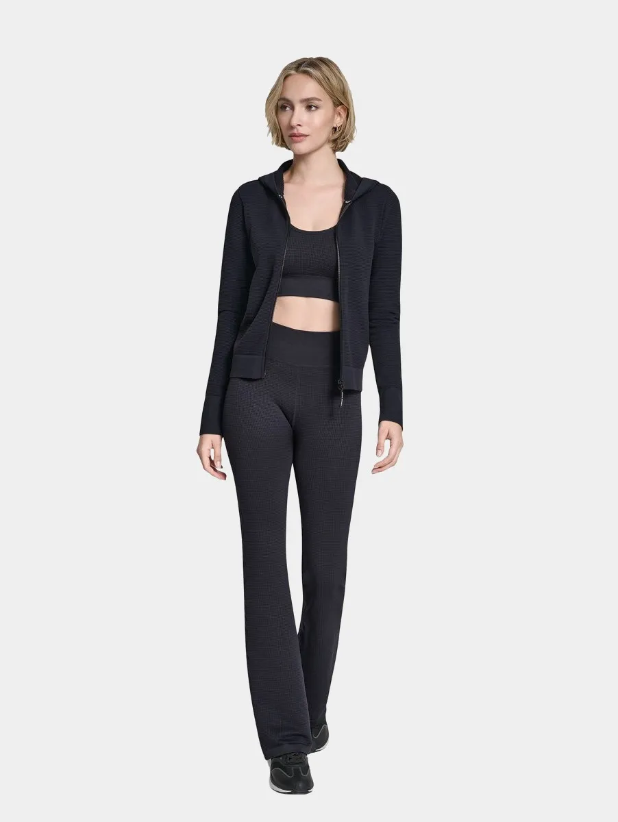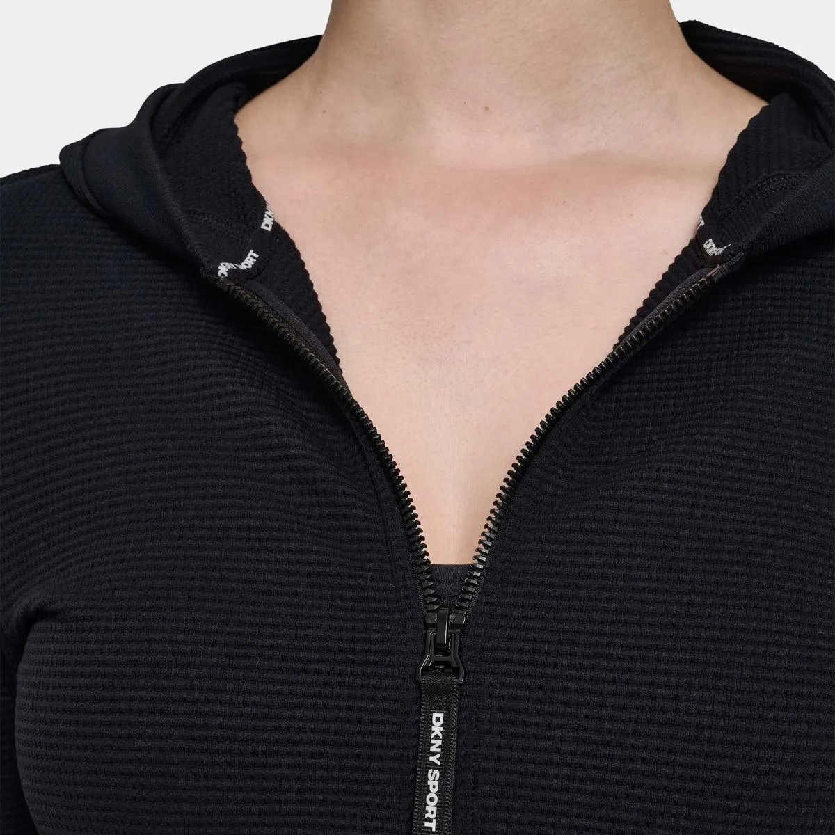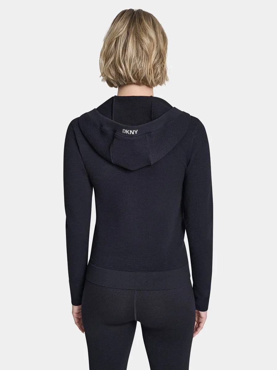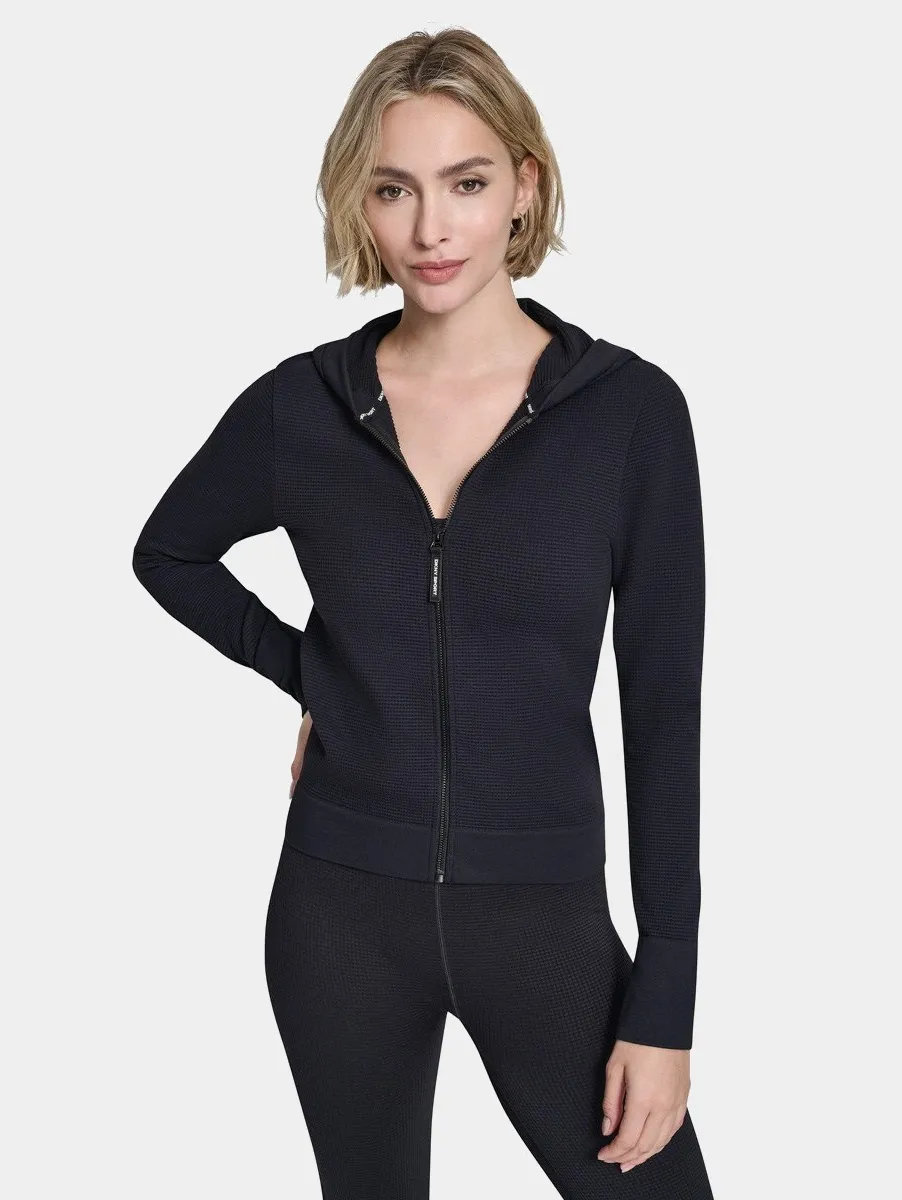 Женская облегающая толстовка с капюшоном на молнии выполнена из эластичного трикотажа и комфортно садится по фигуре. Эластичные манжеты и подол обеспечивают аккуратную посадку. Плоские швы защищают кожу от раздражения и гарантируют высокий уровень комфорта при повседневной носке.