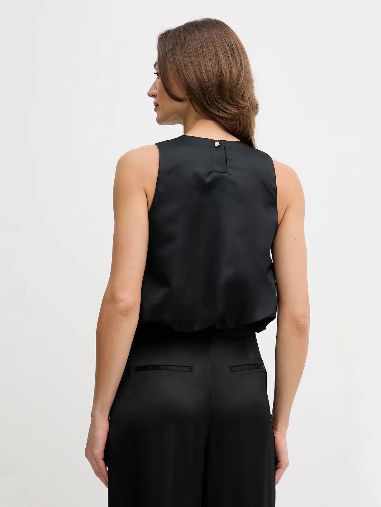Женский укороченный топ из атласа — элегантная модель для современных образов. Гладкая струящаяся ткань красиво драпируется по фигуре, а лаконичный крой без рукавов подчёркивает линию плеч. Минималистичный вышитый логотип на груди добавляет изящный брендовый акцент. Топ гармонично сочетается с джинсами, брюками и юбками.
