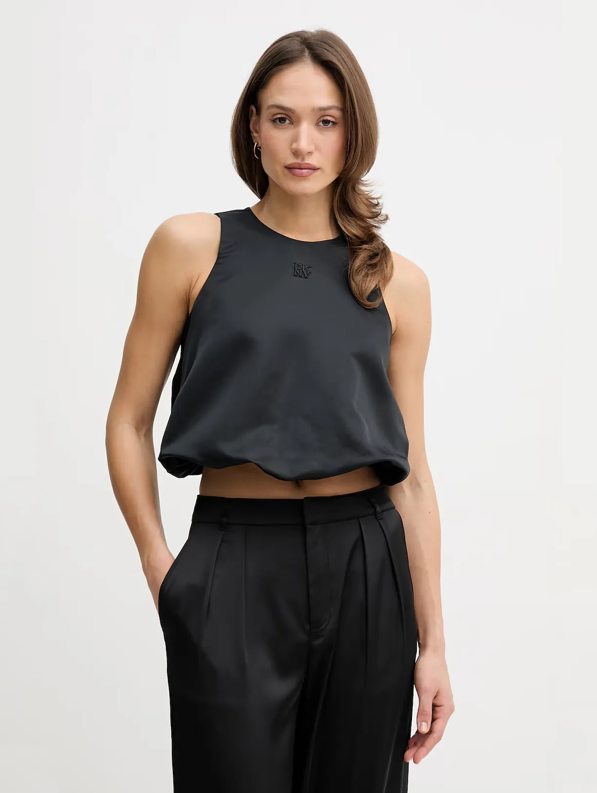 Женский укороченный топ из атласа — элегантная модель для современных образов. Гладкая струящаяся ткань красиво драпируется по фигуре, а лаконичный крой без рукавов подчёркивает линию плеч. Минималистичный вышитый логотип на груди добавляет изящный брендовый акцент. Топ гармонично сочетается с джинсами, брюками и юбками.