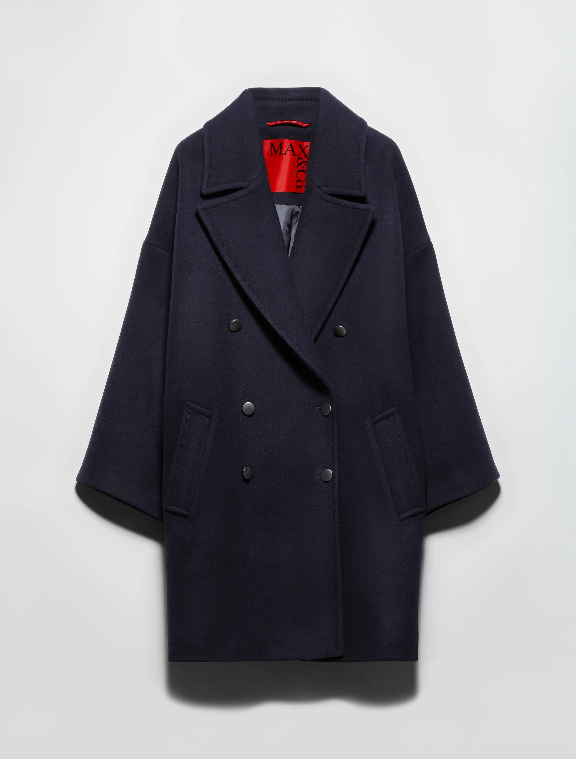Женское пальто SAVERIA от MAX&Co. — элегантный оверсайз с лёгким расклёшенным силуэтом. Модель из мягкой шерстяной смеси с заниженными плечами и эффектом «крыльев летучей мыши» выглядит свободно и утончённо. Двубортный фасон с широкими лацканами дополнен фирменными металлическими пуговицами с сатиновым блеском. Пальто на подкладке — современная интерпретация классики.