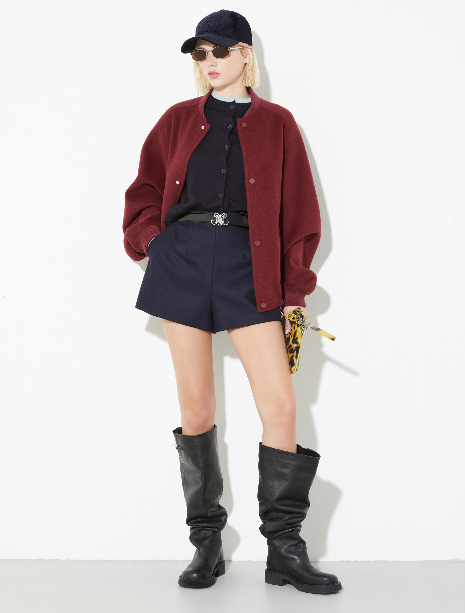 Эта обновлённая интерпретация полупальто ESTONIA в стиле классического бомбера от MAX&Co. в объемном силуэте переосмысливает уличную эстетику через призму современного стиля. Модель выполнена из натуральной шерсти двойного плетения с контрастной внутренней стороной. Трикотажные манжеты и воротник, рукава реглан спереди и крой кимоно сзади создают динамичный силуэт. Эластичная кулиска по низу, карманы на молнии, застёжки-кнопки и вышитая эмблема MAX&Co. на рукаве завершают образ.