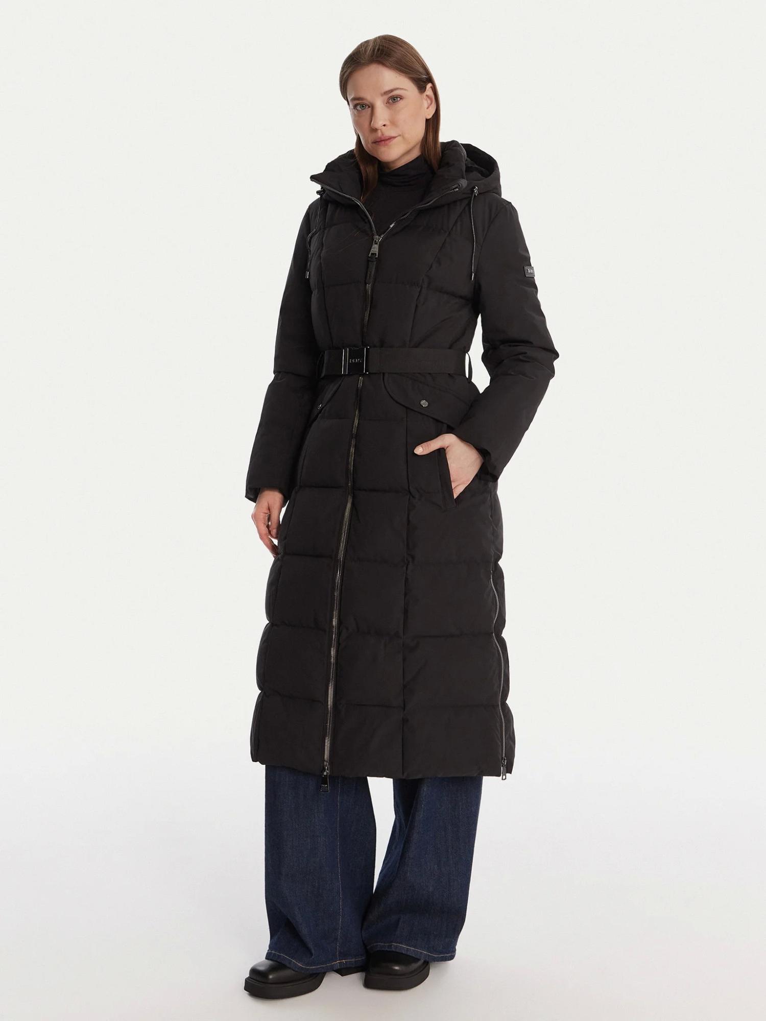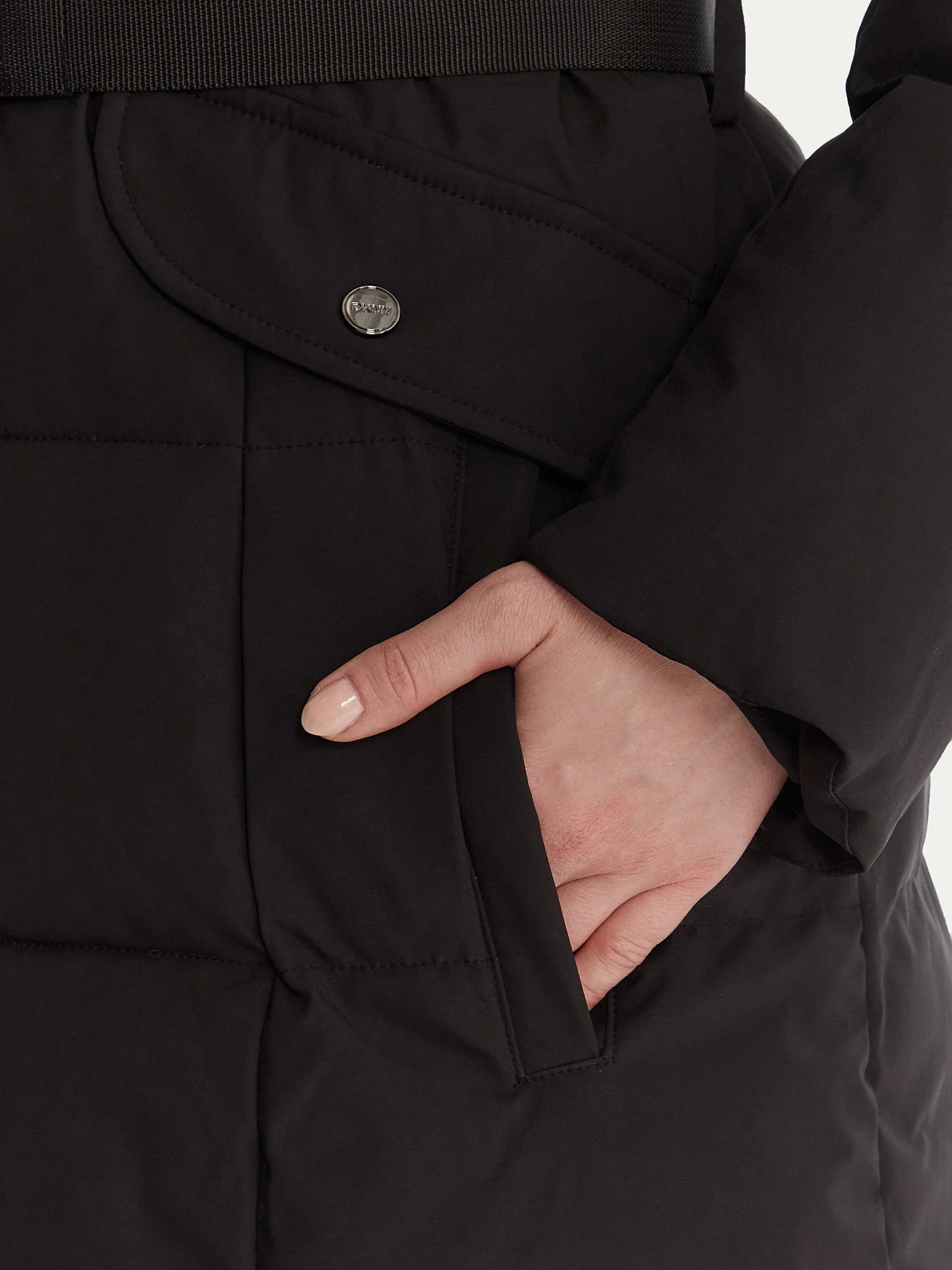 Съёмный капюшон с шнурками и приподнятый воротник защищают от ветра и дождя. Застёжка на молнию с ветрозащитным клапаном, текстильный ремень и боковые молнии обеспечивают удобную посадку.